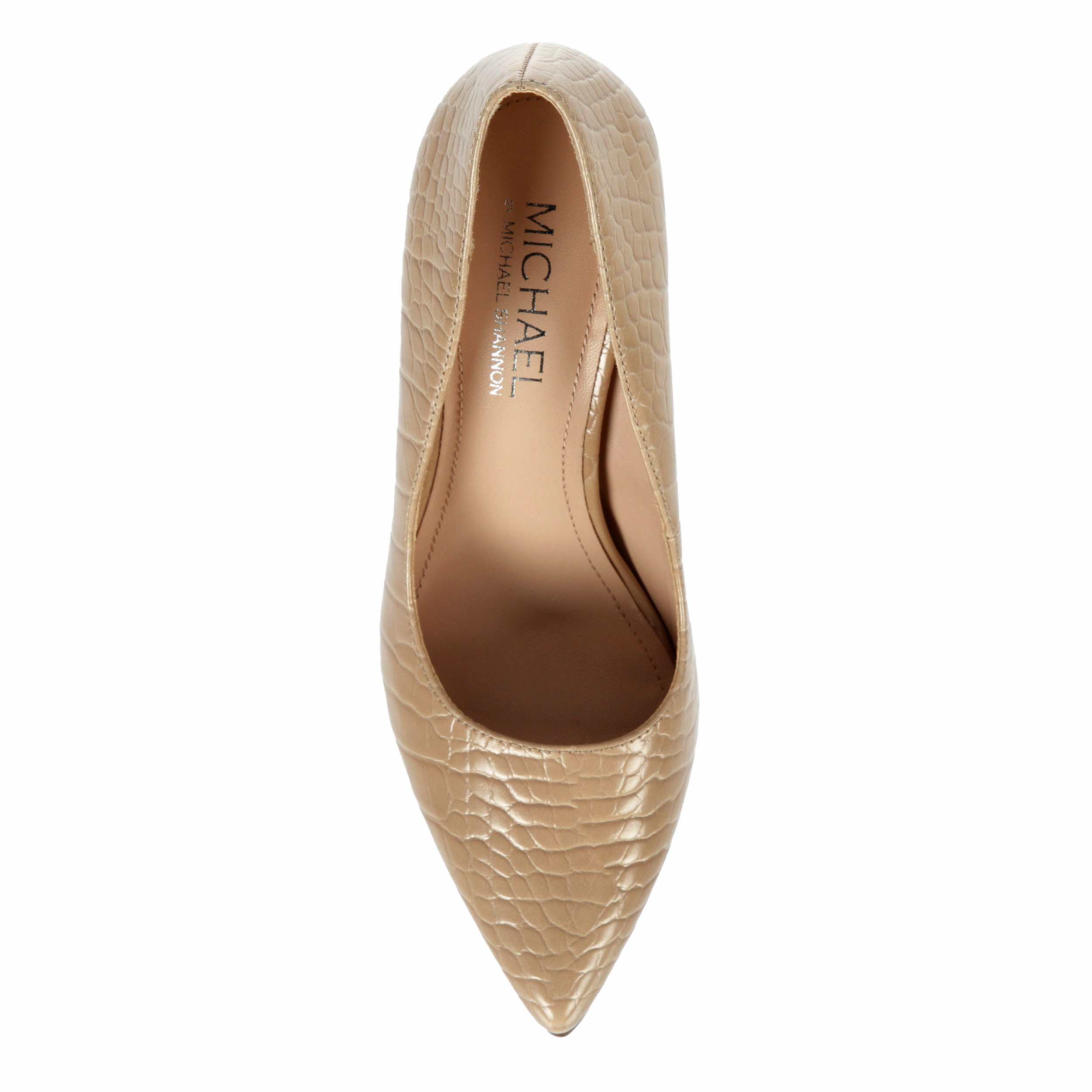 Style up your ensemble with this Ryleigh women's pump from Michael by Michael Shannon. The croc print faux leather upper has a pointed toe and 4" heel to give this shoe an edgy, chic finish. You'll turn heads in this gorgeous pump.