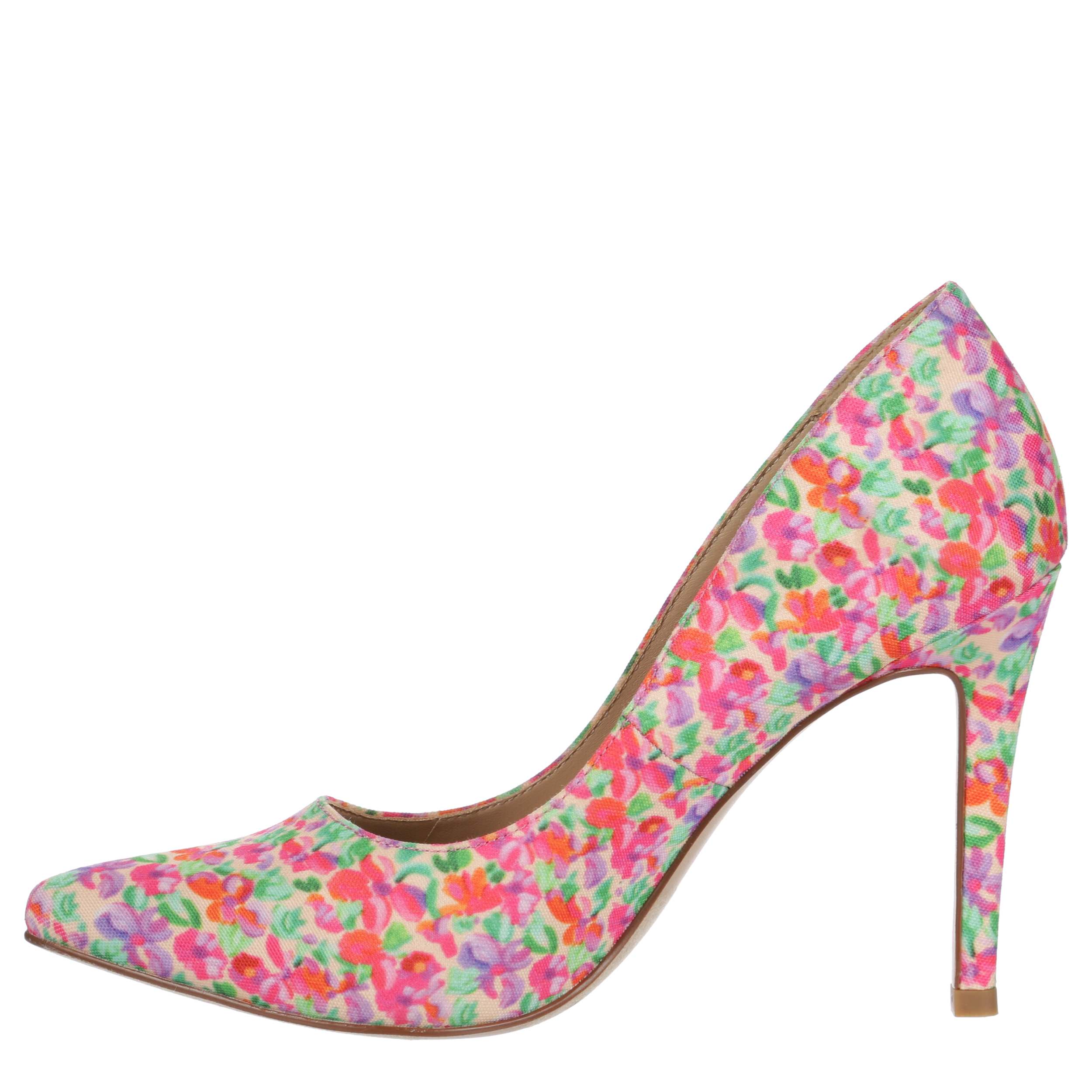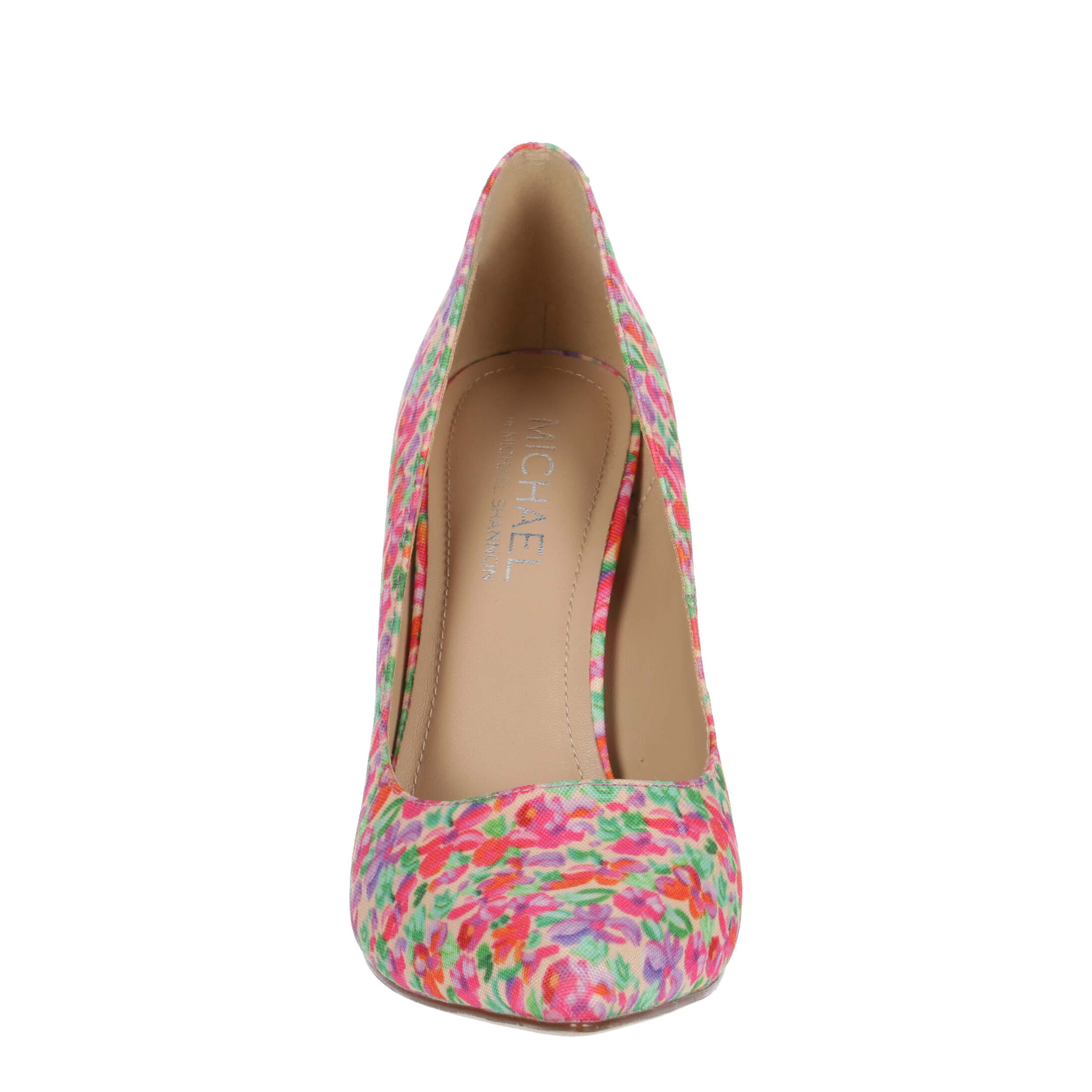 Style up your ensemble with this Ryleigh women's pump from Michael by Michael Shannon. The floral printed upper has a pointed toe and 4" heel to give this shoe a sweet, chic finish. You'll turn heads in this gorgeous pump.
