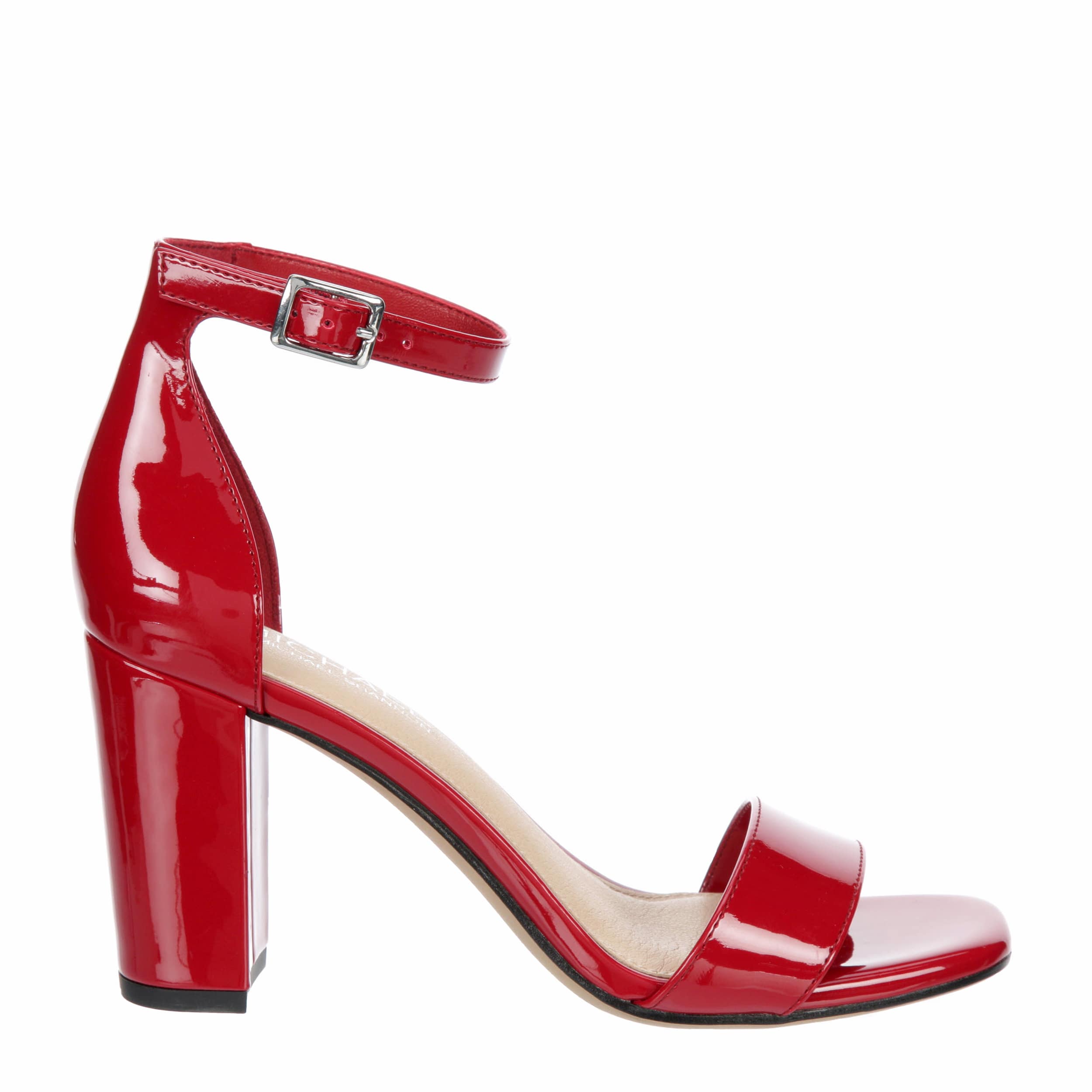 Dress up your look in the classically stylish Stella women's sandal from Michael By Michael Shannon. With a patent leather upper featuring a square toe for an elegant finish, this ankle buckle strap sandal looks great with jeans, dresses or skirts for maximum versatility. The lightly padded footbed soothes your foot, while the 3¼" block heel stabilizes your walk for confident strides.