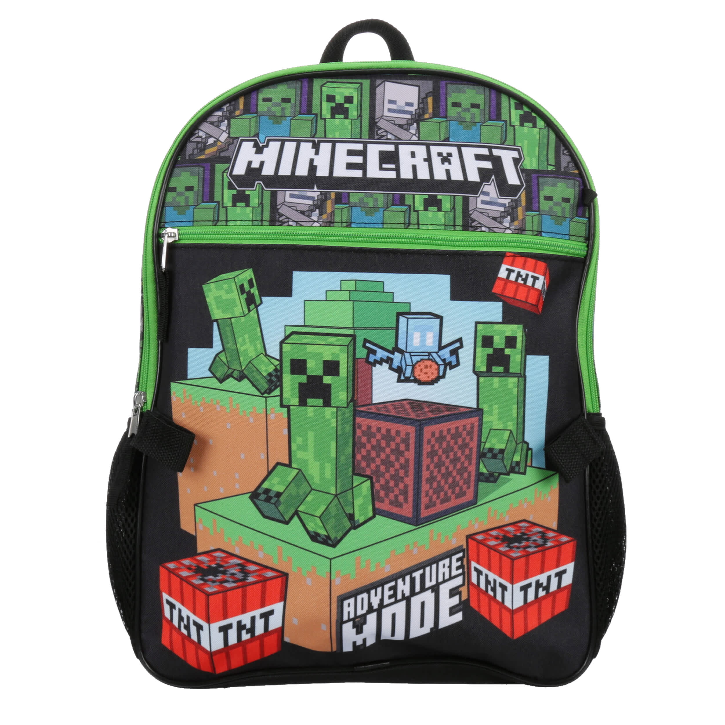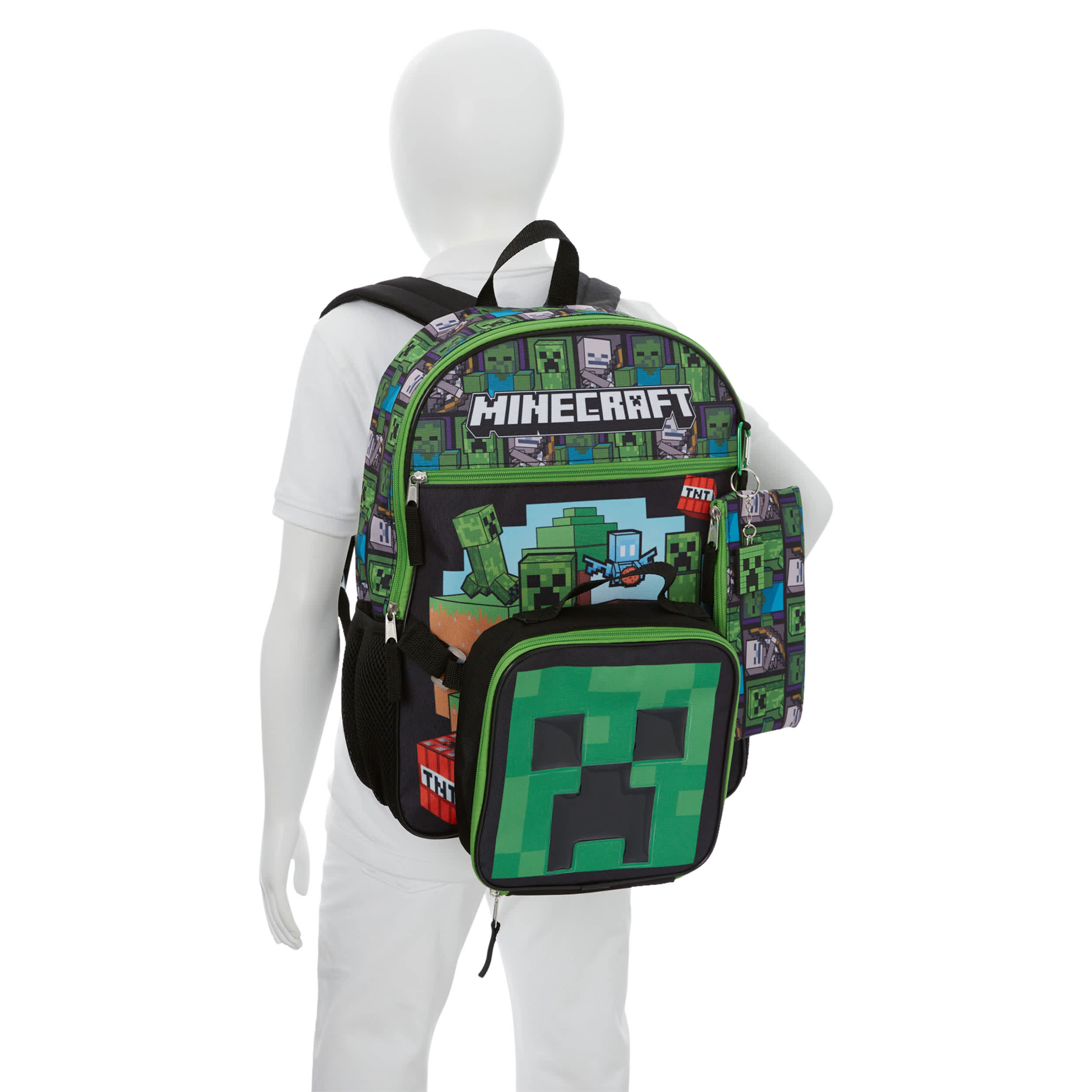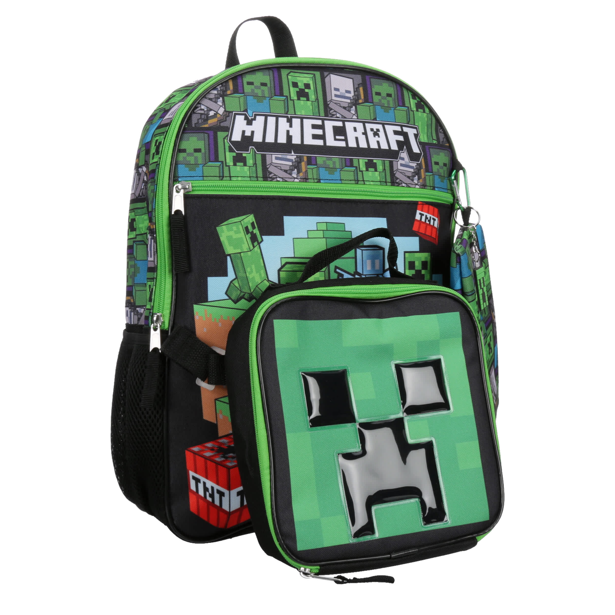 Let him show his love for the best-selling video game with the Minecraft 5 Piece boys' backpack set. The backpack has padded shoulder straps for extra comfort and a mesh side pocket with a hook-and-loop closure to attach the lunch bag. He'll be in full “Adventure Mode" while keeping everything close at hand.