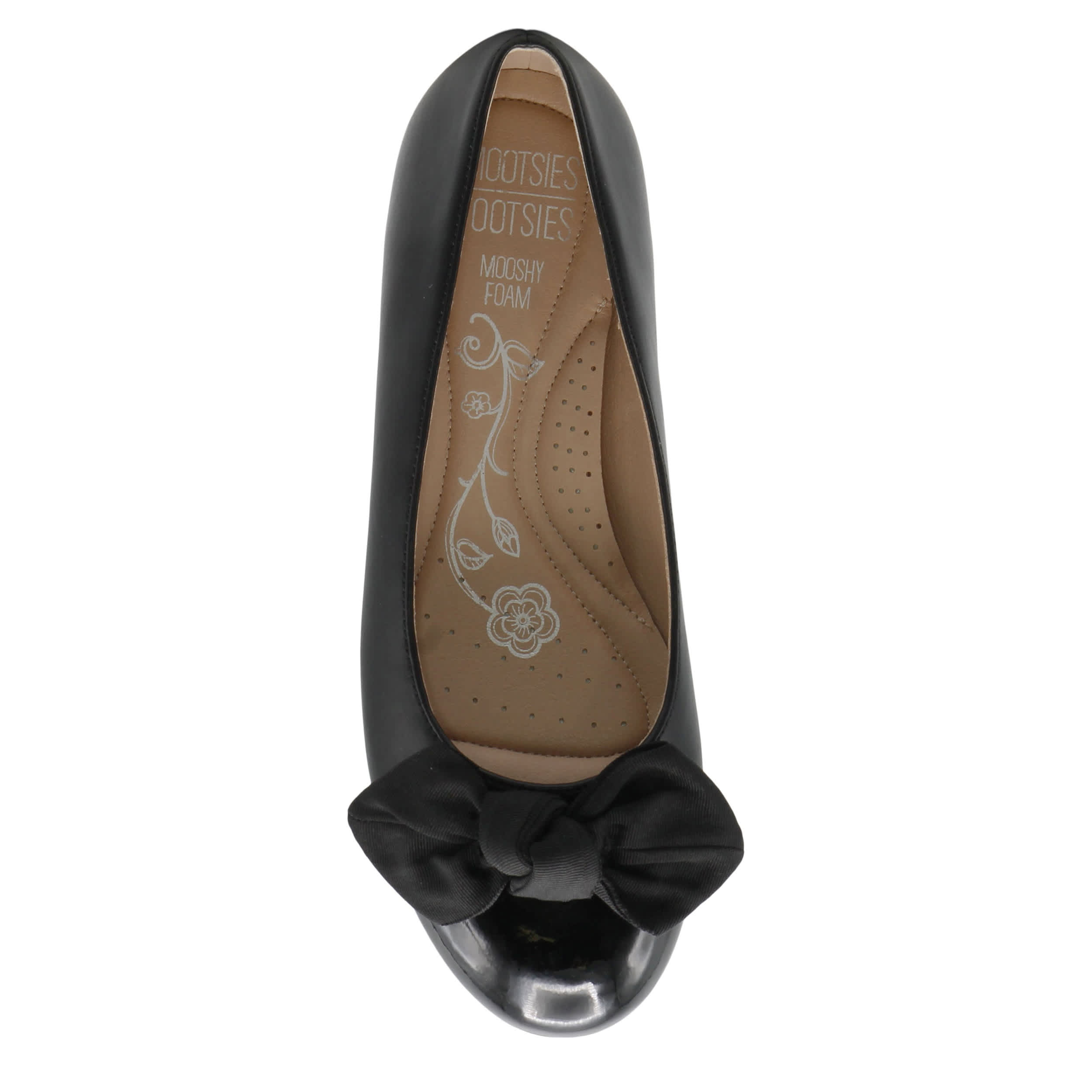 Add some gloss, but keep the comfort with the Conny flat from Mootsie Tootsie. Featuring a faux leather upper with a patent leather cap toe for extra style, this ballet flat is cute with a bow on top. The cushy footbed makes every step easier along with the durable outsole.