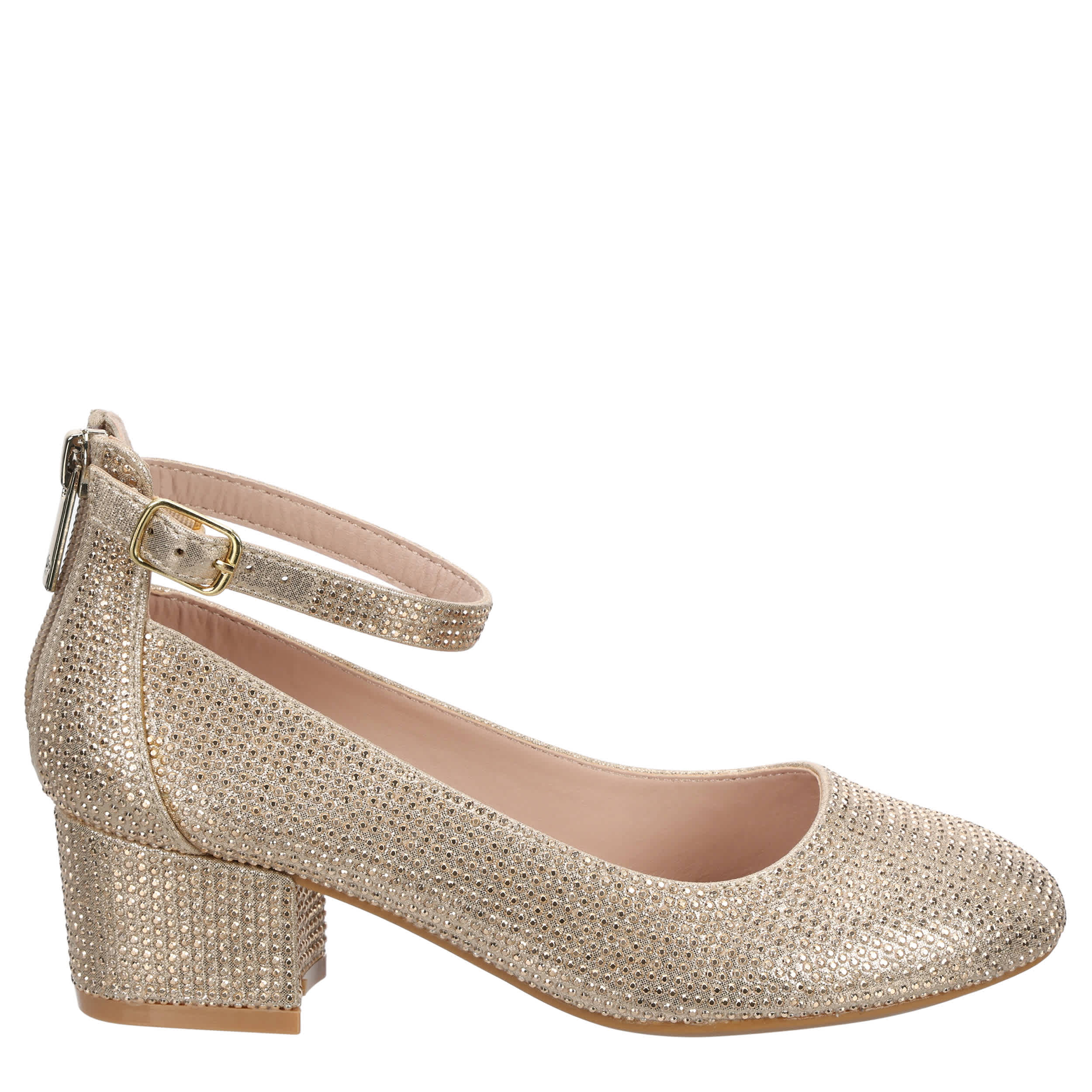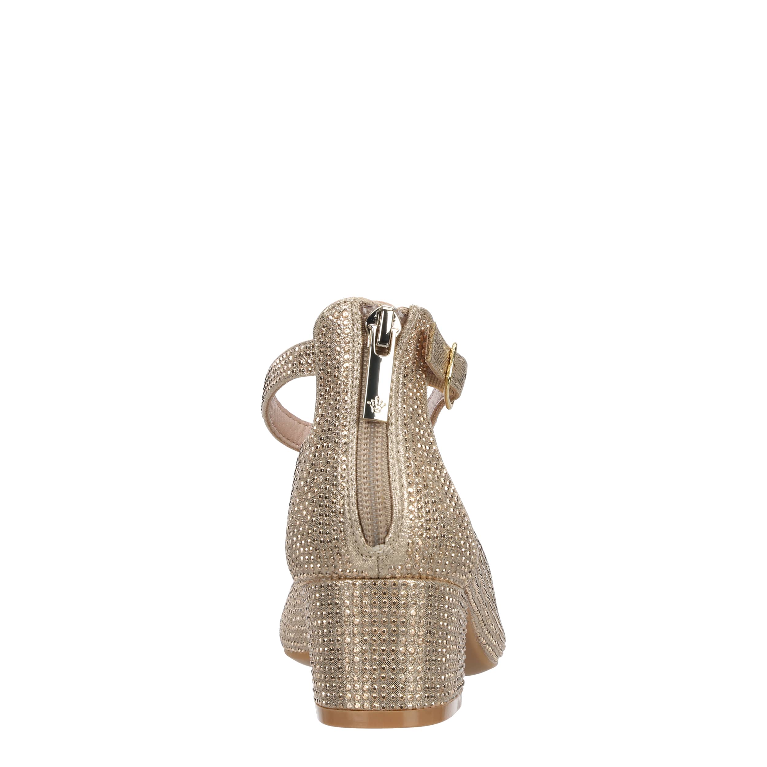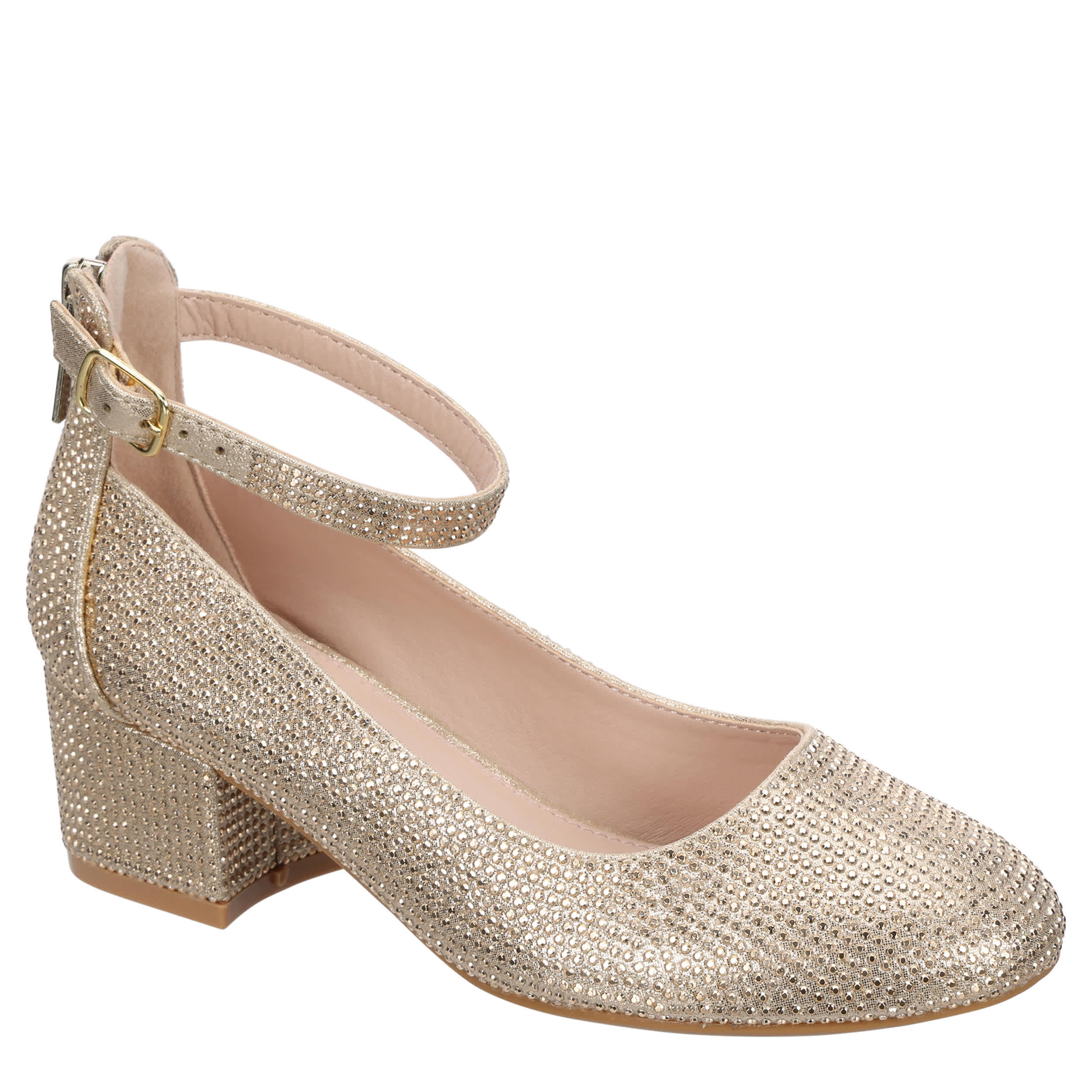 Dazzling display for cute style in the Lennie2 girls' dress shoe from N by Nina. Featuring a synthetic upper covered in rhinestones with an ankle buckle strap for security, this easy-on shoe is made for special events. The insole comforts her foot, while a non-slip sole makes that sturdy heel safer.