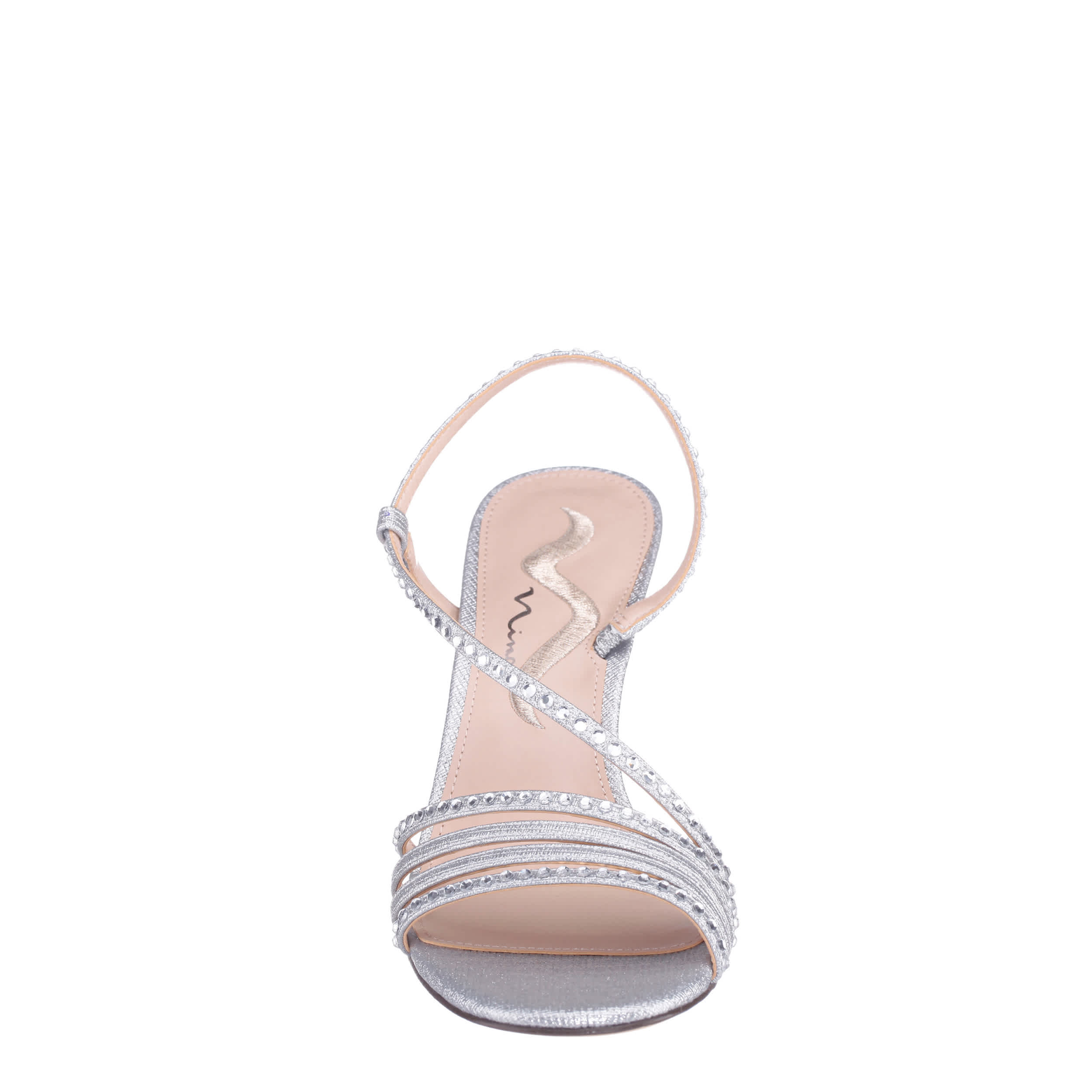 Stun at your next event in the Alexina women's sandal from N by Nina. Featuring asymmetrical, rhinestone-accented straps with a soft square toe, this slingback makes a statement. The insole soothes your foot while the mid-heel adds stable lift.