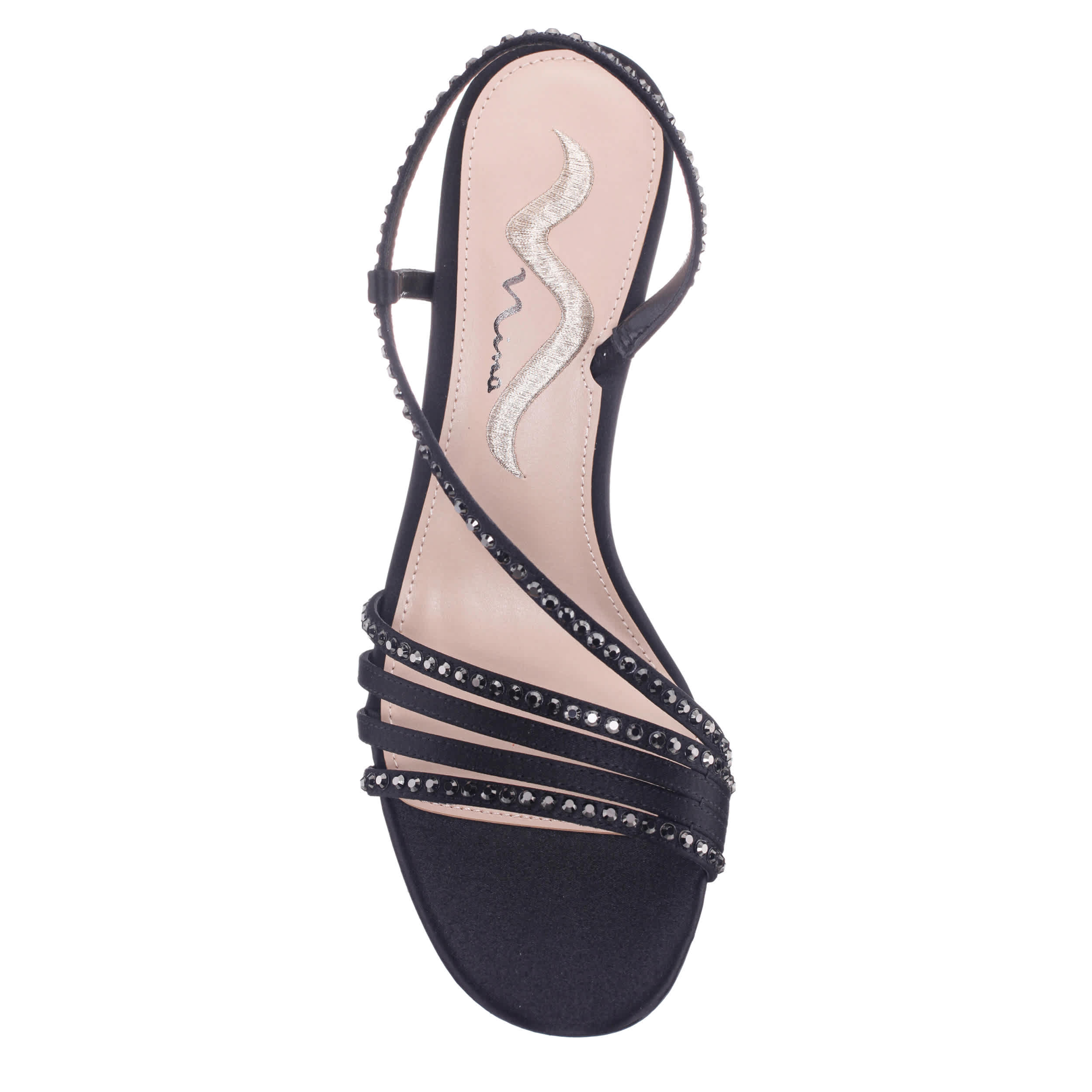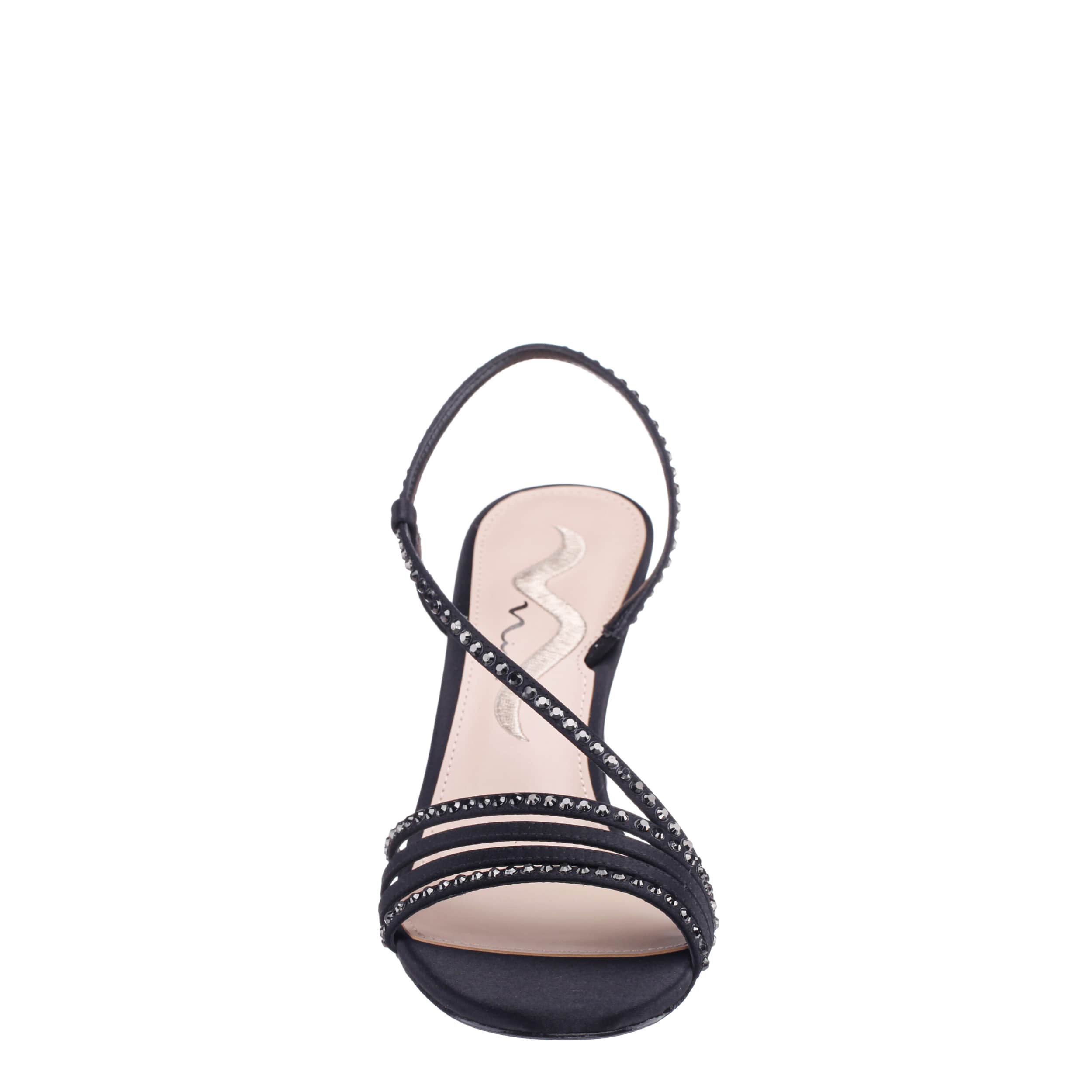 Stun at your next event in the Alexina women's sandal from N by Nina. Featuring asymmetrical, rhinestone-accented straps with a soft square toe, this slingback makes a statement. The insole soothes your foot while the mid-heel adds stable lift.