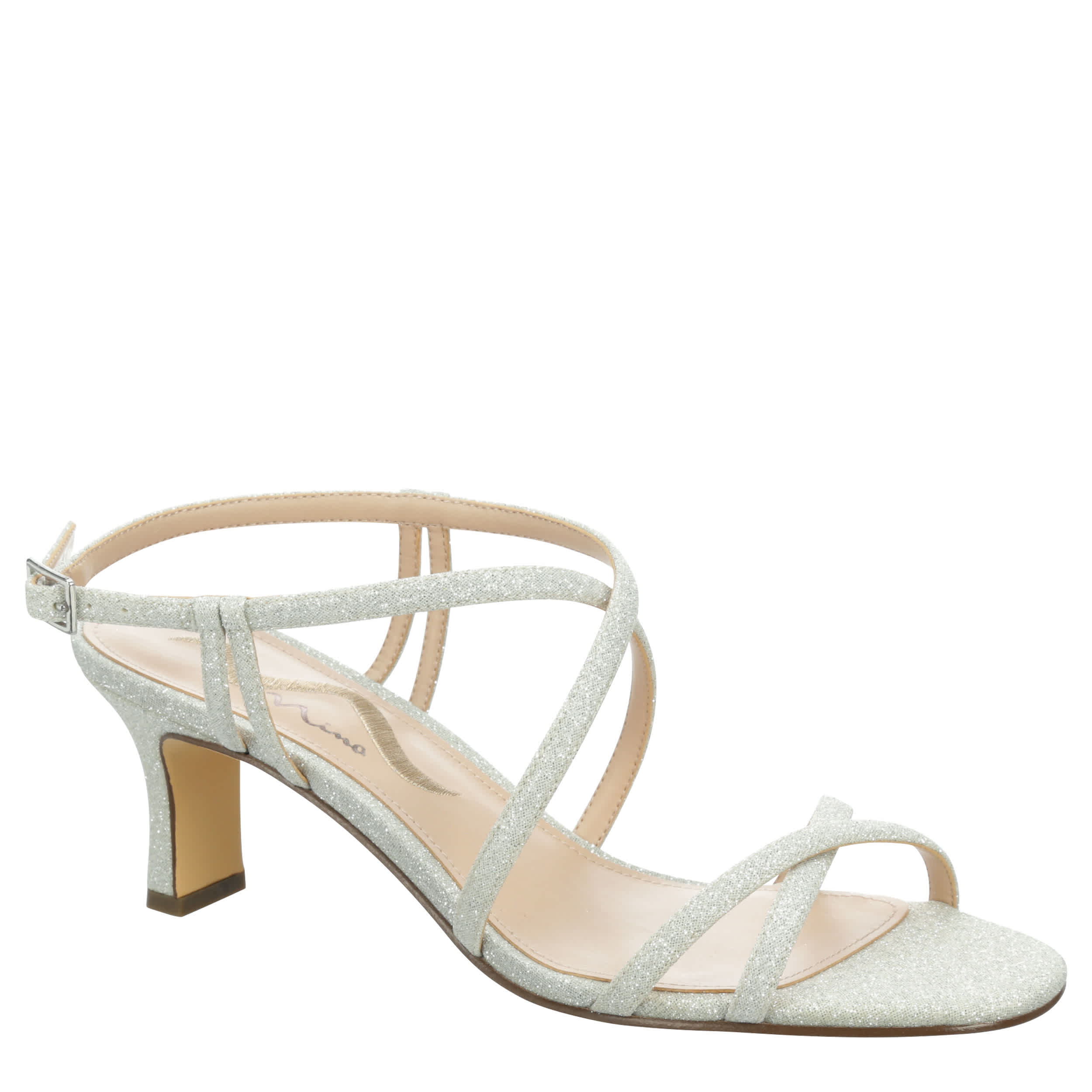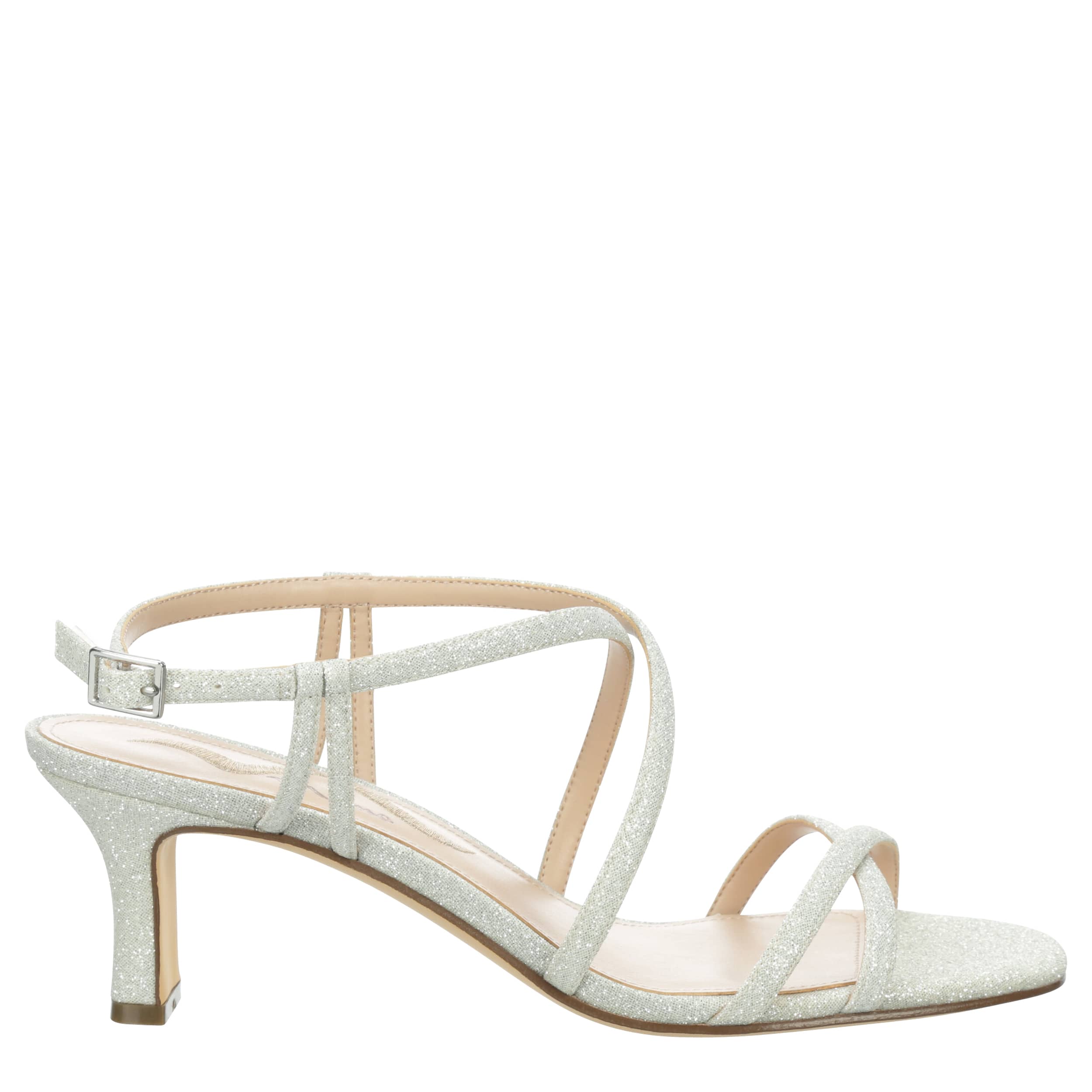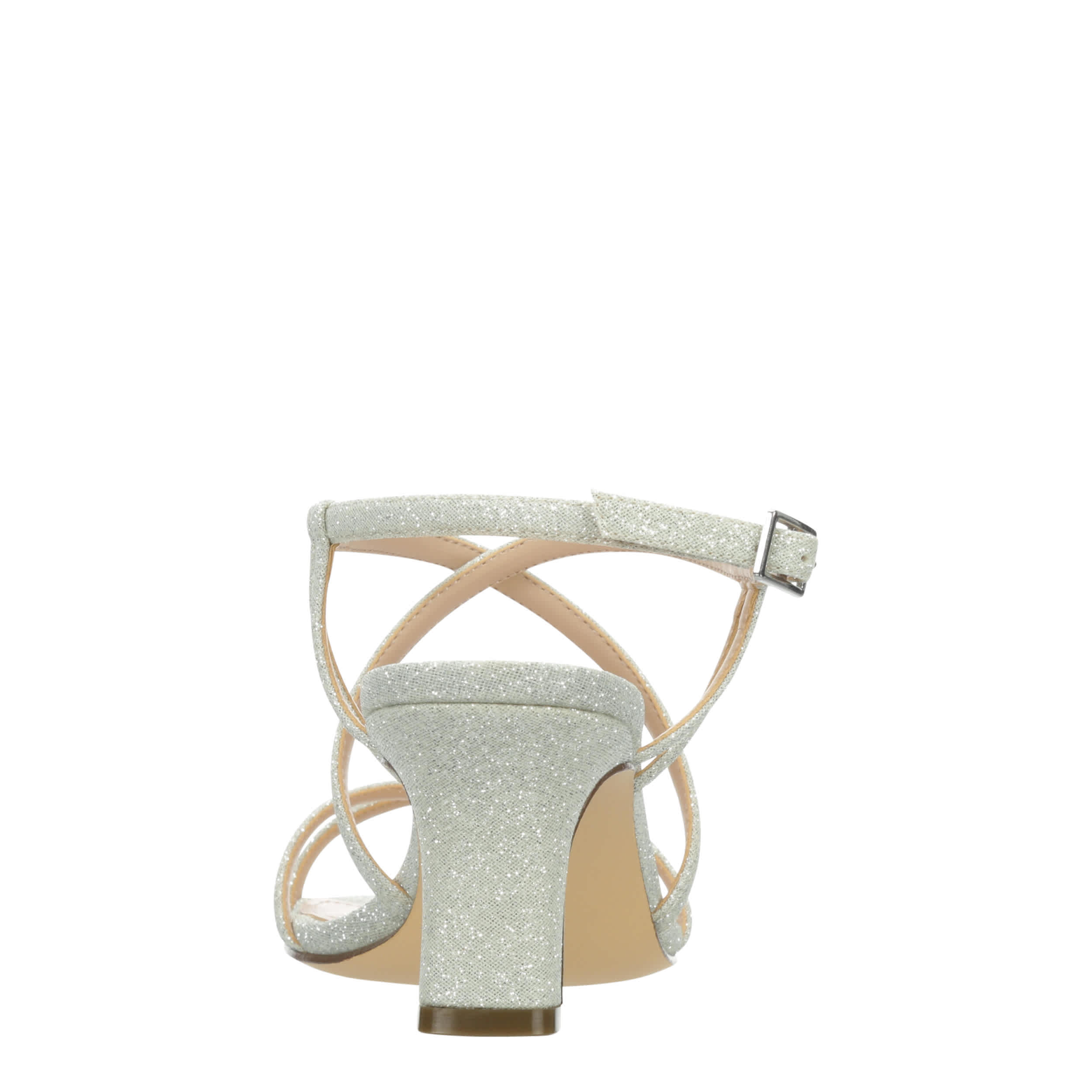 Give your dressy outfits a sparkly touch with the Berkely sandal from N by Nina. With a glittery sequin upper, this shoe has an adjustable buckle strap to ensure a secure fit. The padded footbed soothes your foot, while the covered heel gives a nice lift.