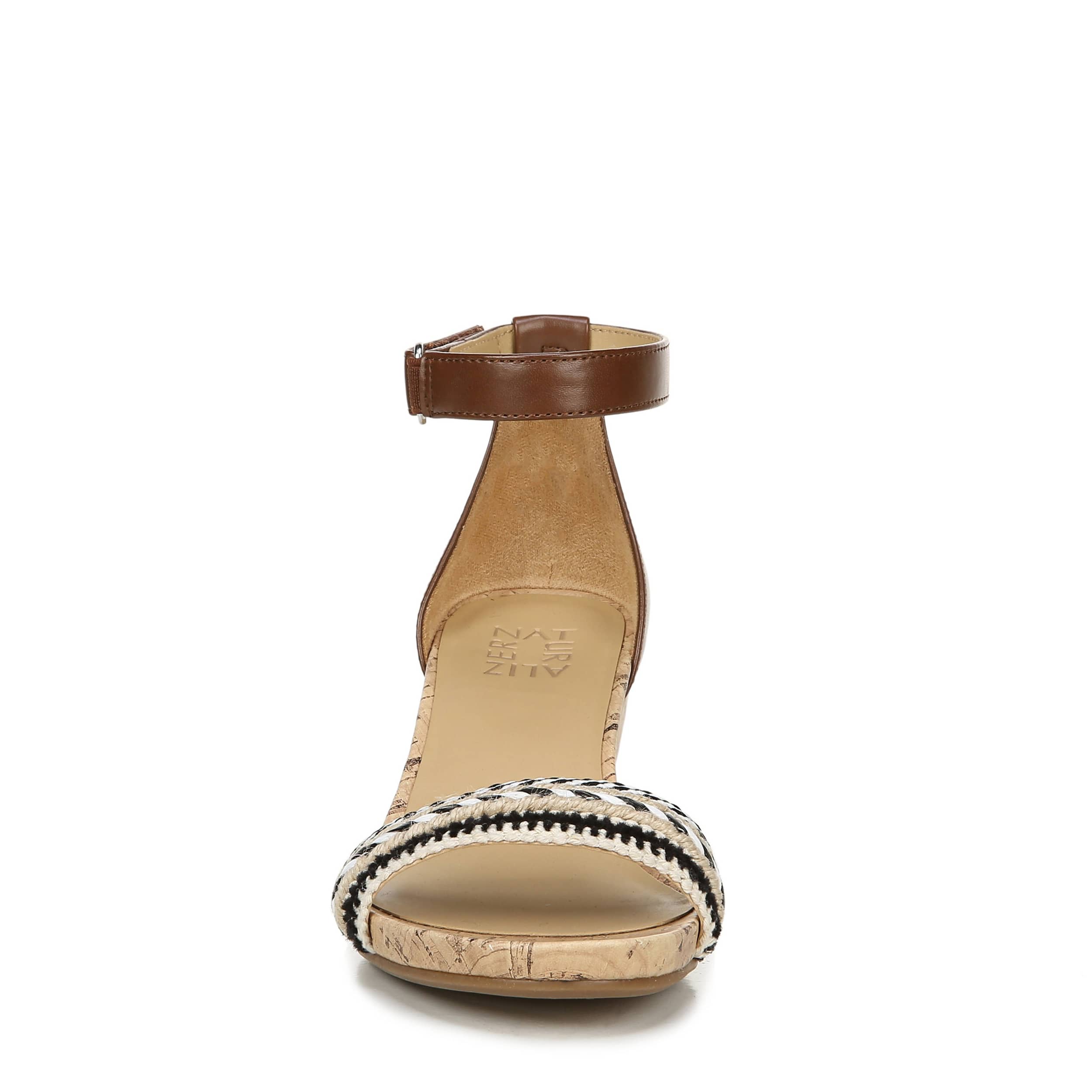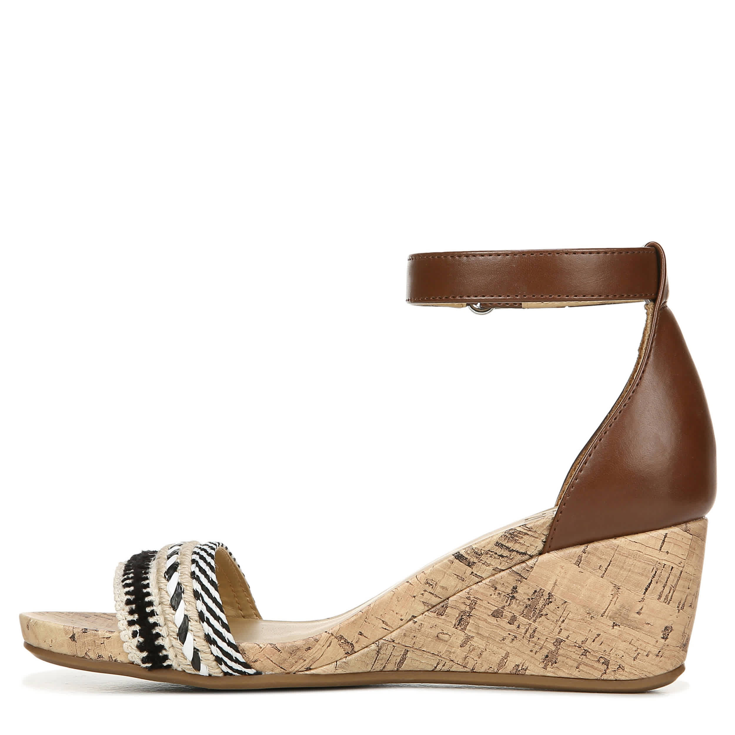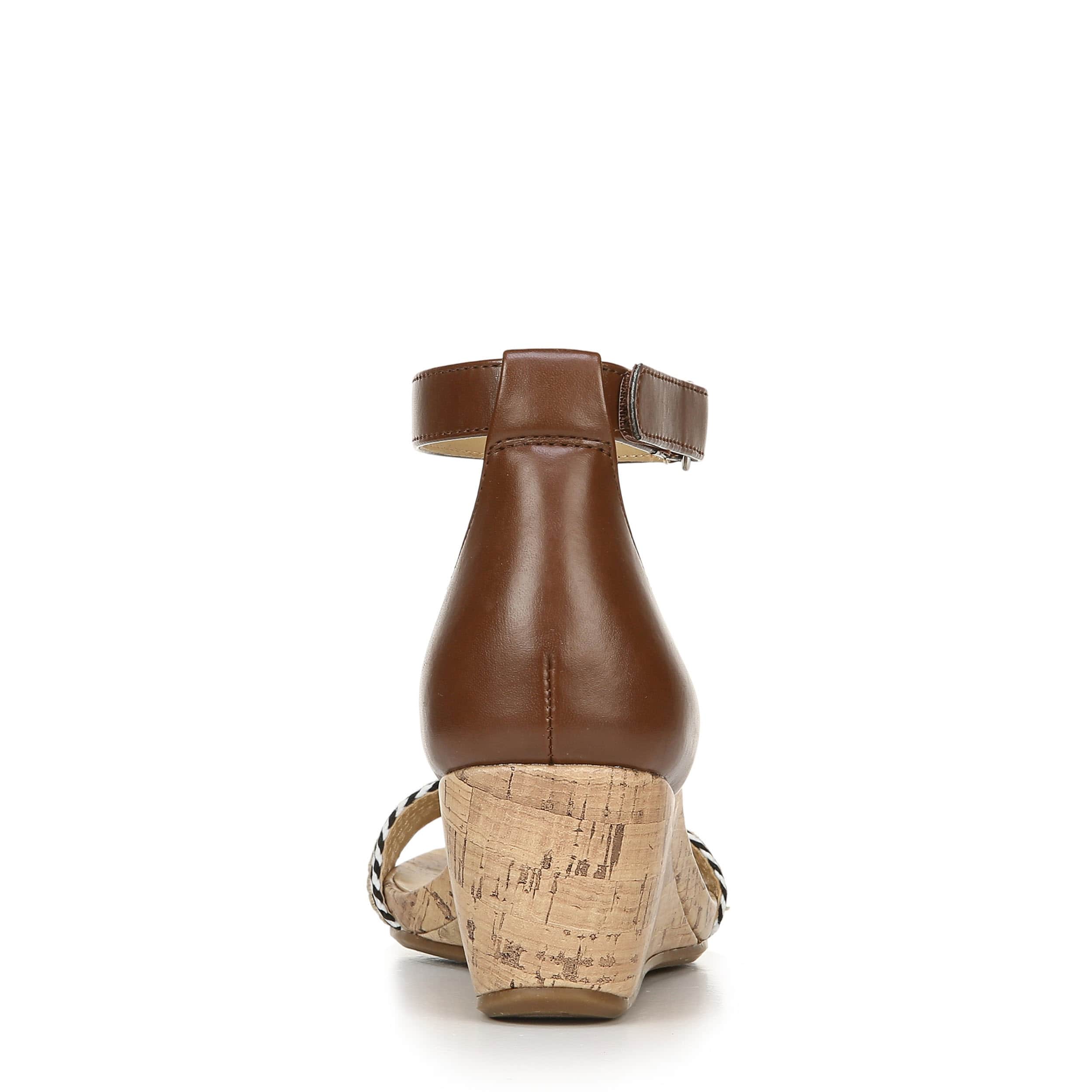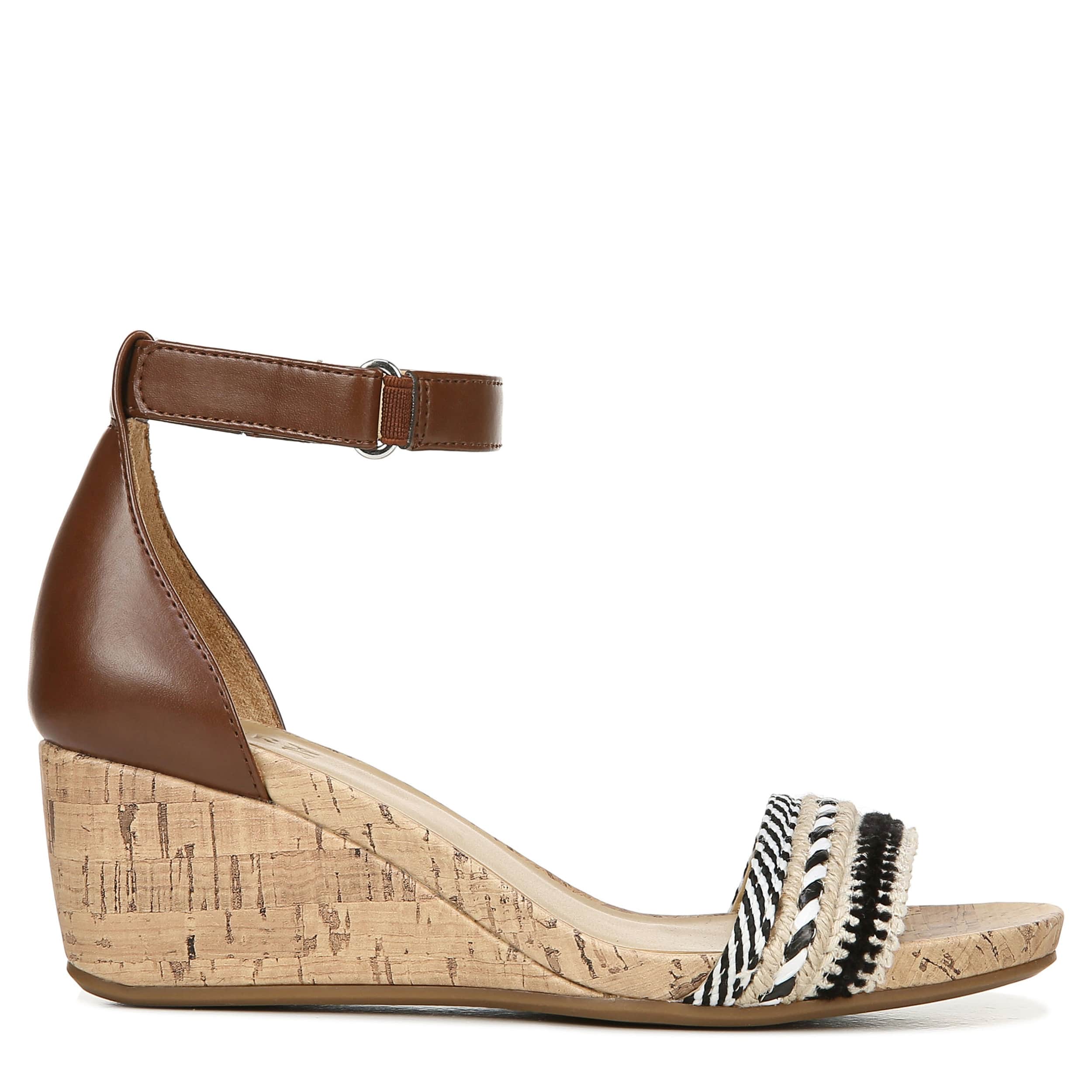 This Areda women's wedge by Naturalizer adds a touch of chic with this modern style wedge. The faux leather upper has an ankle strap that takes this wedge into high fashion status, while the cushioned insole will keep your foot comfortable with each step.