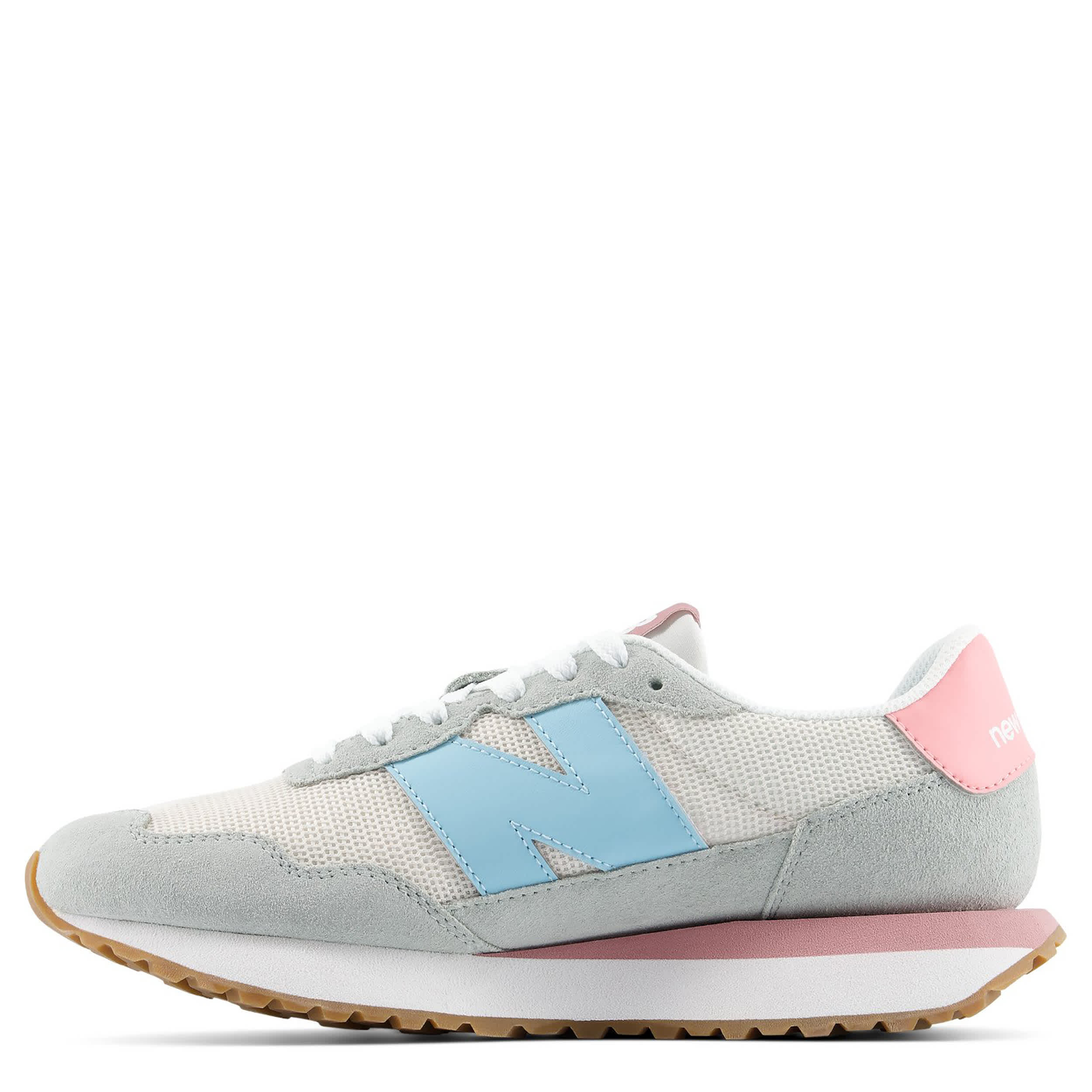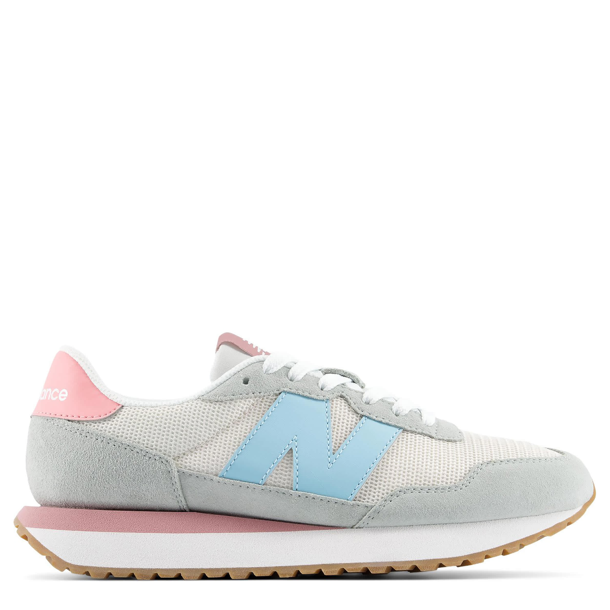 Reinterpreting the running heritage of the '70s, the237 women's sneaker, inspired by the New Balance 327,combines simple style with modern performance. With a suede & nylon upper featuring gator-inspired foxing and an oversized N logofor vintage appeal, this lace-up shoe also has an exposed foam tongue for extra comfort. The EVA midsole cushions every step, while the herringbone outsole and mudguard protect stability.