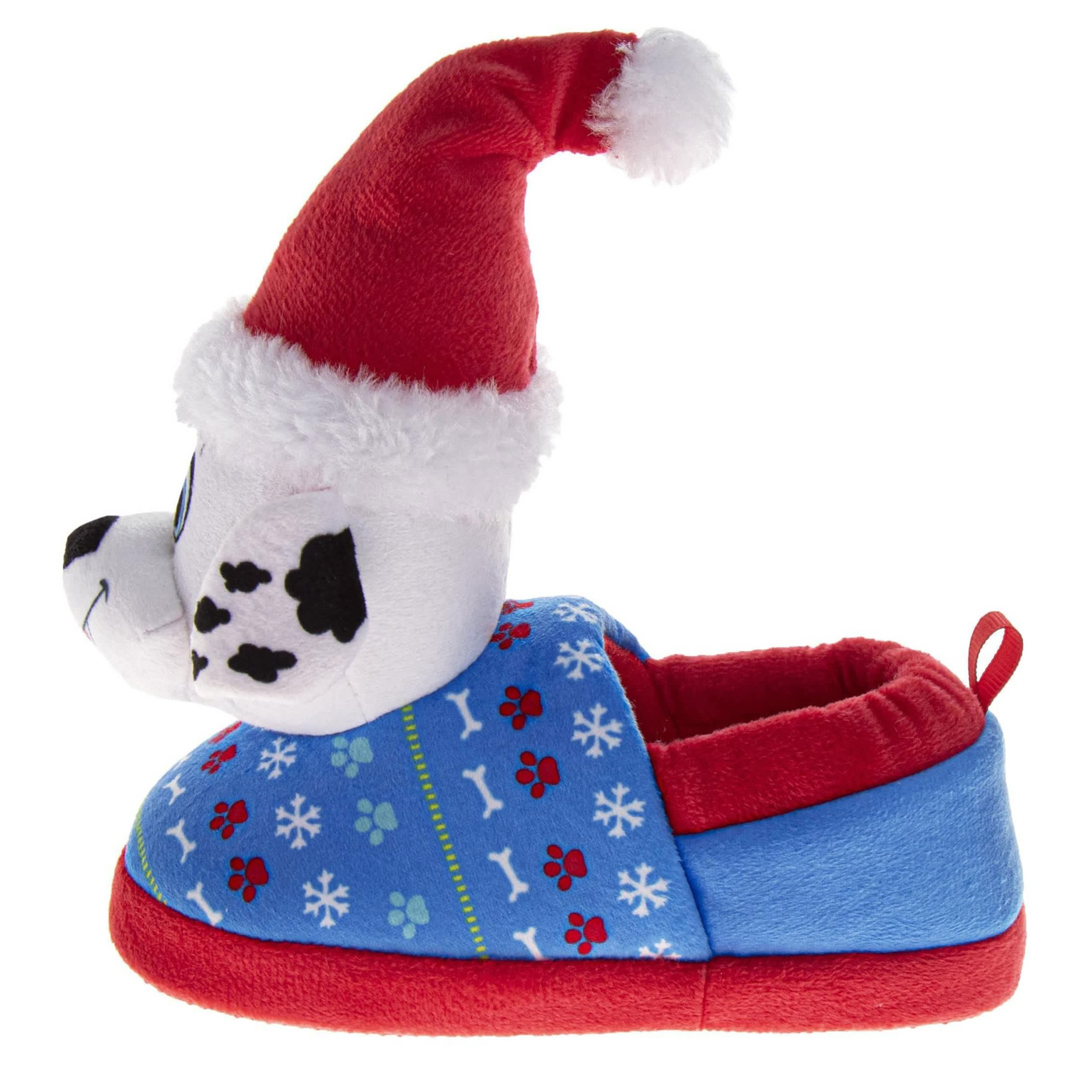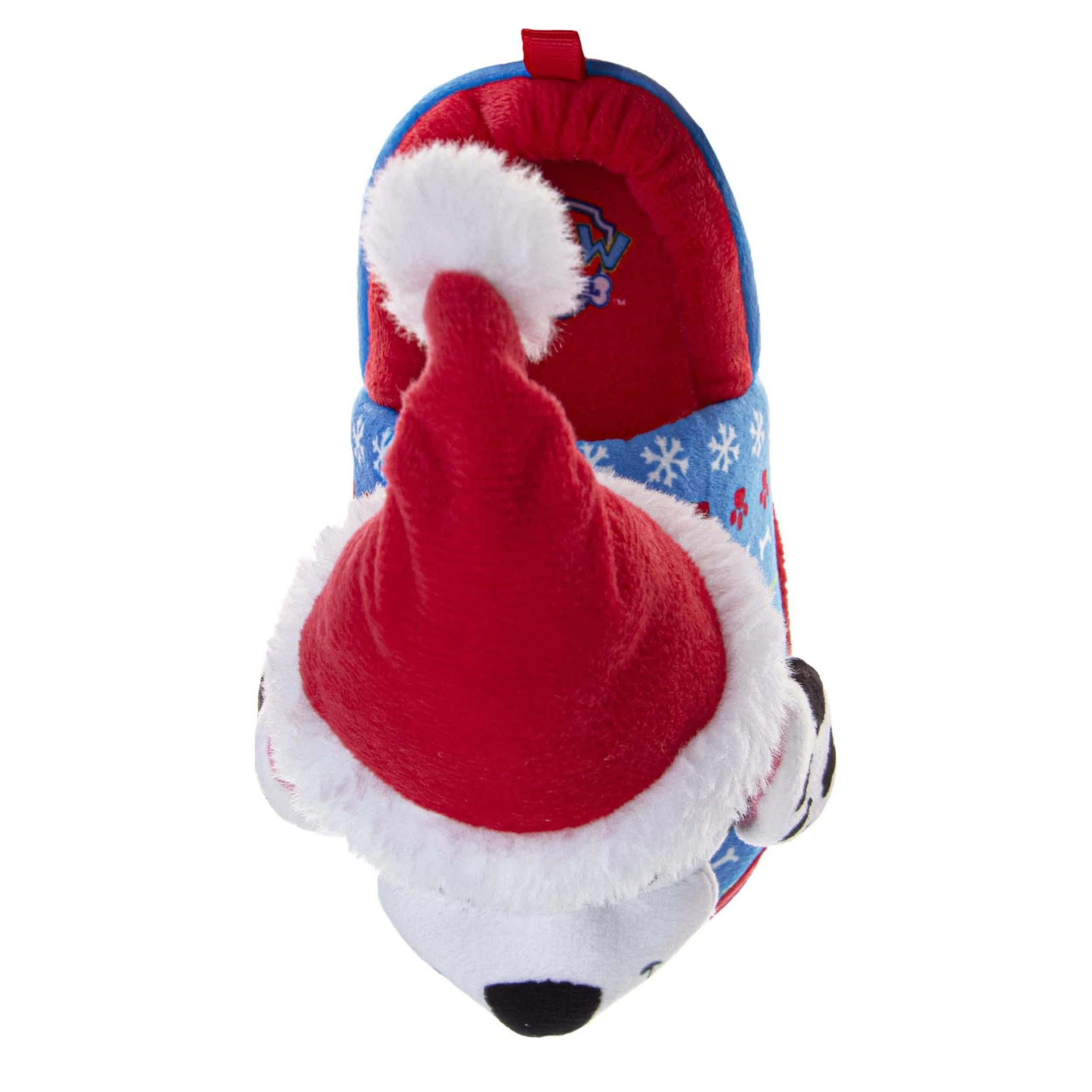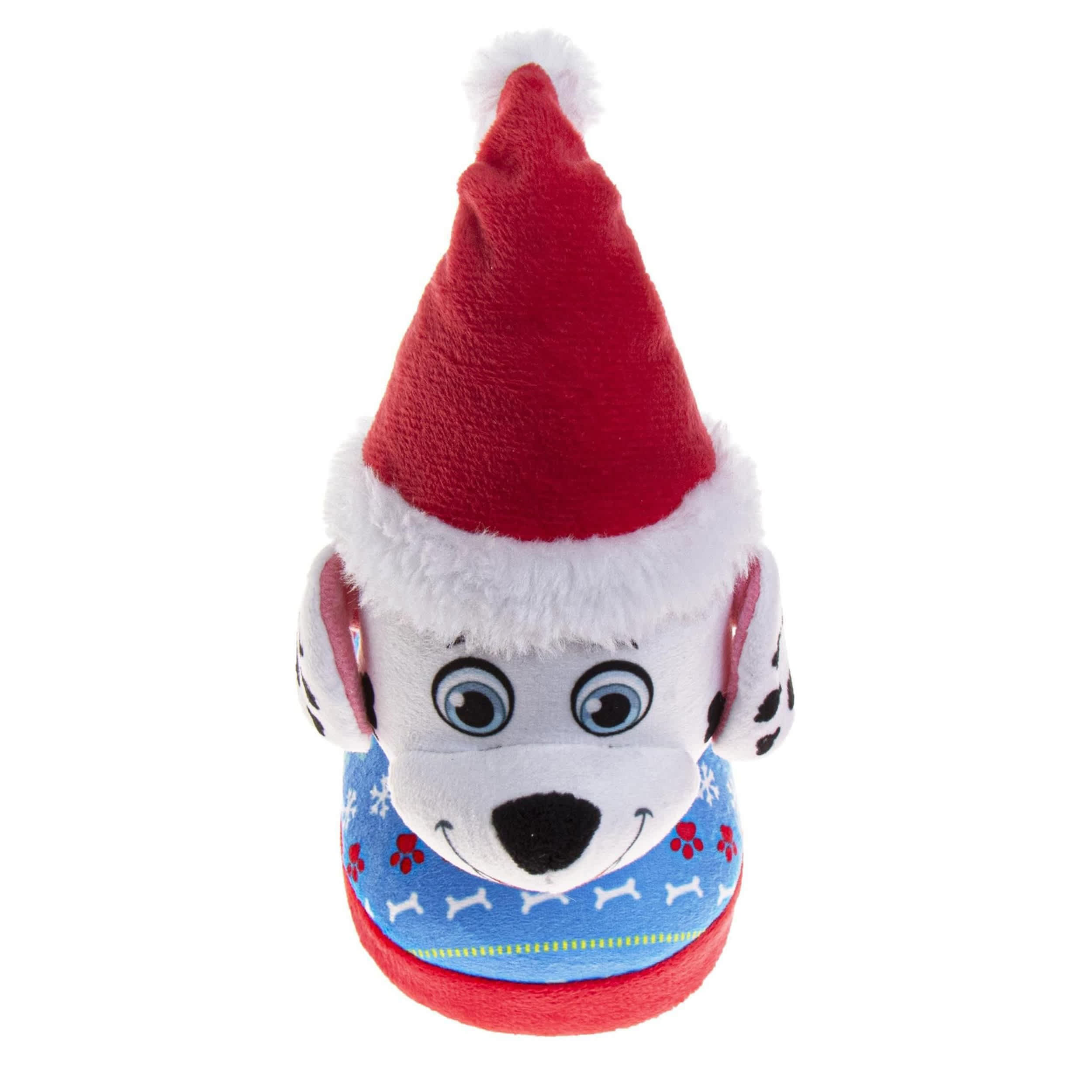 Wrap his little feet in Christmas fun with the Nickelodeon Paw Patrol toddler boys' slipper. Featuring a fabric & nylon upper with a prominent Santa Marshall and a plush trim & lining, this slipper is perfect for the holidays. The footbed cushions while the textured outsole offers non-slip grip.