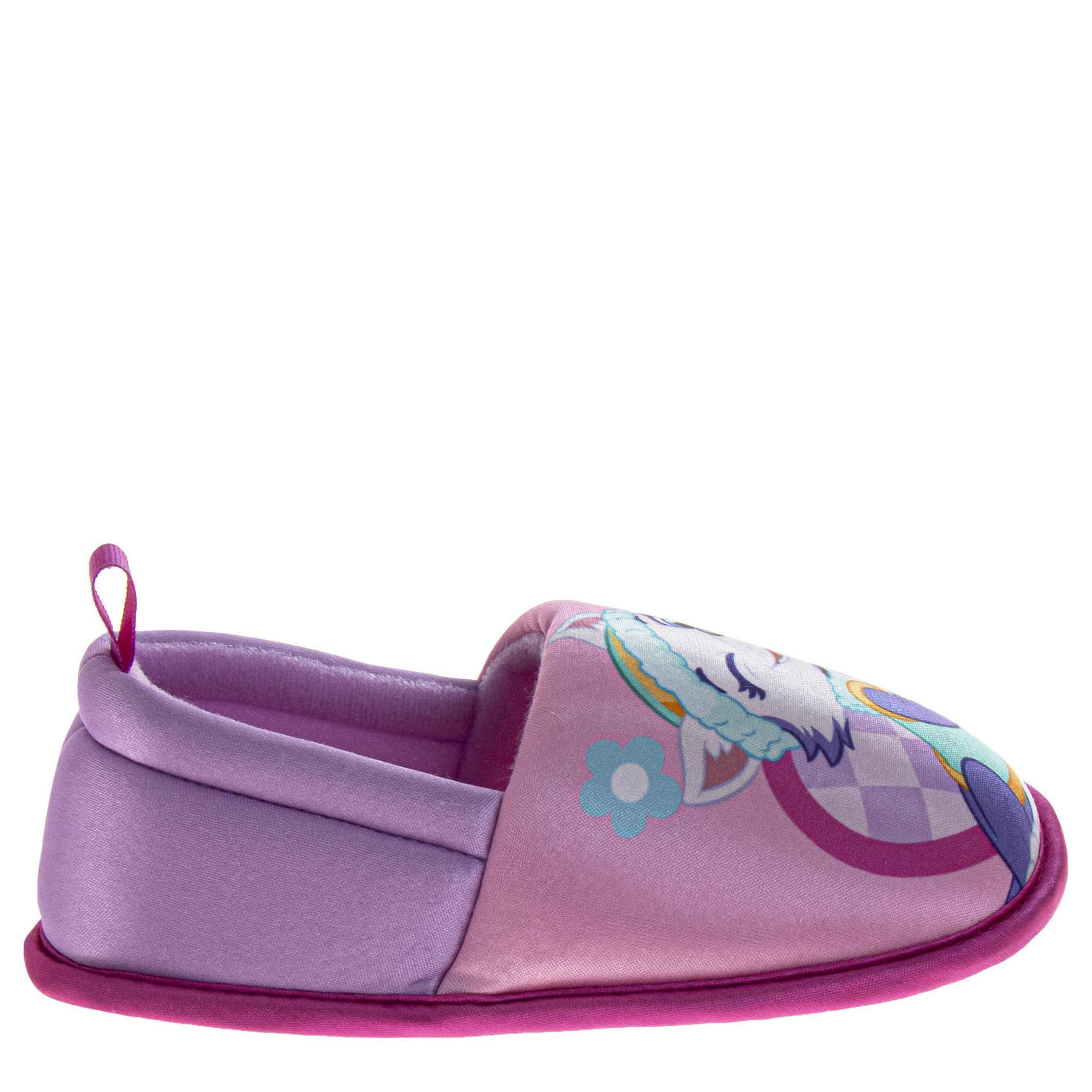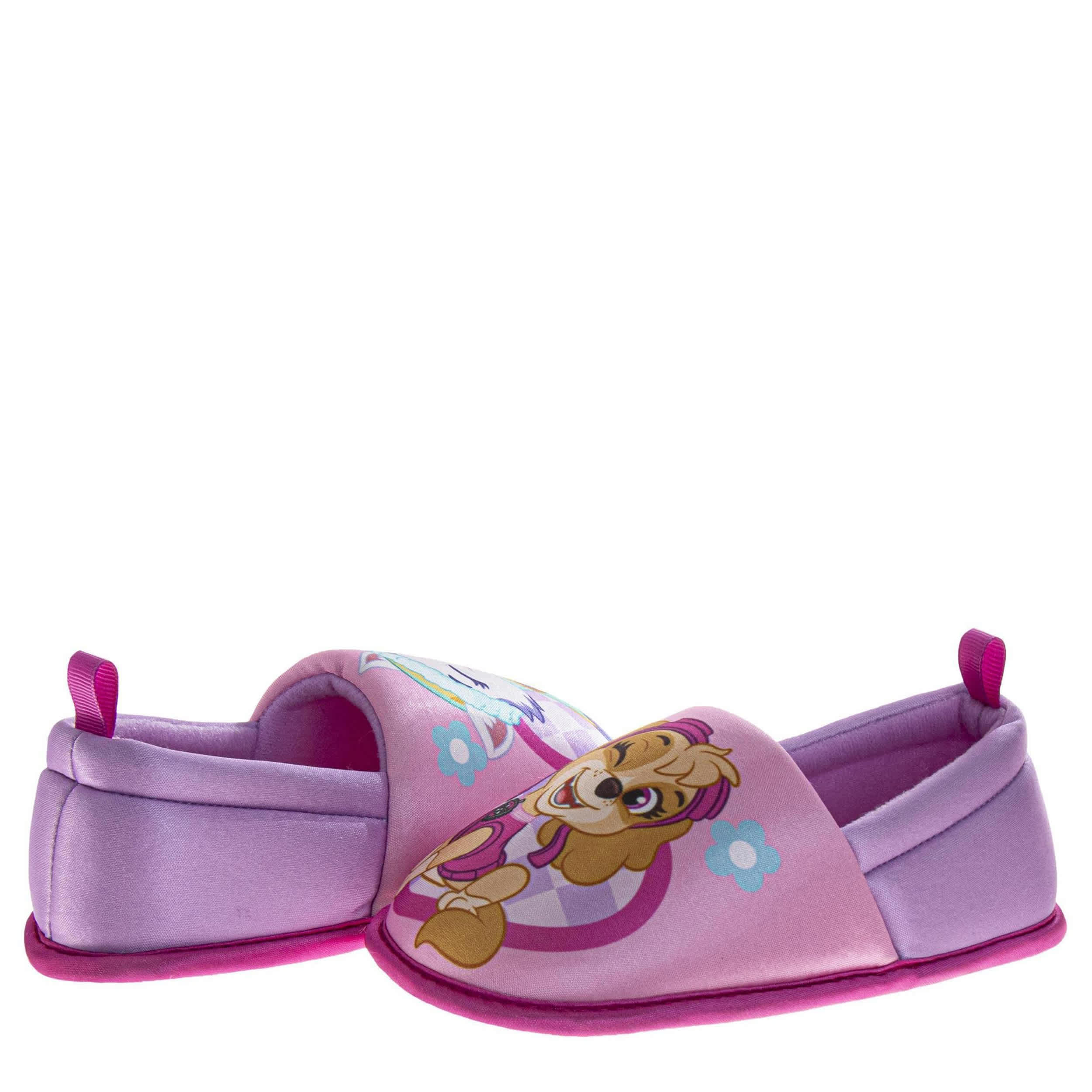She'll stay cozy with her favorite characters in the Nickelodeon Paw Patrol toddler girls’ slipper. Made with a fabric & nylon upper and plush lining, this slipper features Skye and Everest. The padded footbed and non-slip outsole keep her supported for all-day play.