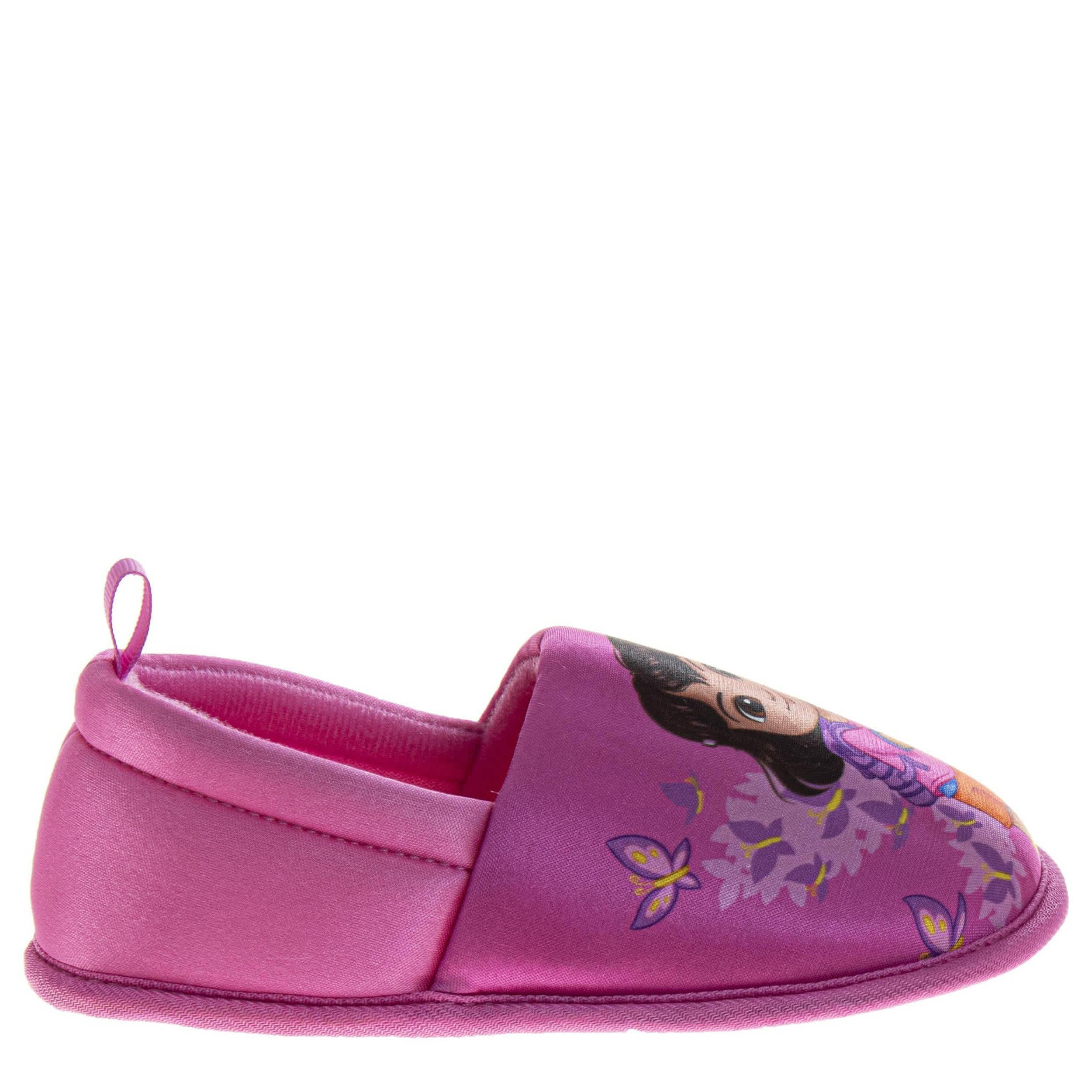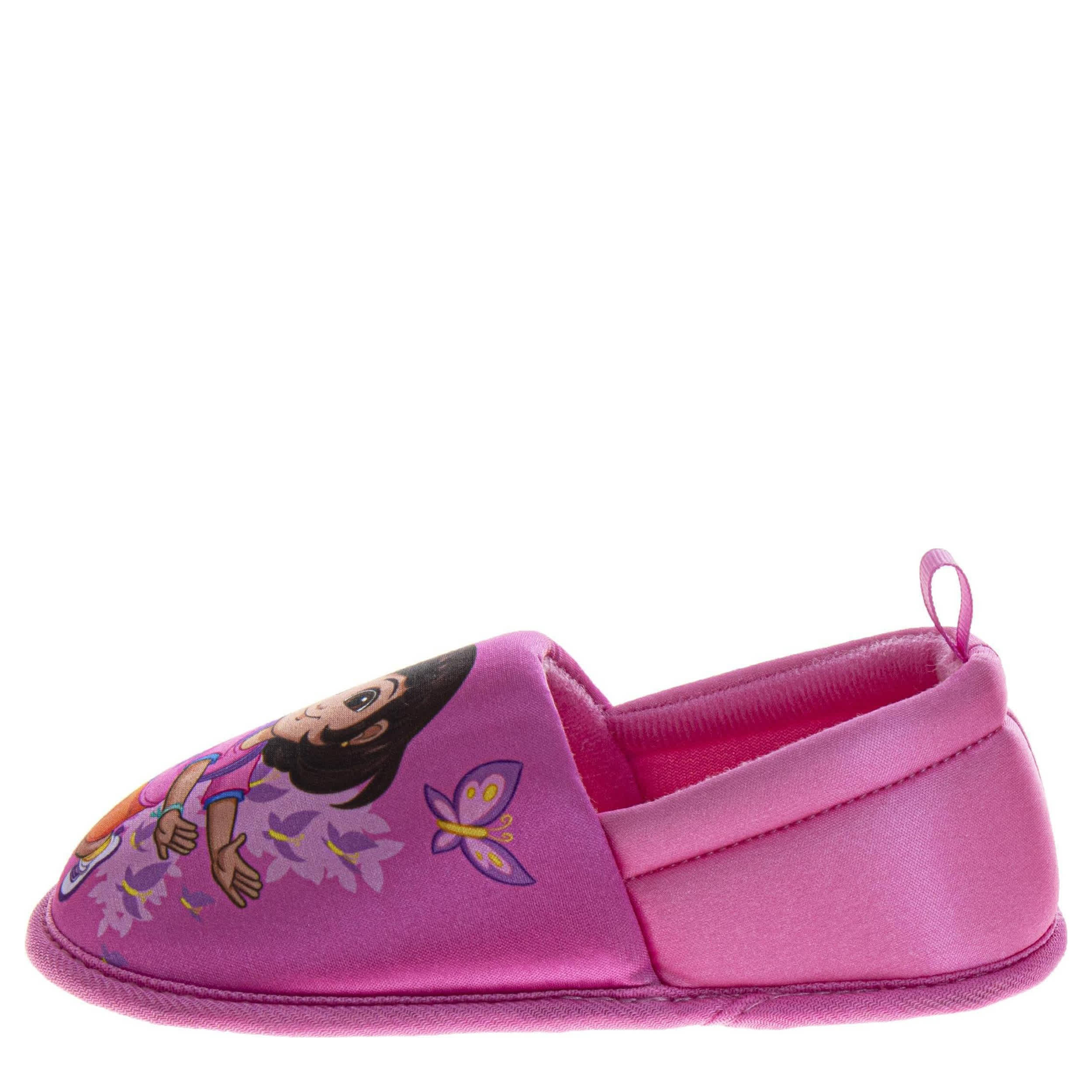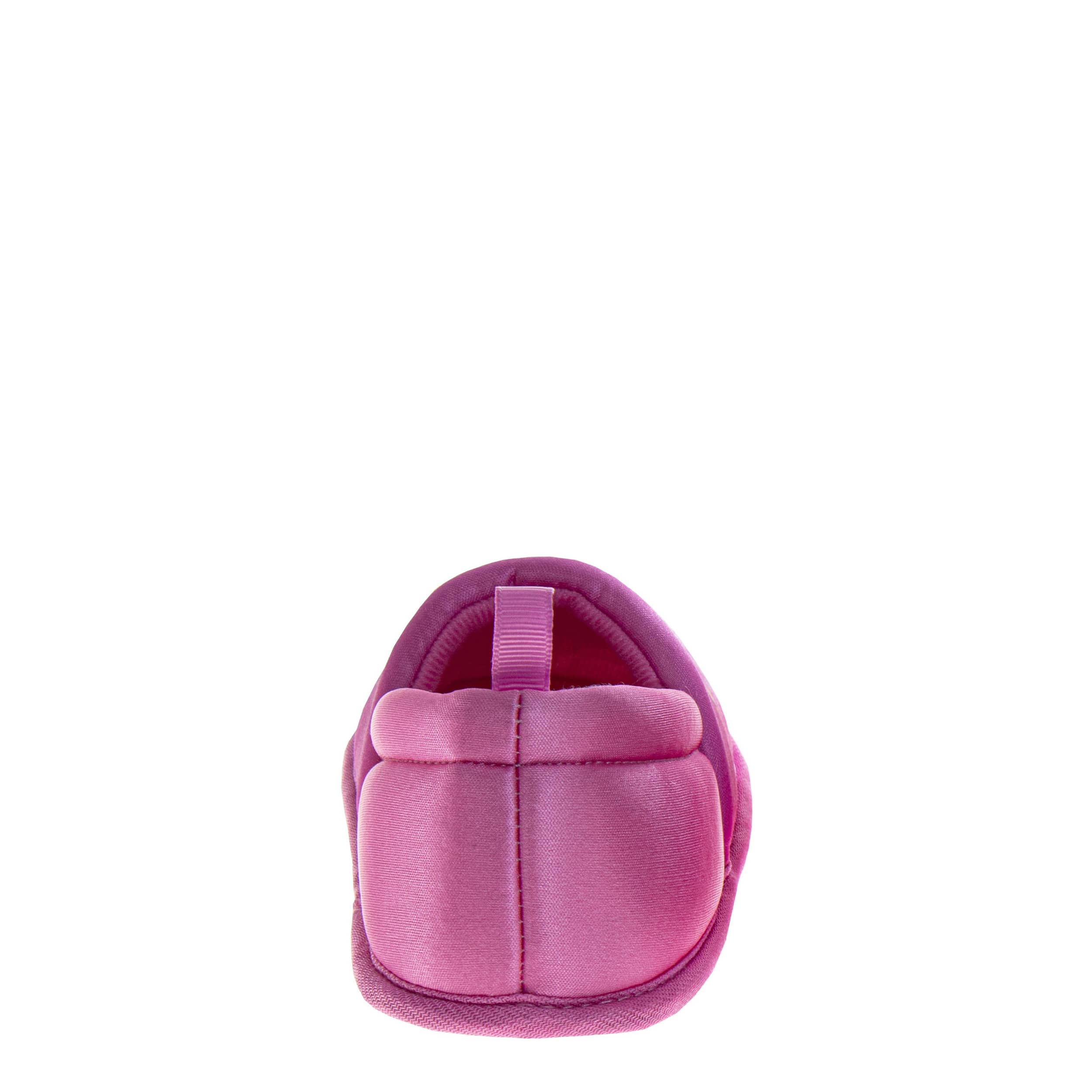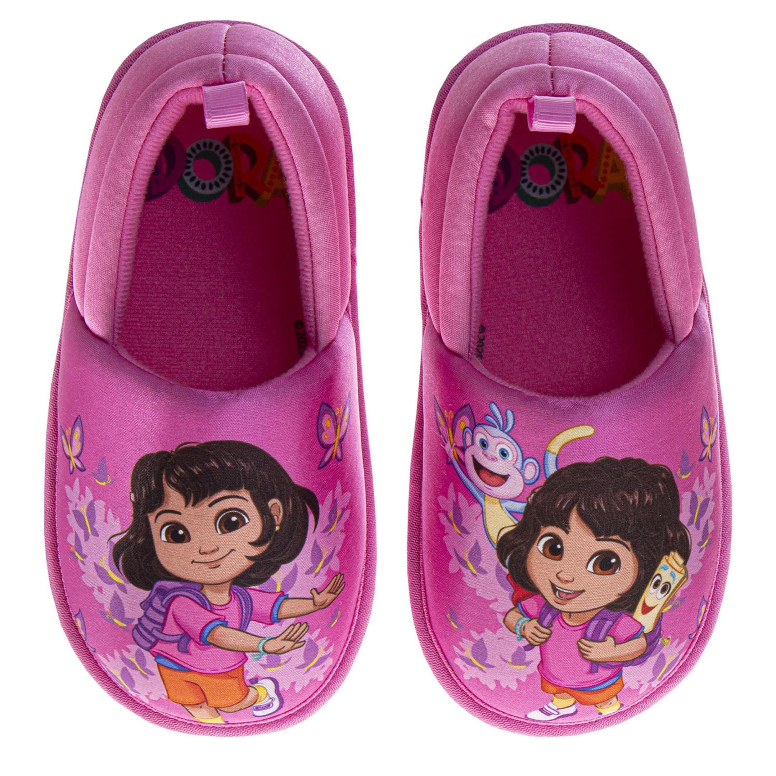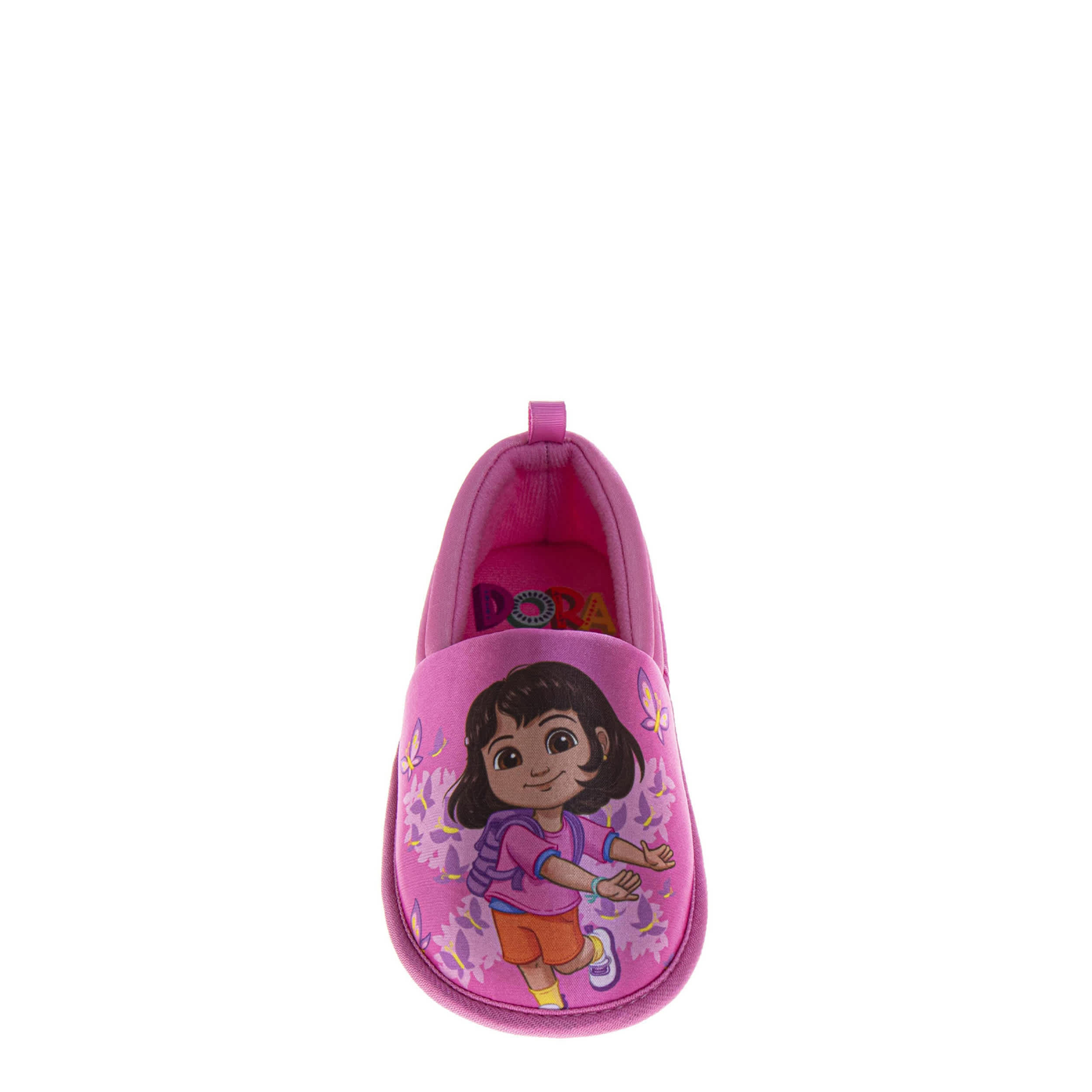She'll stay cozy with her favorite character in the Nickelodeon toddler girls’ slipper. Made with a fabric & nylon upper and plush lining, this slipper features the adventurous Dora the Explorer. The padded footbed and non-slip outsole keep her supported for all-day play.