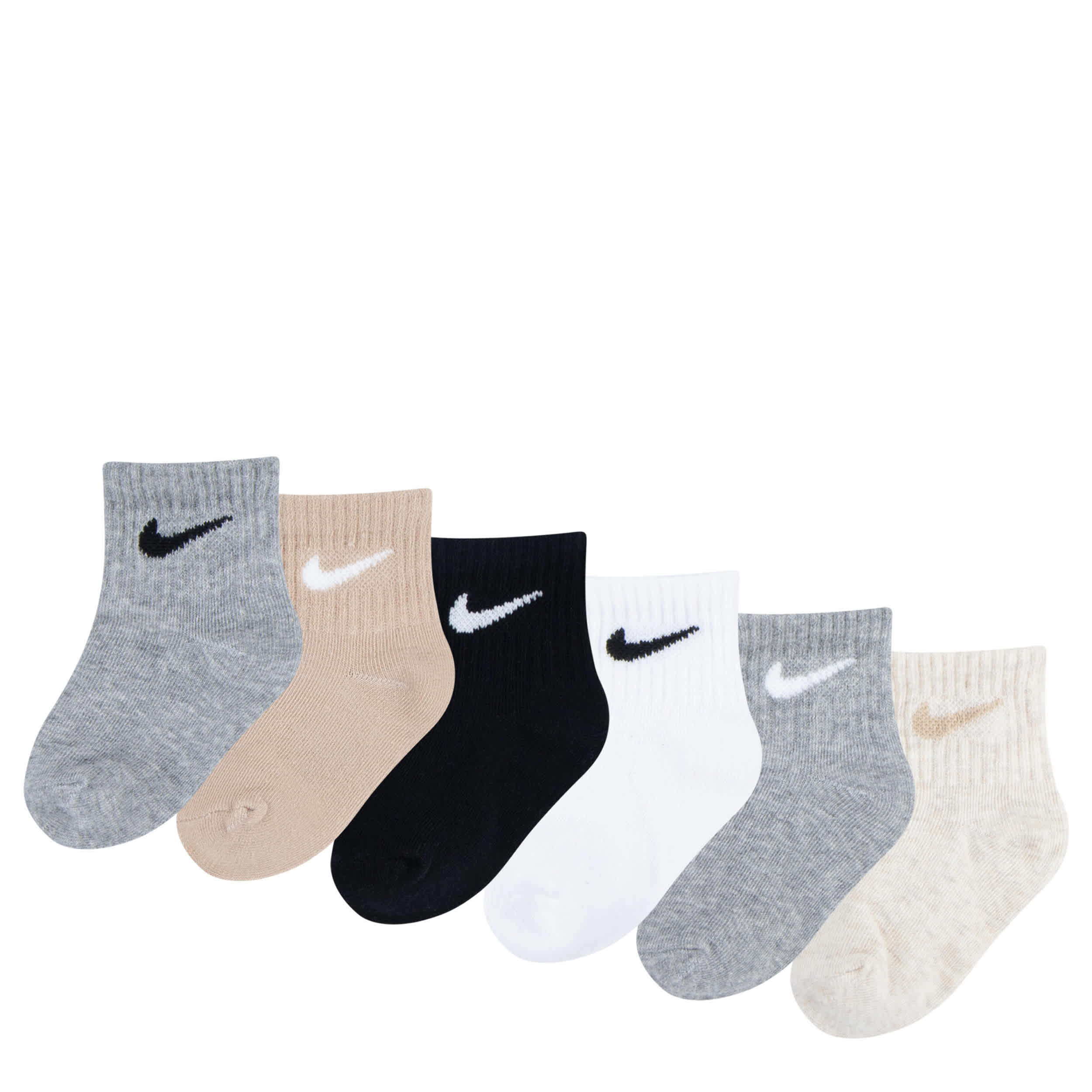 Keep your little one moving and grooving in comfort with the Nike Quarter Infant Socks 6-Pack. These soft socks feature a thick terry sole that cushions every step, protecting those precious little feet. The ribbed cuff ensures a snug fit, so they stay in place during playtime and exploration. And of course, the iconic Nike Swoosh logo adds a touch of style. Give your baby the best start with these high-quality, comfortable socks.