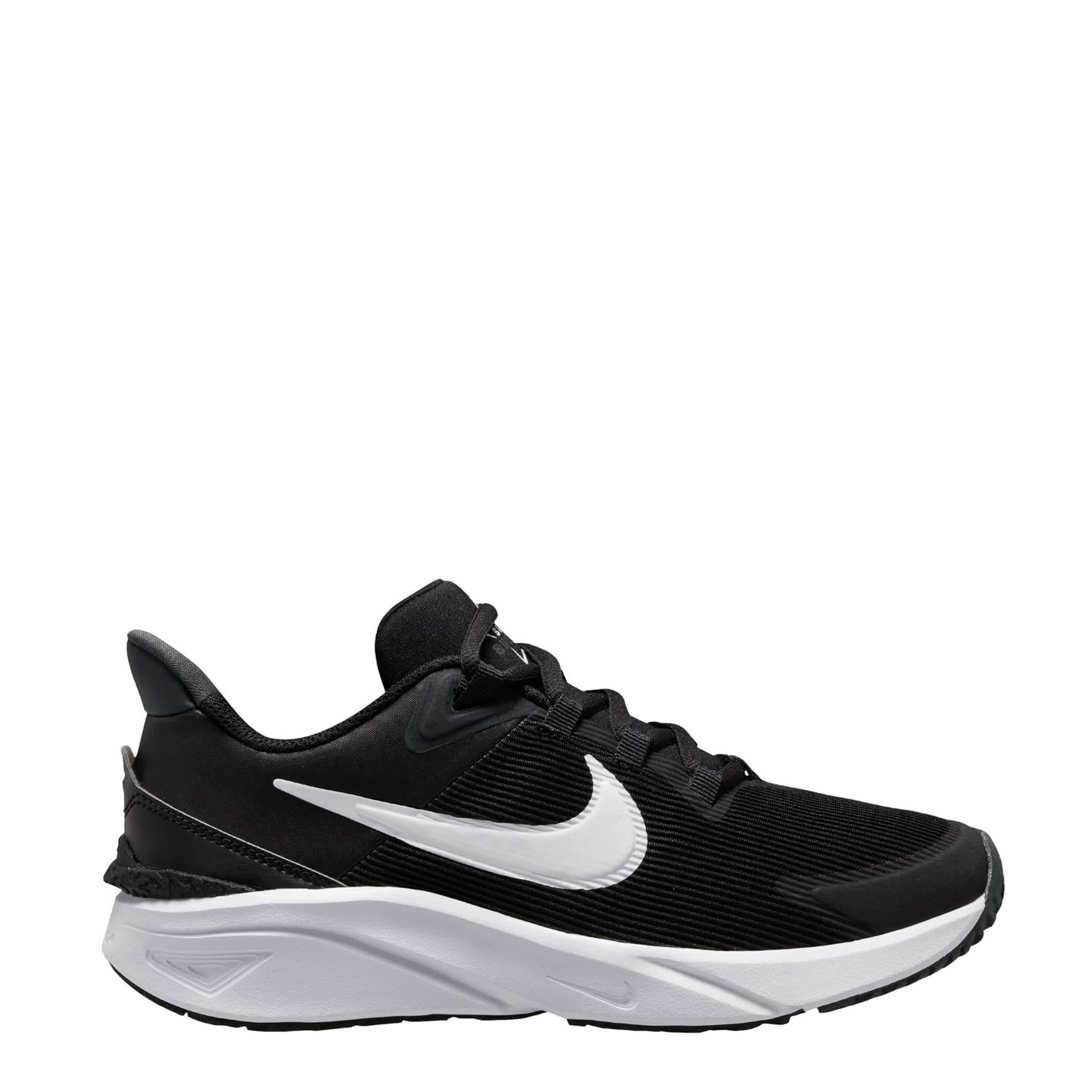 Let him run free in the Nike Star Runner 4 boys' sneaker. With a partially recycled vertical mesh & synthetic upper featuring a durable toe skin, these lace-up shoes have a seamed tongue and heel system for easier entry all summer long. The midsole cushions every step, while the outsole provides extra grip as he stays on the go.
