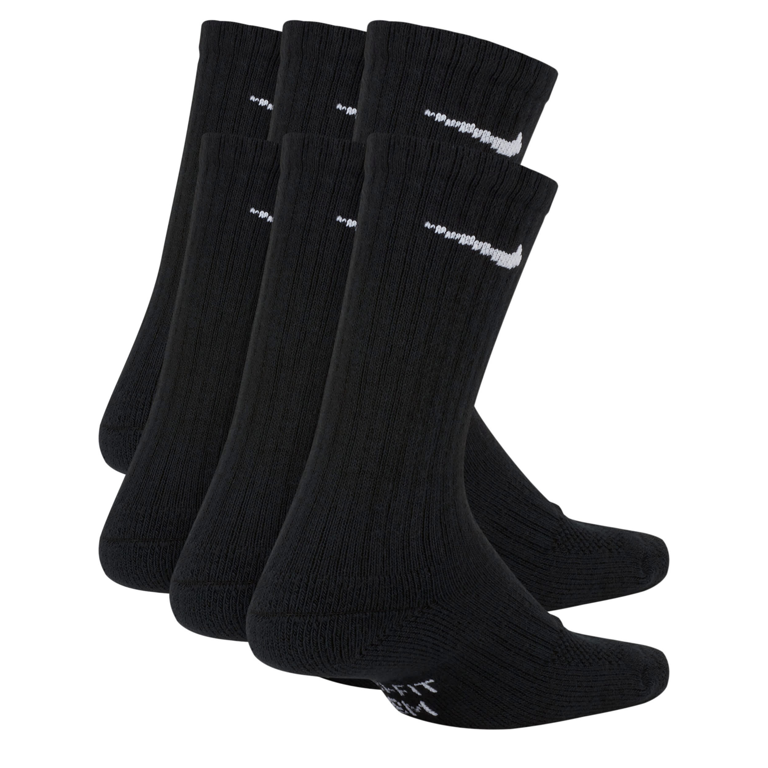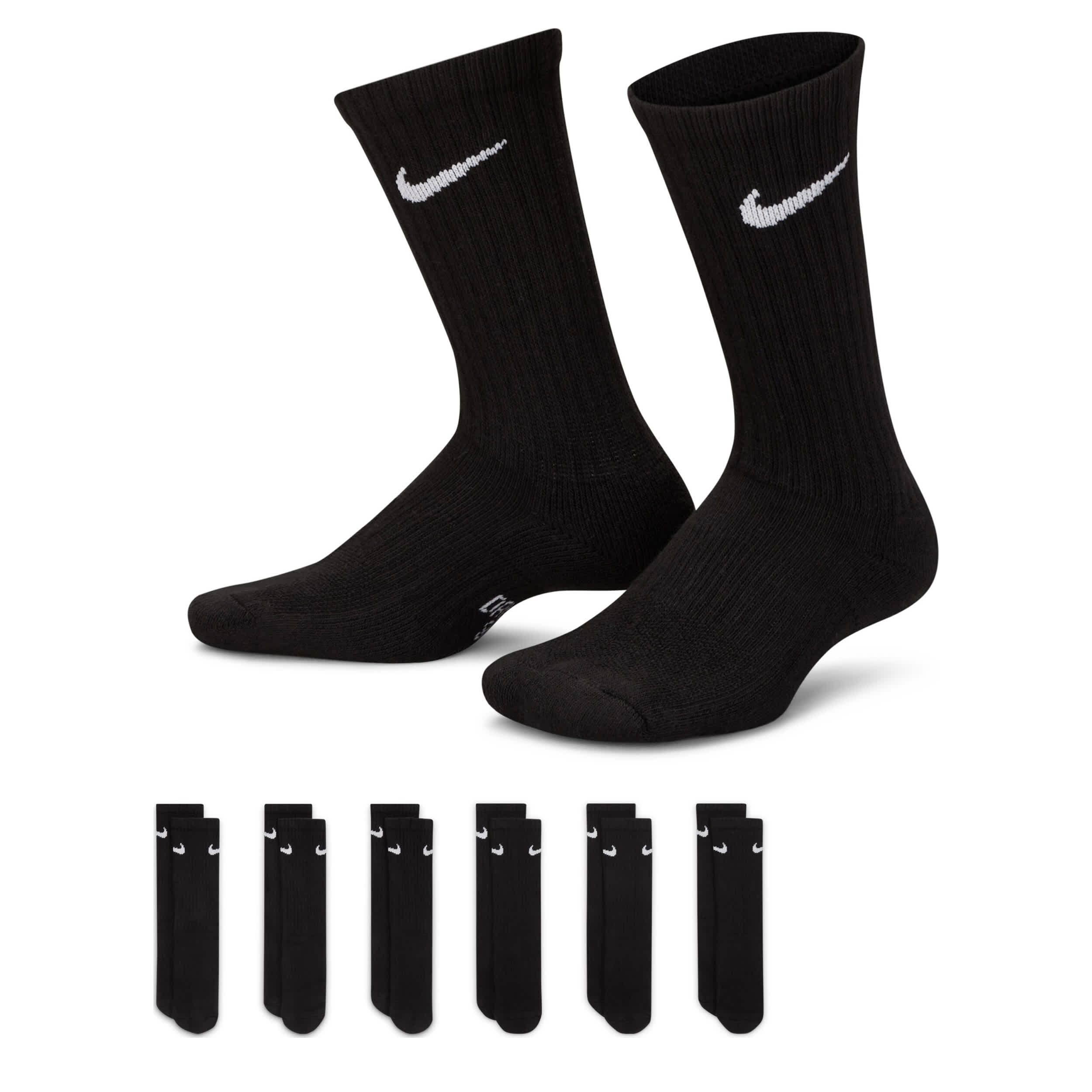 He'll play without missing a step in the Nike Crew Medium boys' socks 6 Pack. Soft & cushy to keep him moving with an arch band for snug support, this sock is breathable so he stays cool. The extra cushioning provides all-day comfort.