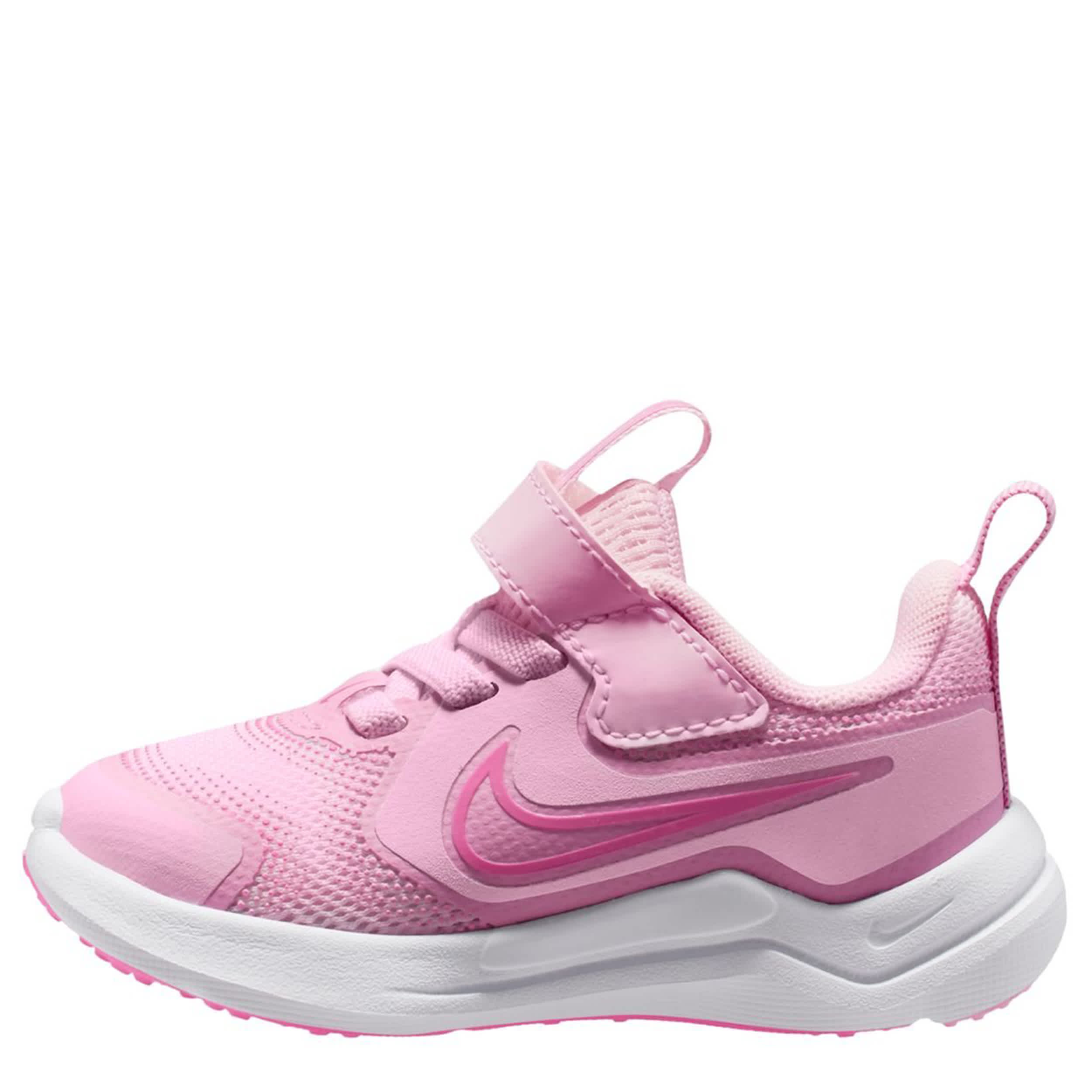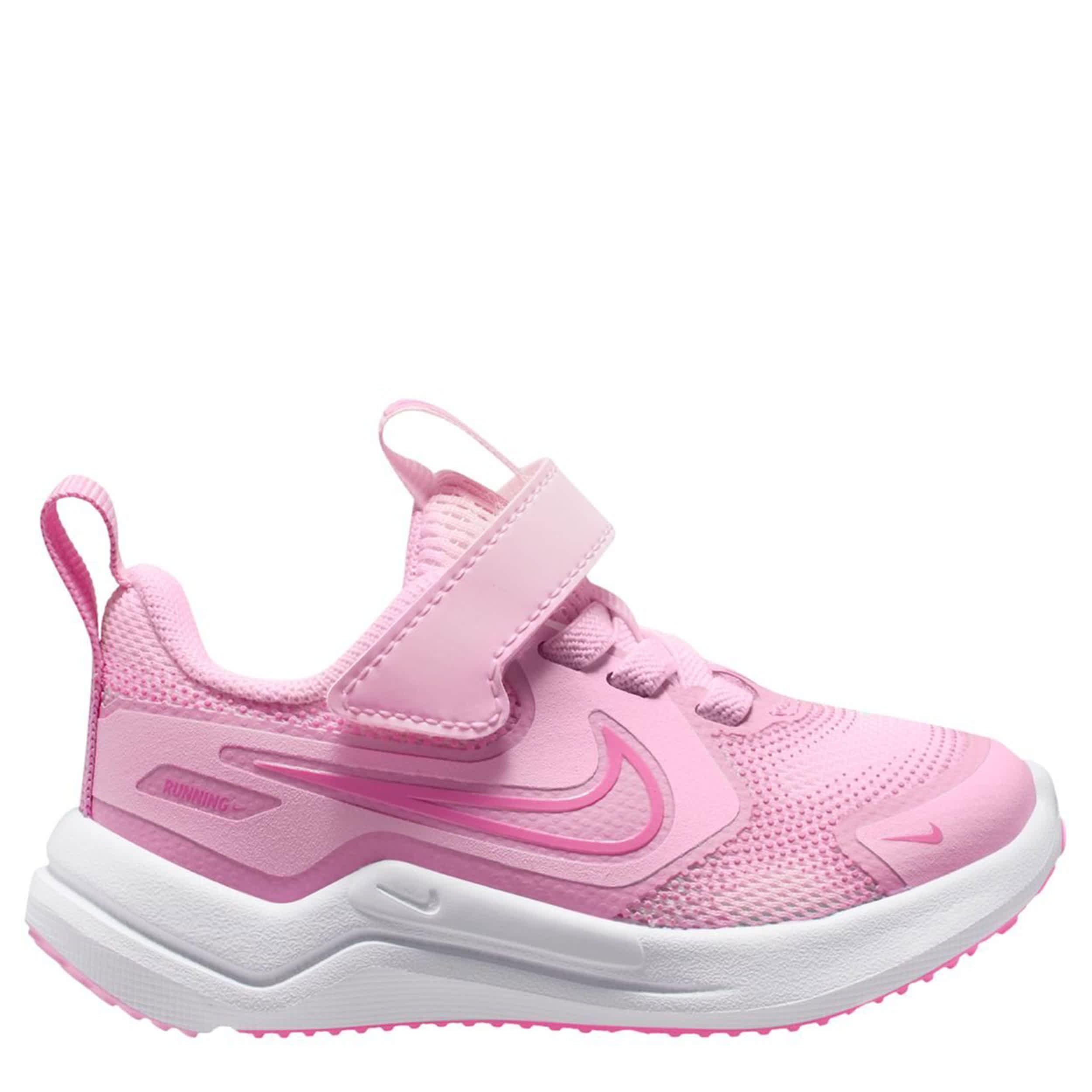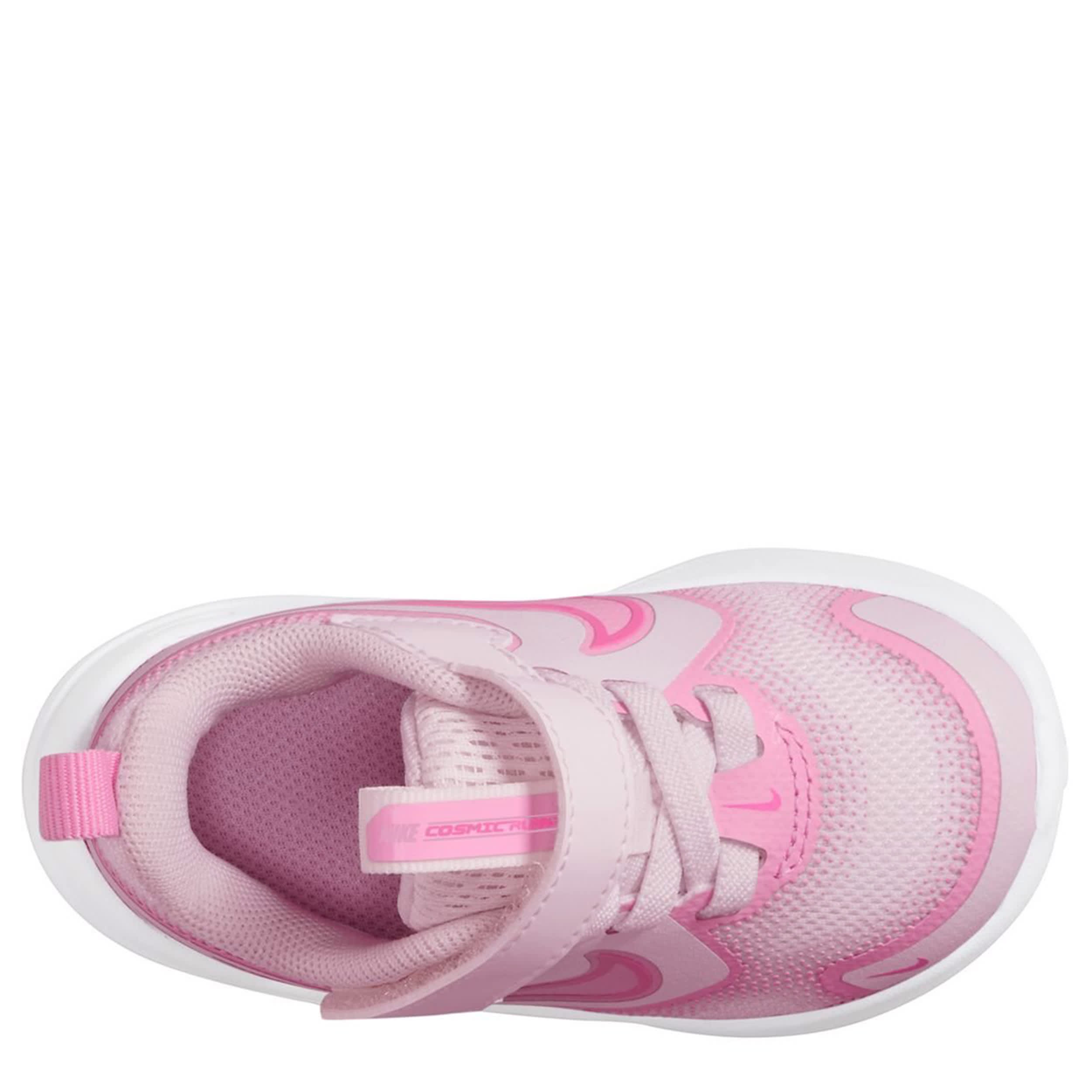Leave competition in the stardust with the Nike Cosmic Runner infant girls' sneaker. Featuring a partially recycled mesh & synthetic upper featuring a reinforcements for durability, these lace-up shoes have pull tabs on the tongue and heel for easy entry. The soft cushioning comforts every step, while the outsole provides extra grip on multiple surfaces.