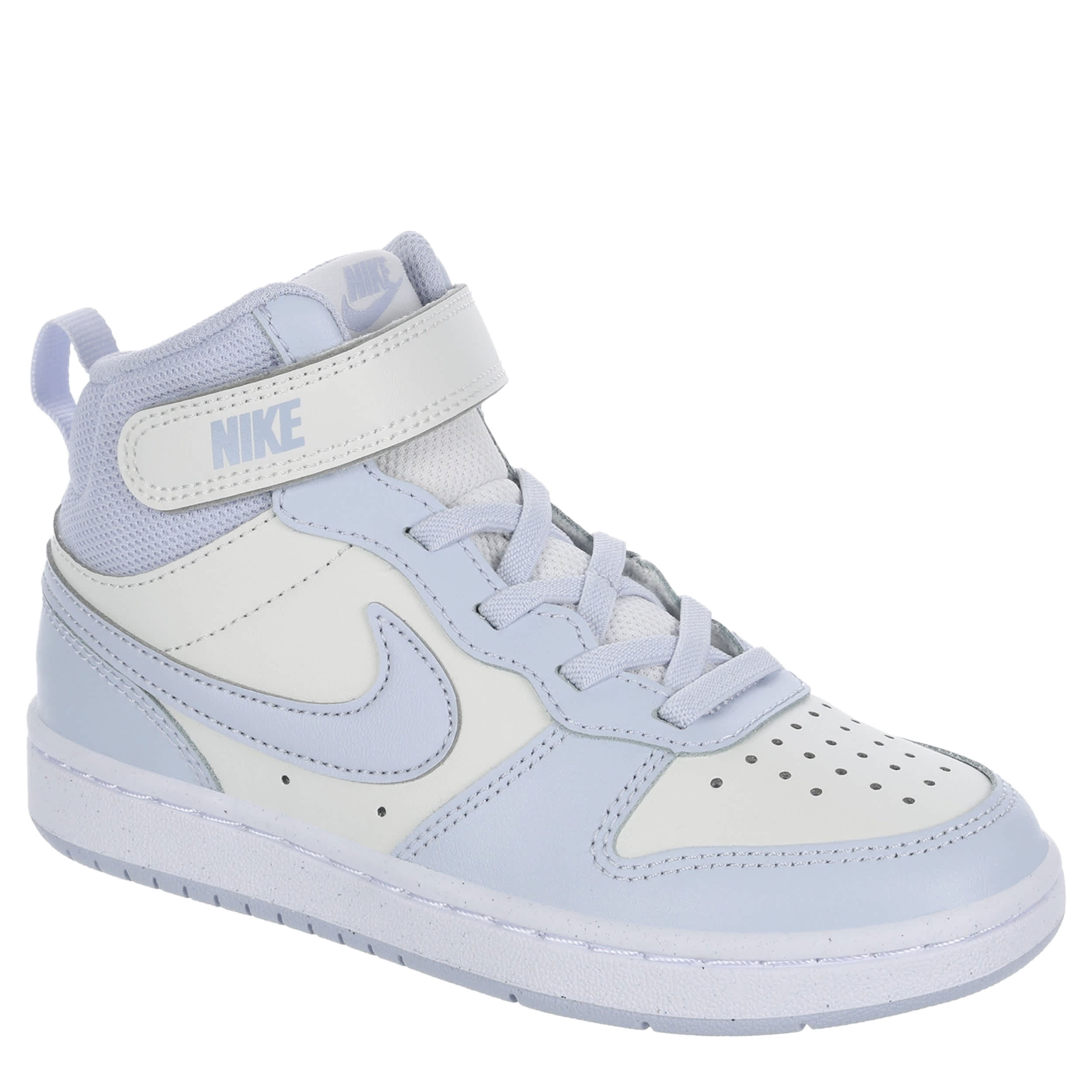 Make your little girl the coolest kid in school with this Court Borough 2 Mid girls' sneaker, inspired by the Nike Air Jordan 1 Mid. Featuring a leather upper with a timeless design that includes the classic Swoosh branding, sporty looks so good on her. The perforated toe panel adds another touch of style to this nostalgic shoe.
