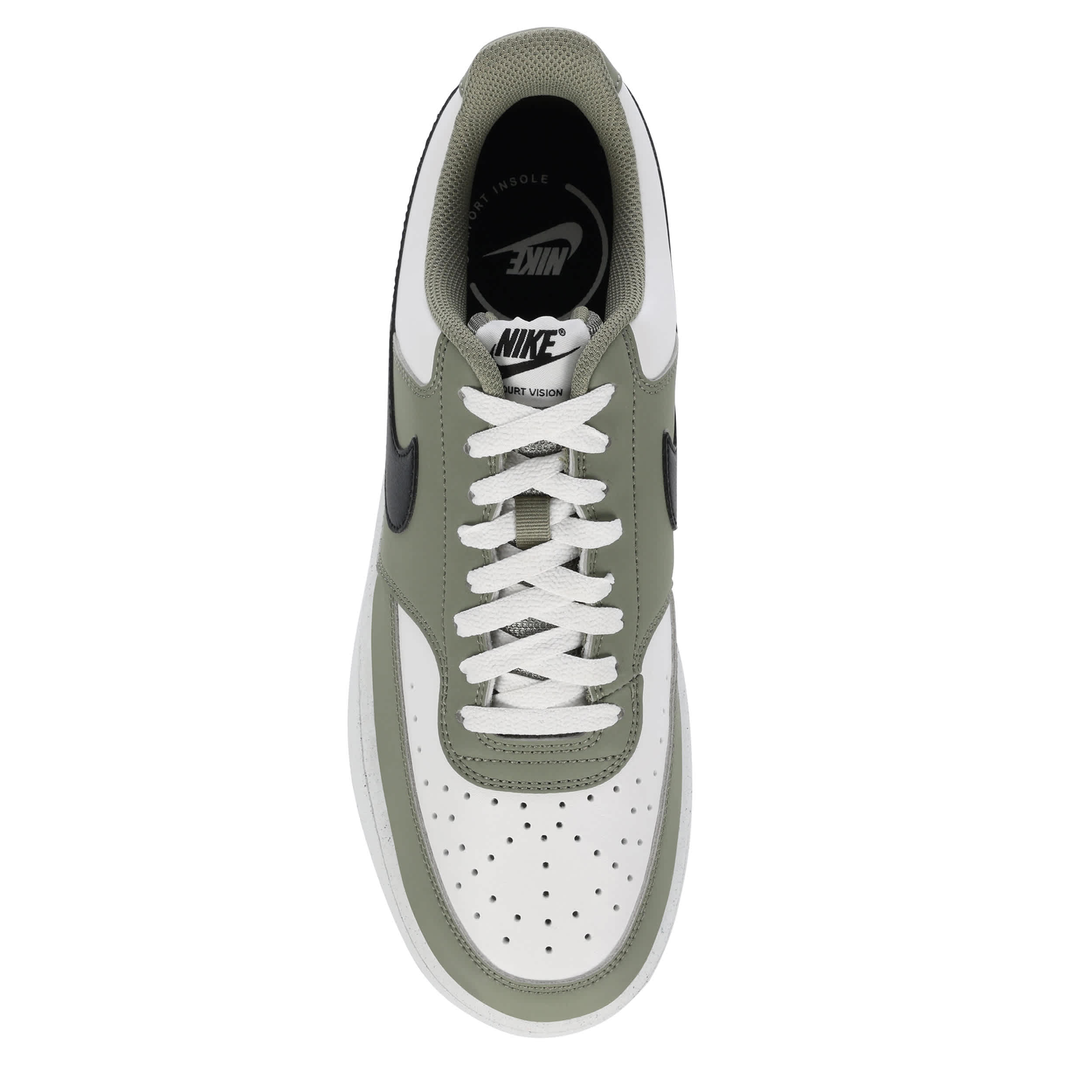 A combination of retro design and modern performance make the Court Vision Low Next Nature men's sneaker from Nike a perfect shoe on or off the court. Call back to the '80s look with perforated toes and sides as well as Vulcanized rubber traction outsole. The Nike Swoosh keeps the classic vibe going.