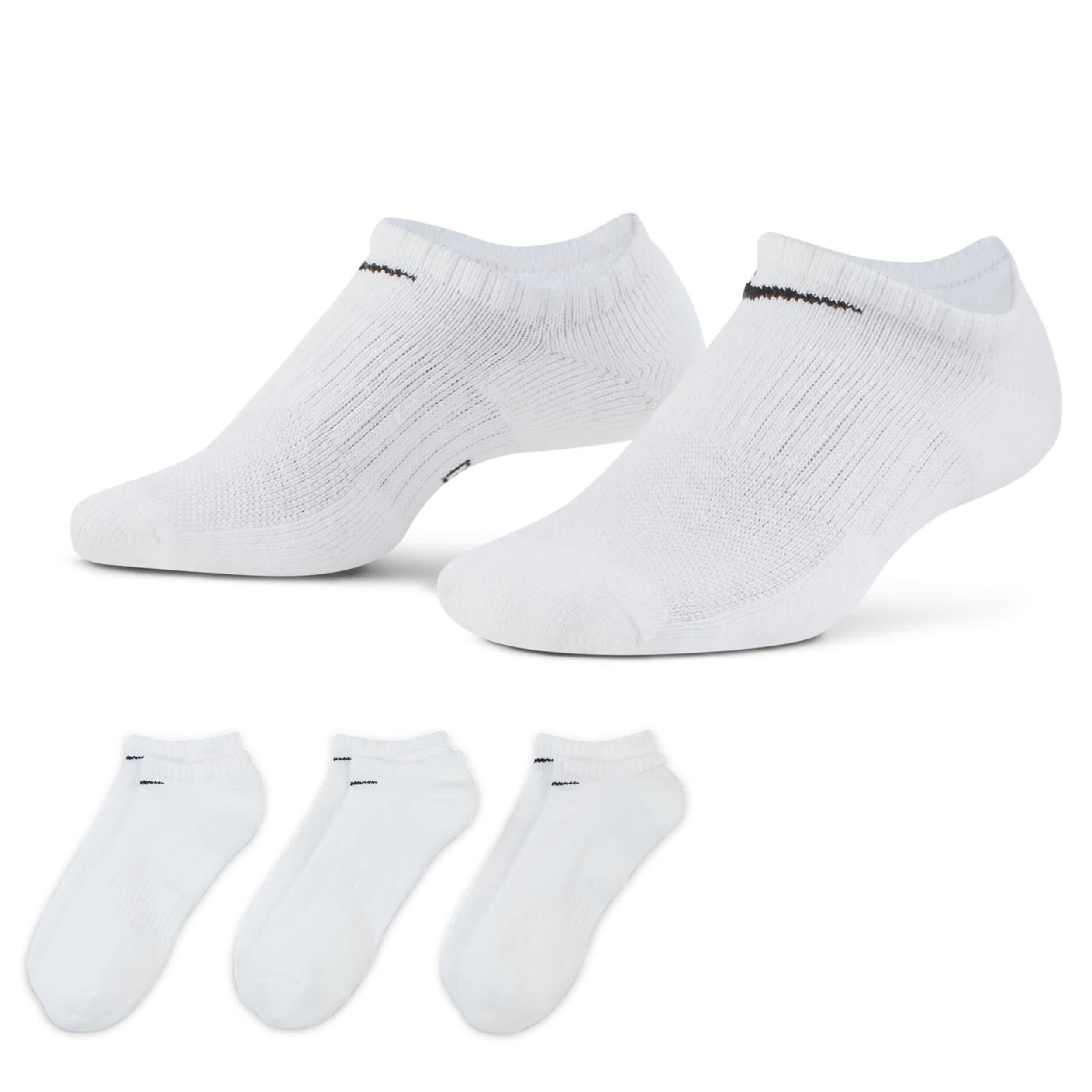 You'll look relaxed and stylish in the Nike SM Everyday Cushioned No Show socks 3 pack. Featuring lightweight fabric with a no-show design and cushioning under the heel and forefoot to help reduce impact during high-intensity workouts. An arch band provides a snug and supportive fit while the Dri-FIT technology absorbs moisture to keep your feet cool & dry.