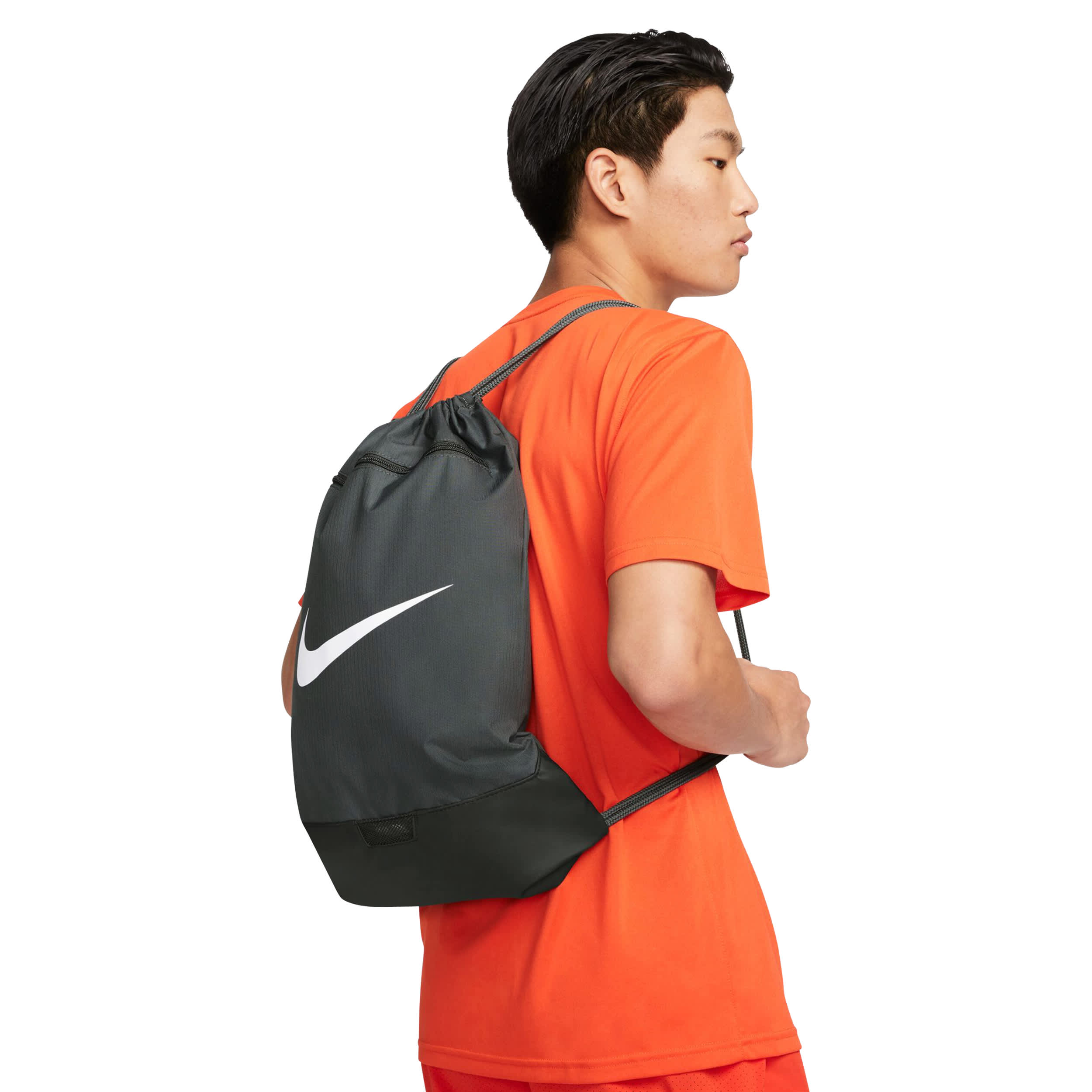 Minimal design, but lots of storage space in the Brasilia9½unisex drawstring bag from Nike. Get ready to embrace any adventure with the vented mesh inset for ventilatio and top-loading compartment. A front zip pocket allows easy access to your valuables, including an effortless drawstring closure and reinforced bottom.