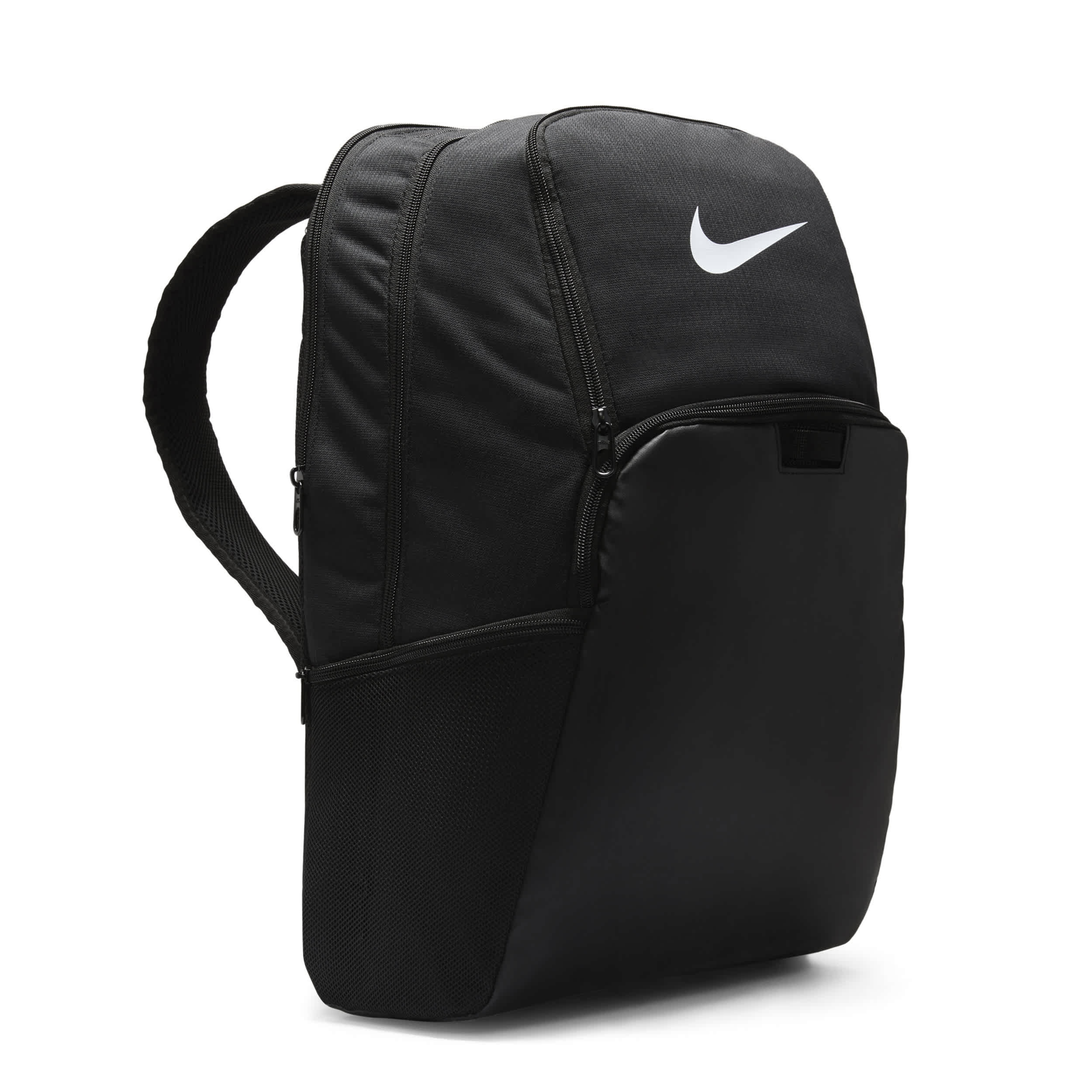 This extra roomy pack is ready for an adventure. The Nike Brasilia XL unisex backpack features a reliable fabric construction with a ventilated wet and dry compartment. Internal organization includes a laptop sleeve and dual zip main compartment. Outside pockets are easily accessible to store small items, plus there'san effortless carry top handle.