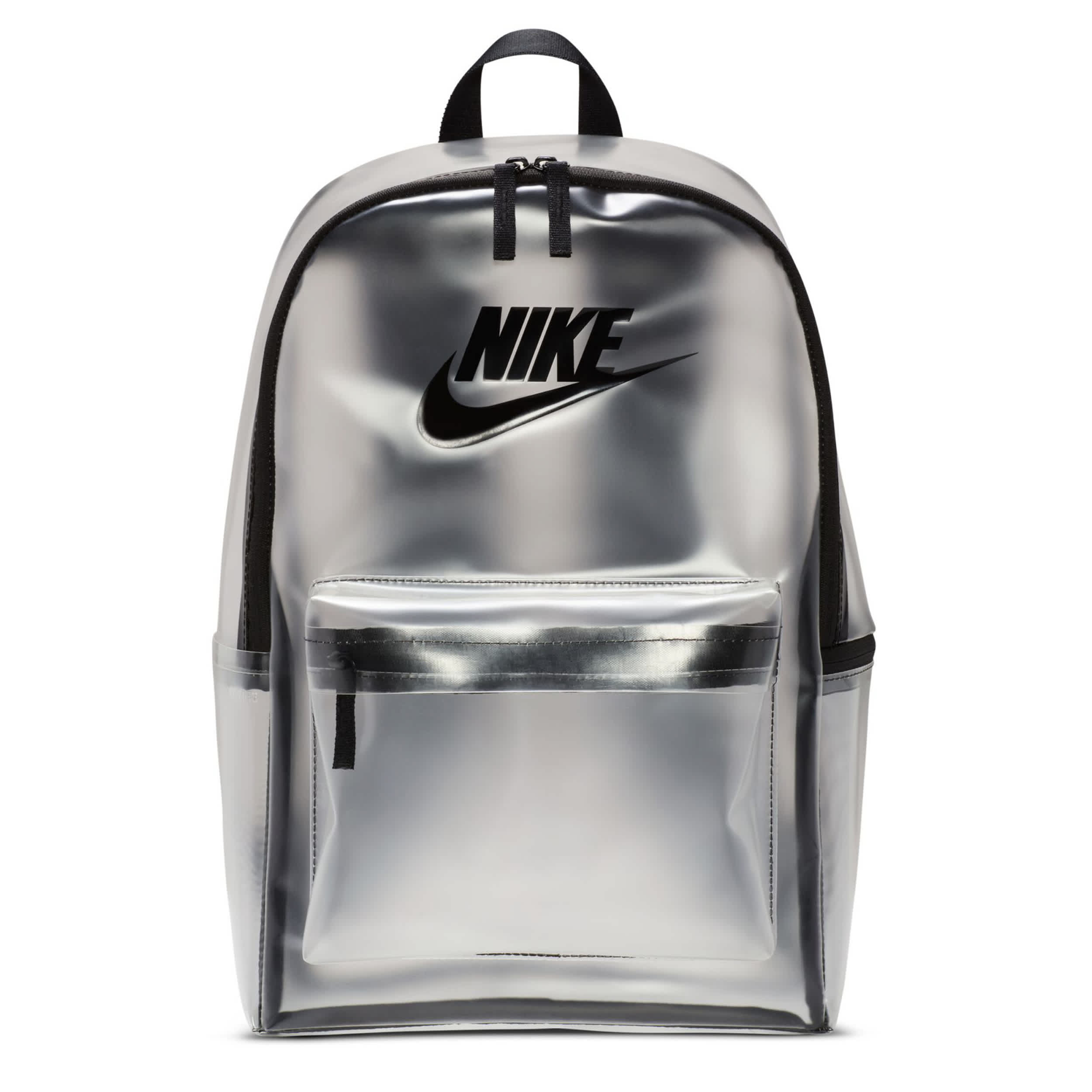 Don't hunt for your gear with everything stored in the Nike Heritage Crystal Clear unisex backpack. Organize smaller items with zippered compartments. Haul loop or padded straps give you options for carrying.