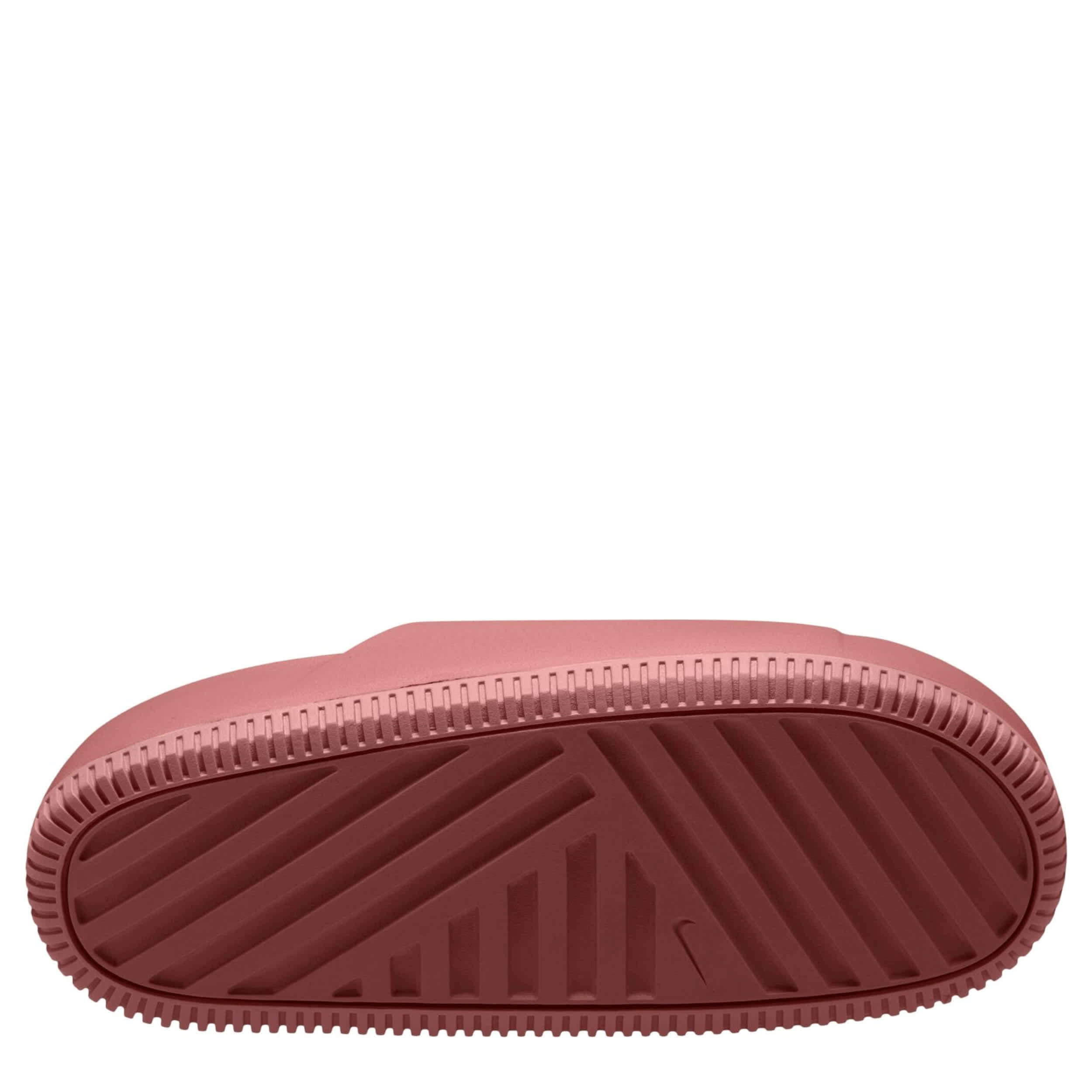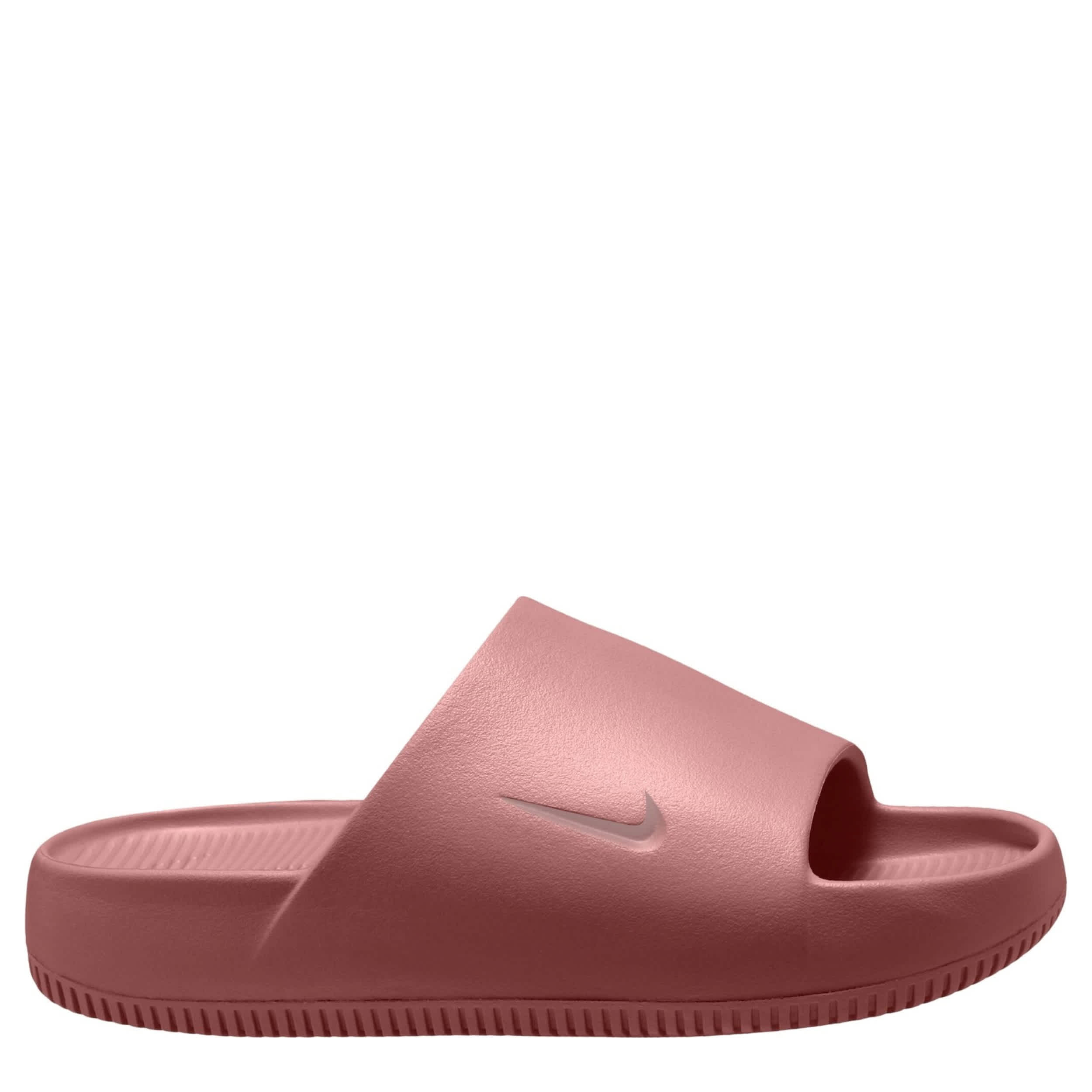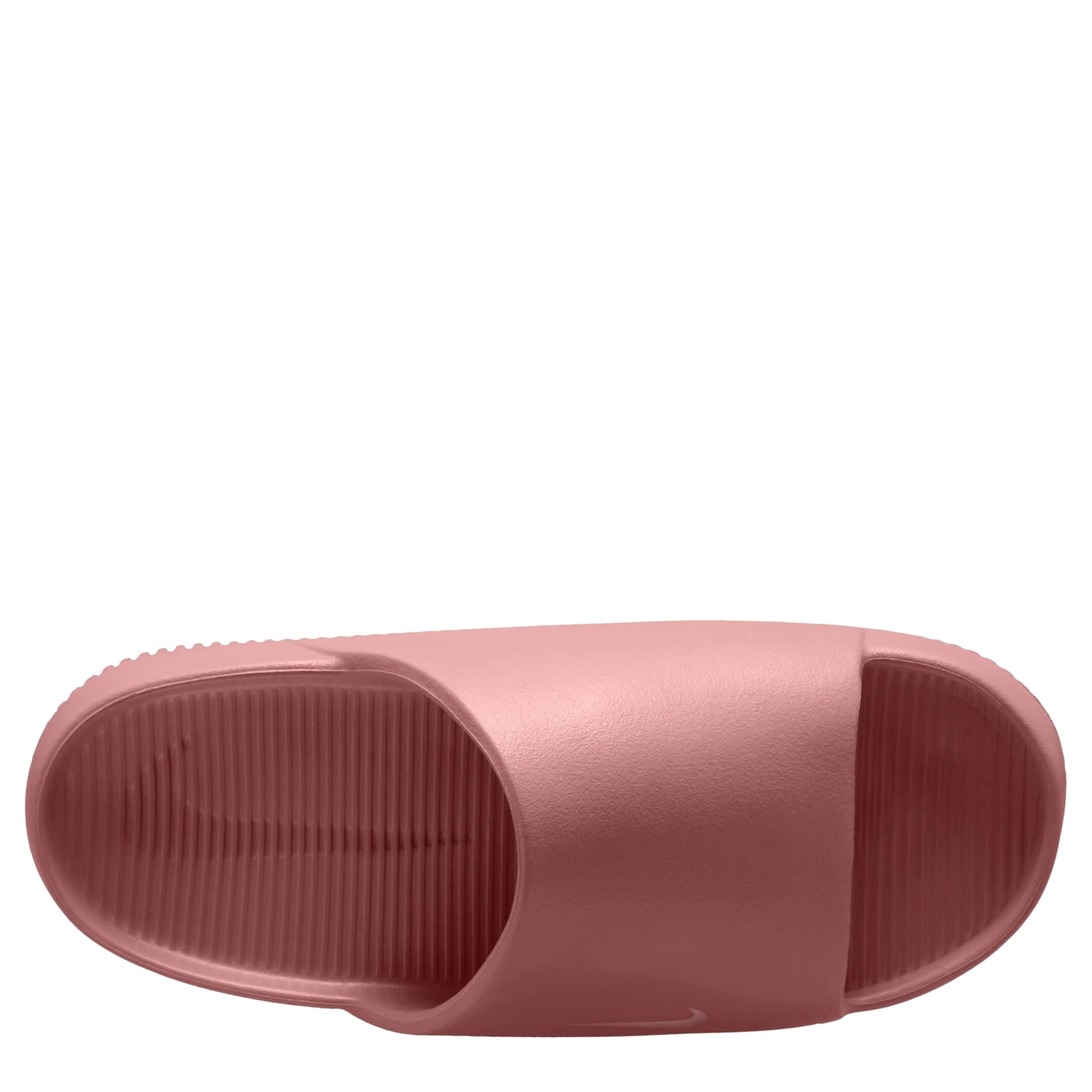 Dial down your stress in the Calm women's slide sandal from Nike. Featuring a water-friendly, single piece upper with a contoured fit for a soothing feel, this slide works everywhere from the streets to the pool. The foam footbed cradles your foot while the subtly textured outsole adds some traction.