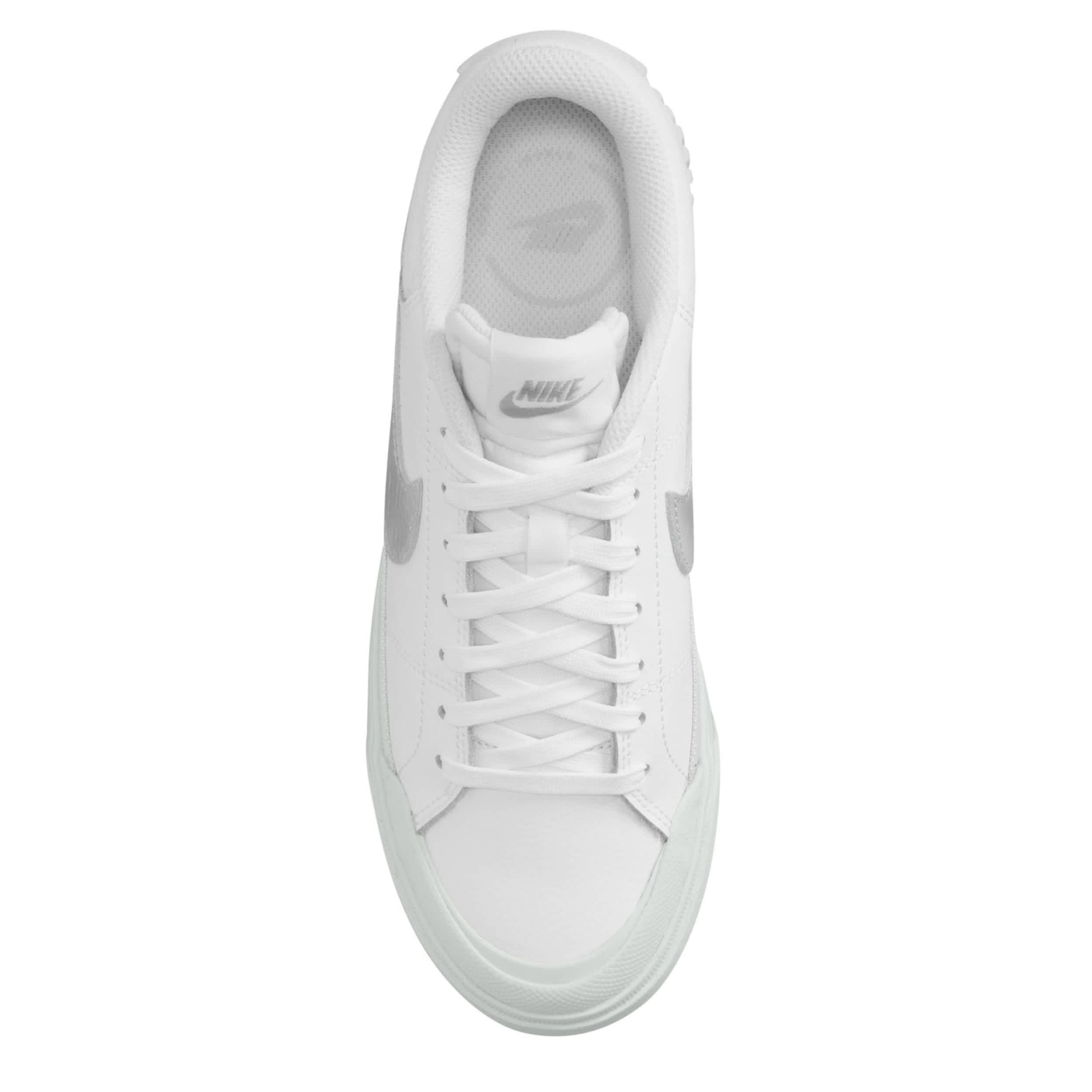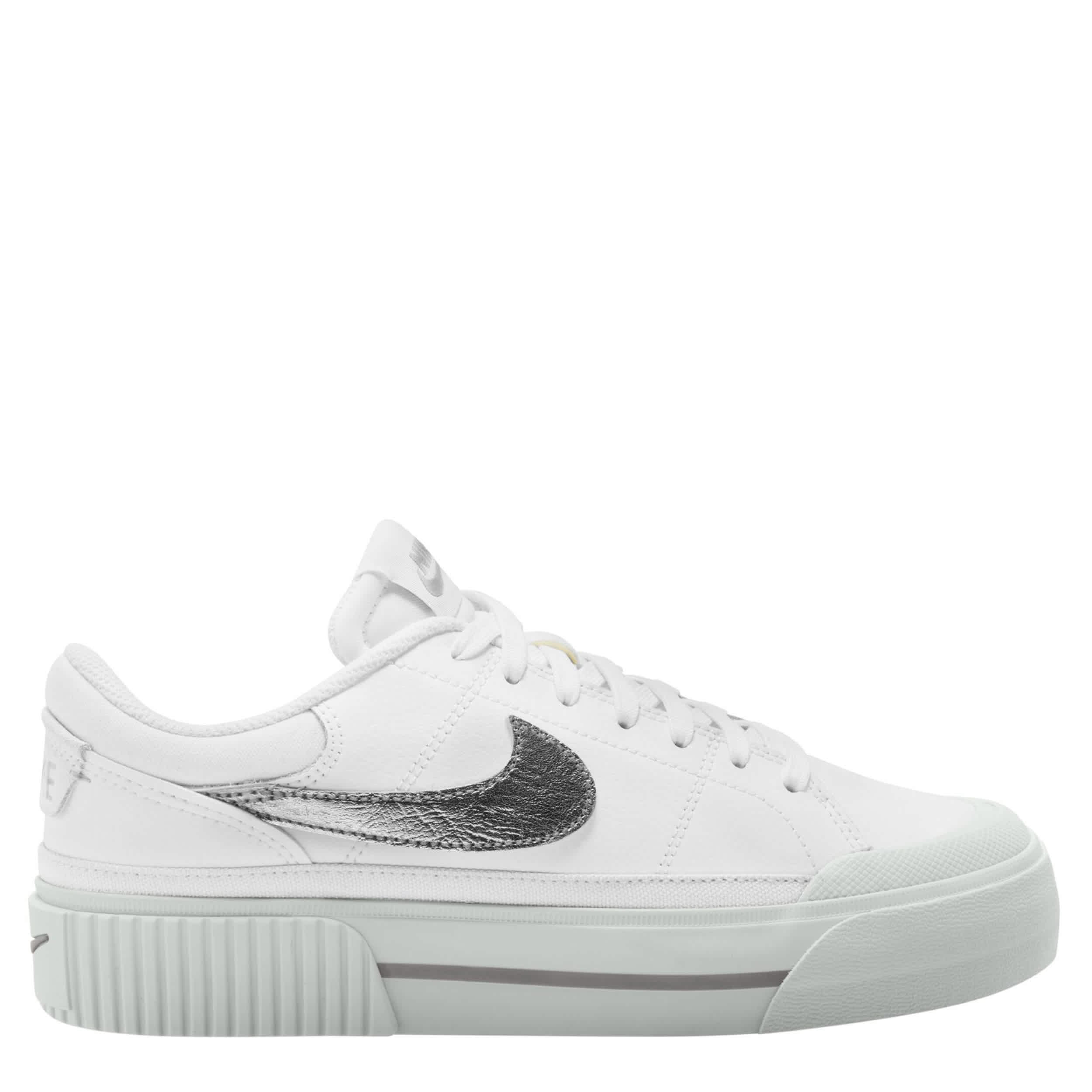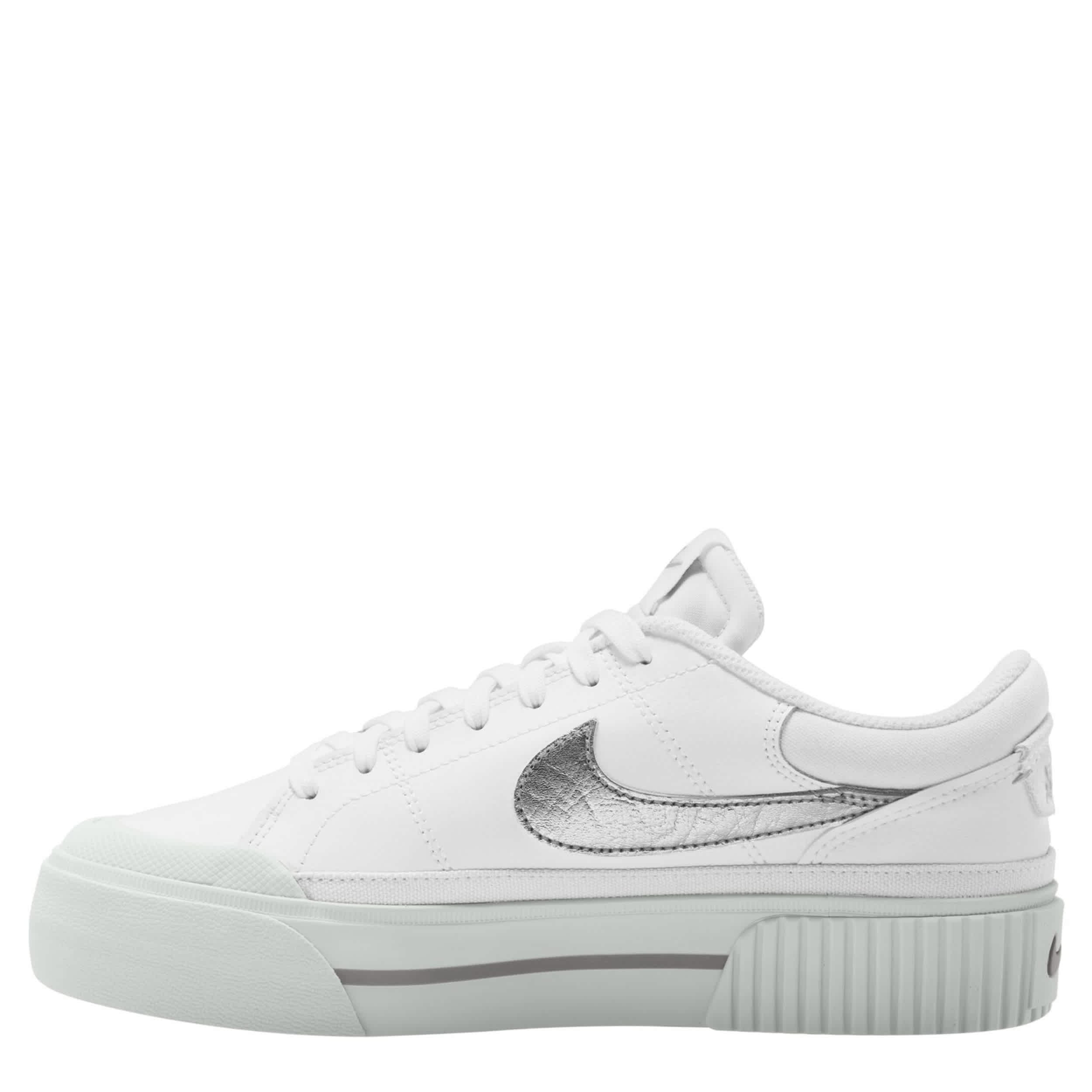 Enhance your footprint in the Nike Court Legacy Lift women's sneaker. With a leather upper featuring a padded collar & tonguefor extra comfort, this lace-up sneaker makes a bold statement with classic style. The platform midsole offers just enough lift, while the rubber outsole holds you down with necessary traction.