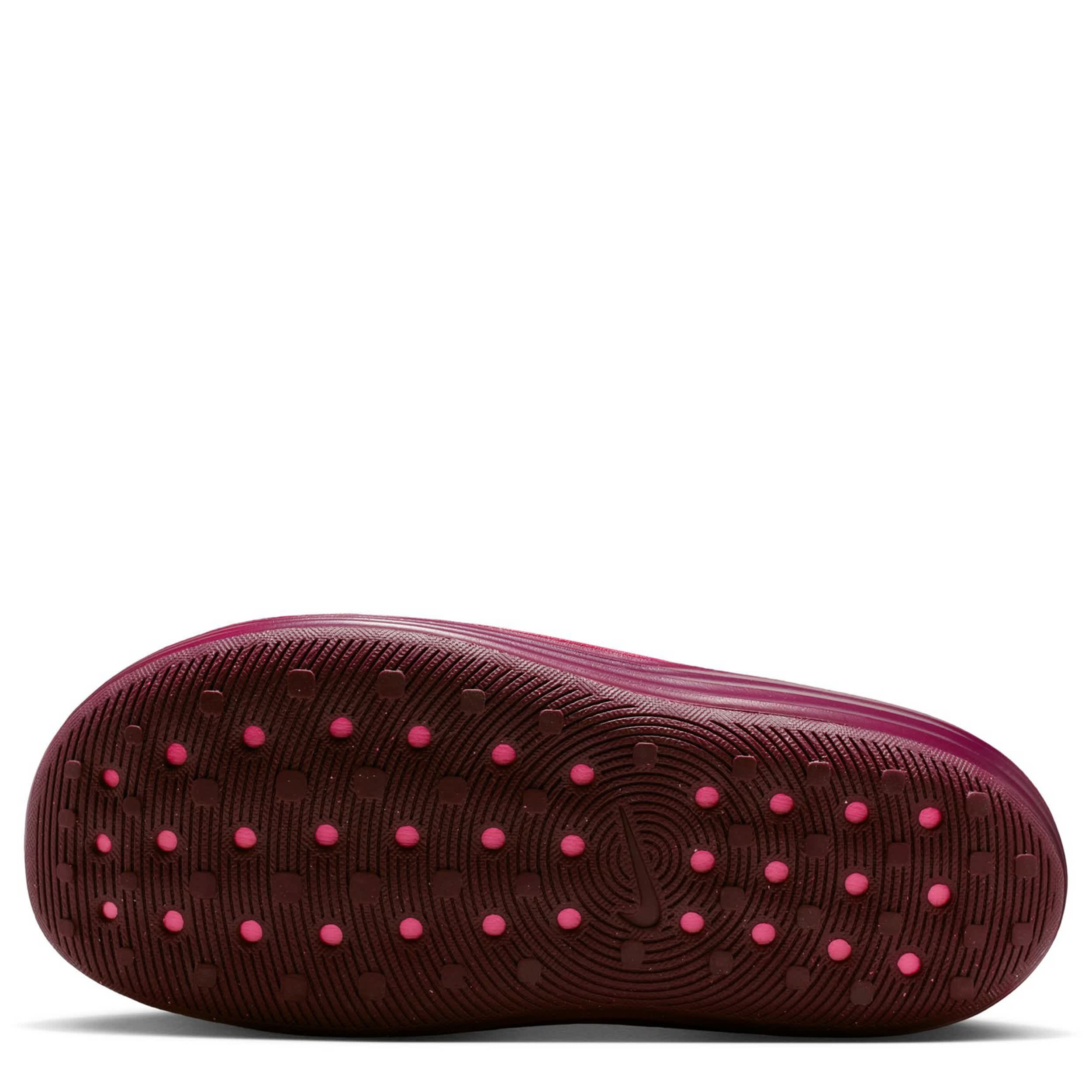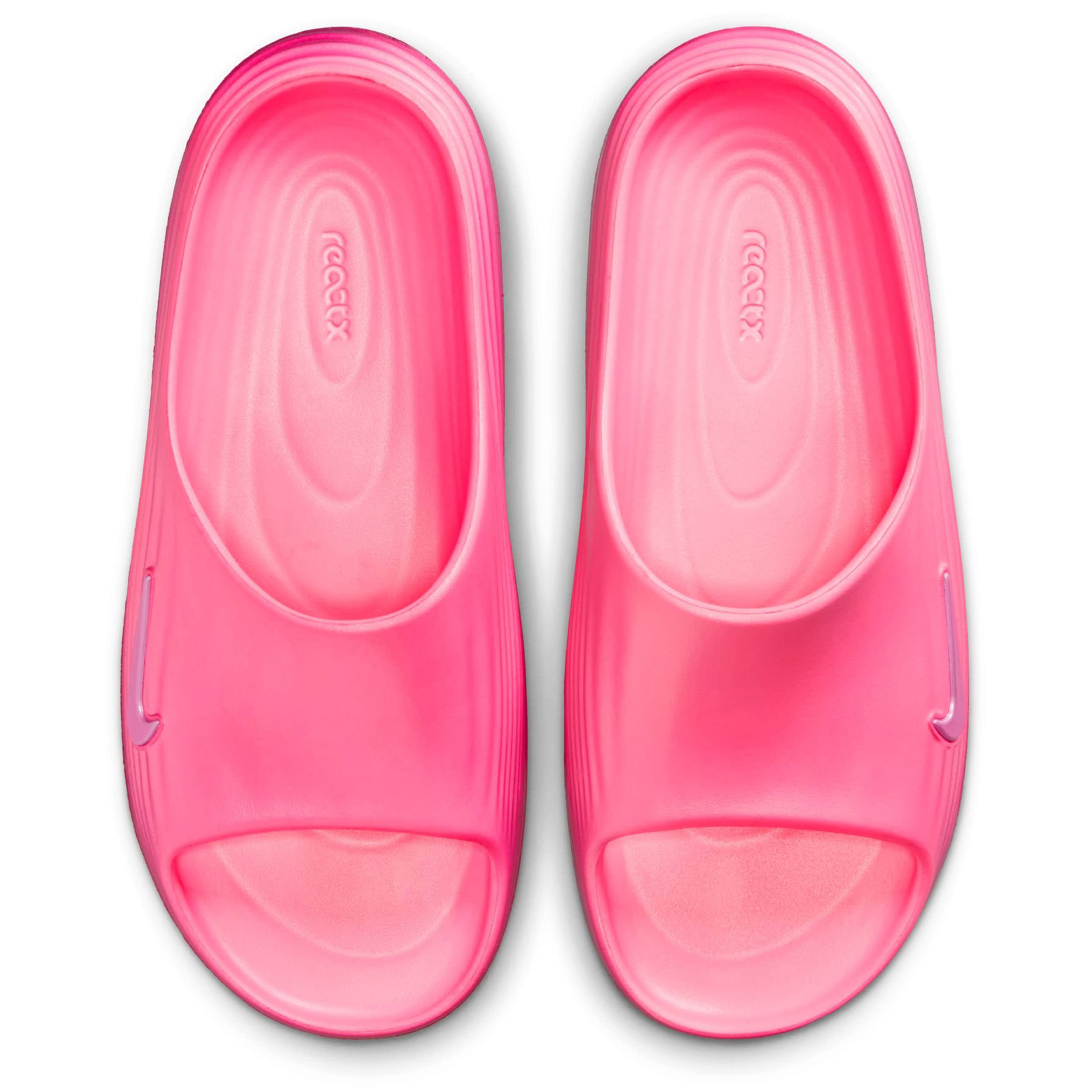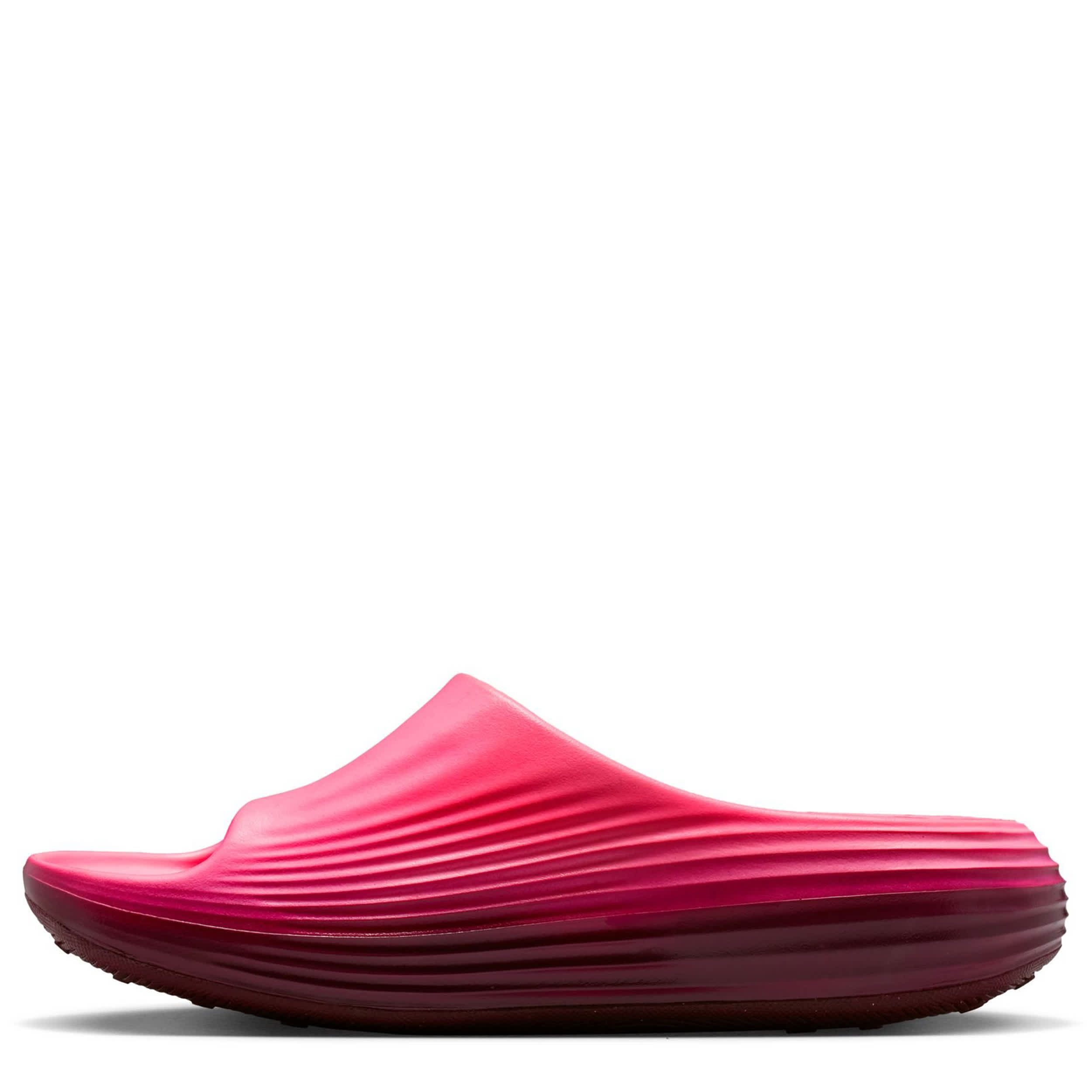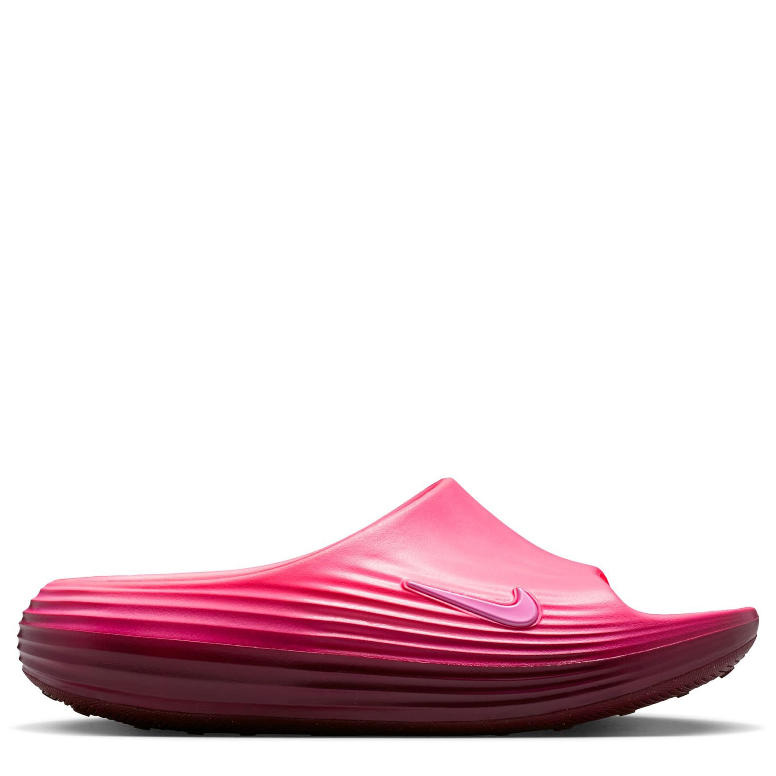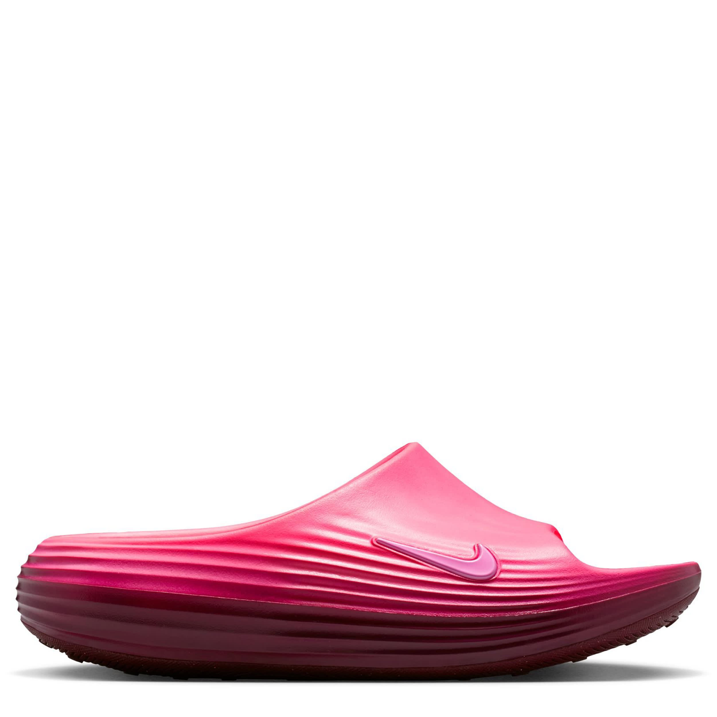 Release some tension in the ReactX Rejuven8 women's slide sandal from Nike. Featuring a soft, responsive upper with extra room in the forefoot to accomodate wider feet, this slide uses innovation to help you recover from your day. As soon as you feel that footbed, your foot knows it can finally rest and the sticky outsole adds grip on slick surfaces.