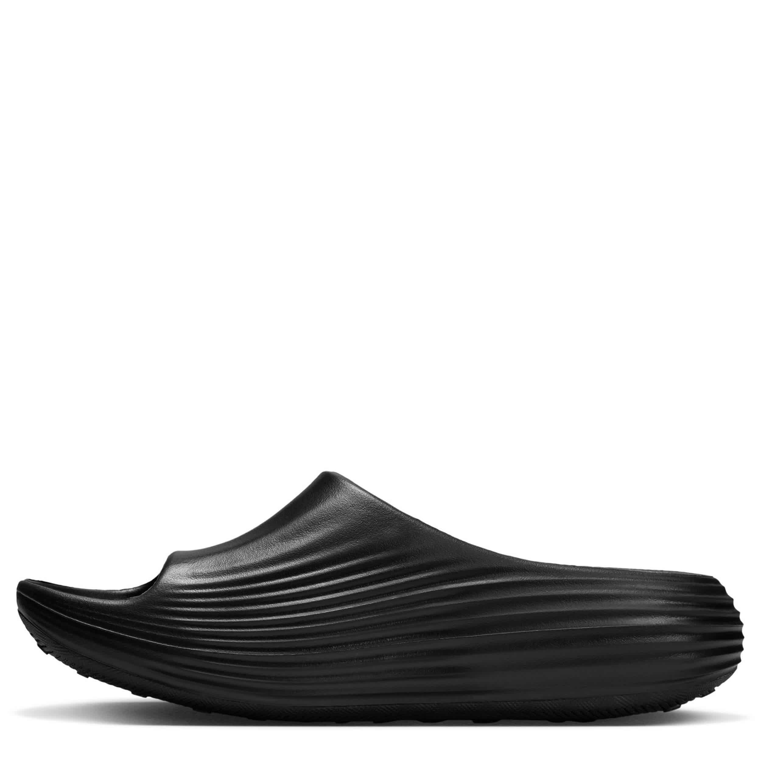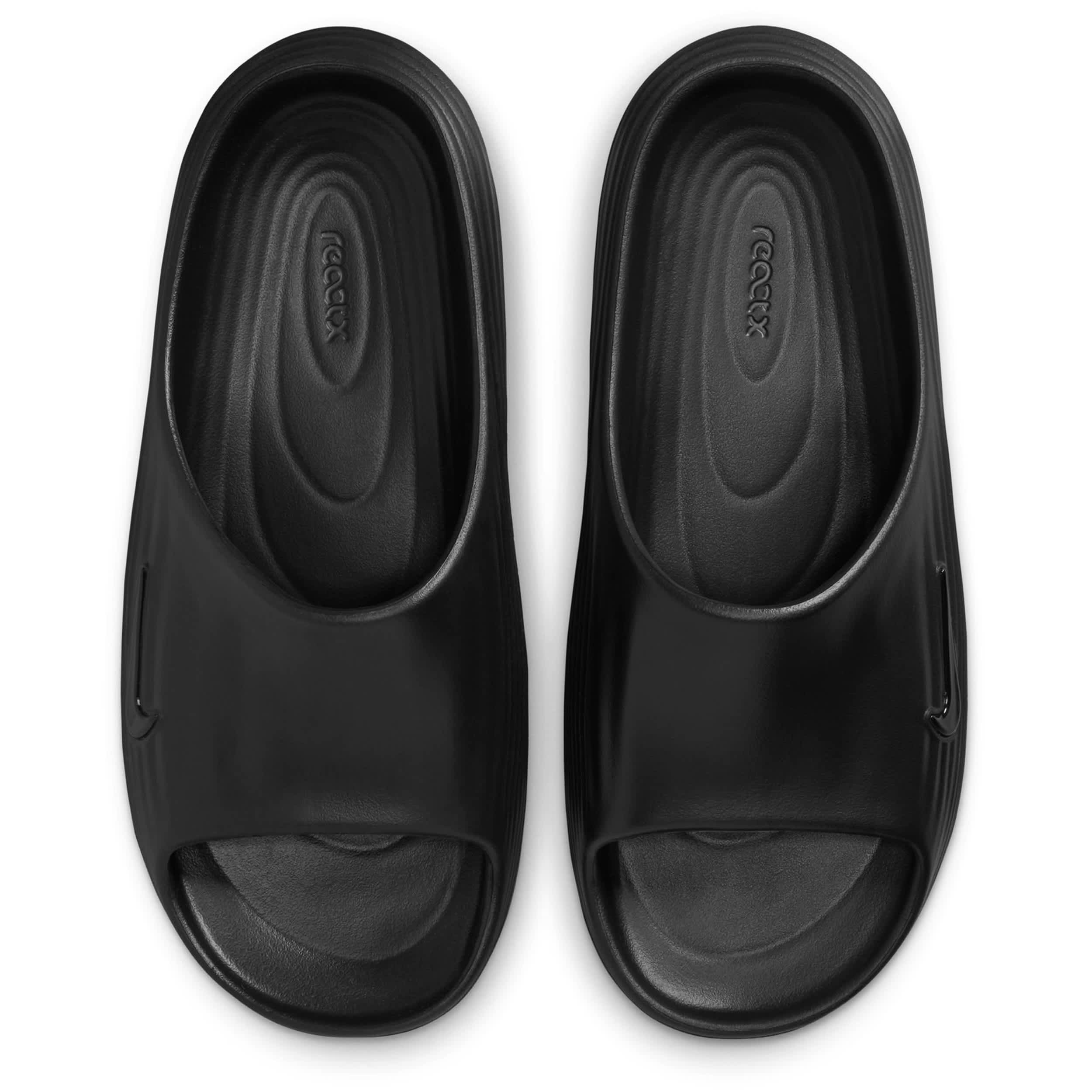 Release some tension in the ReactX Rejuven8 women's slide sandal from Nike. Featuring a soft, responsive upper with extra room in the forefoot to accomodate wider feet, this slide uses innovation to help you recover from your day. As soon as you feel that footbed, your foot knows it can finally rest and the sticky outsole adds grip on slick surfaces.