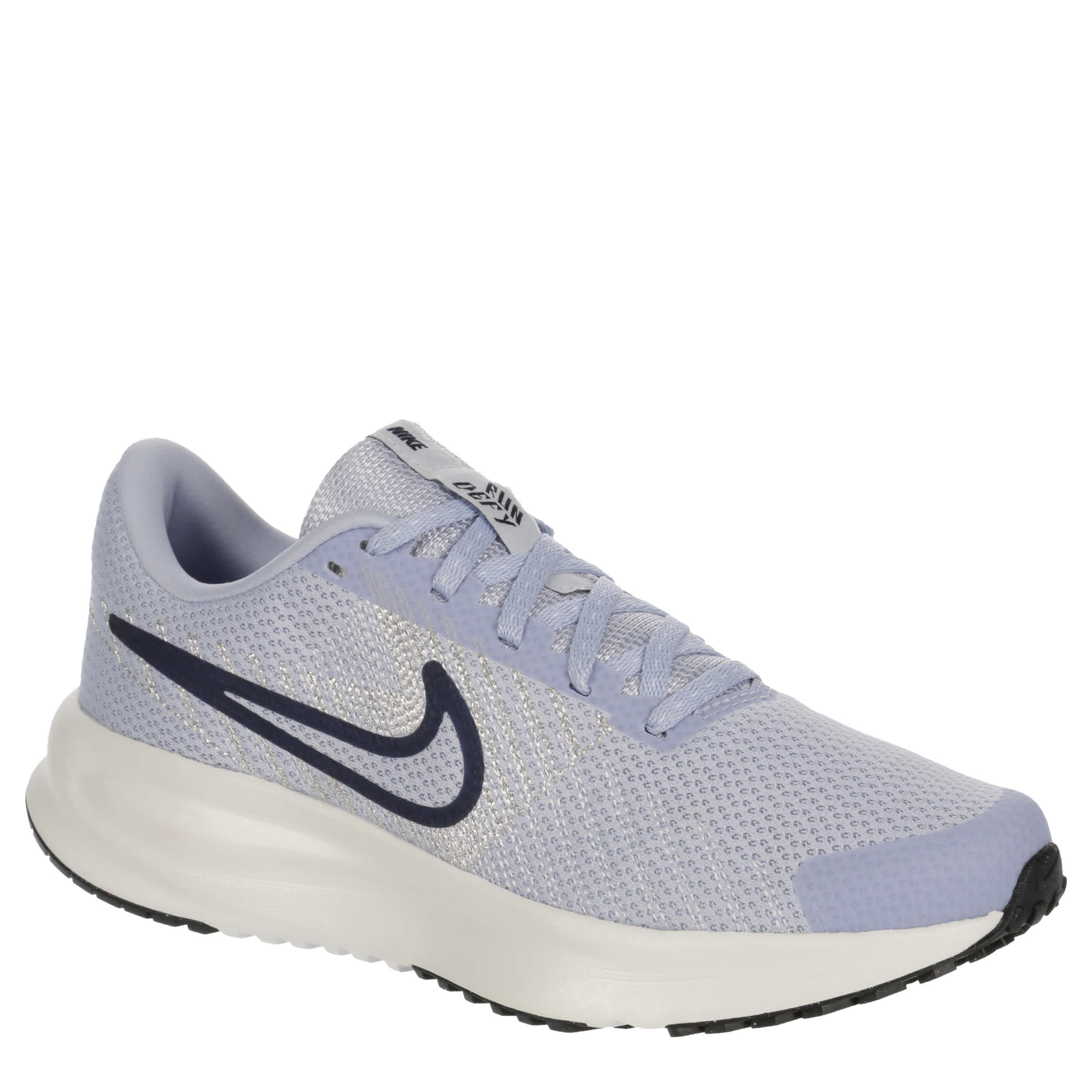 Length and pace can vary in the Nike Run Defy women's running shoe. With a breathable mesh upper featuring flex grooves that cushion, this sneaker also has a padded collar & tongue for extra comfort. The midsole softens the impact, while the Waffle outsole adds durability and flexibility.