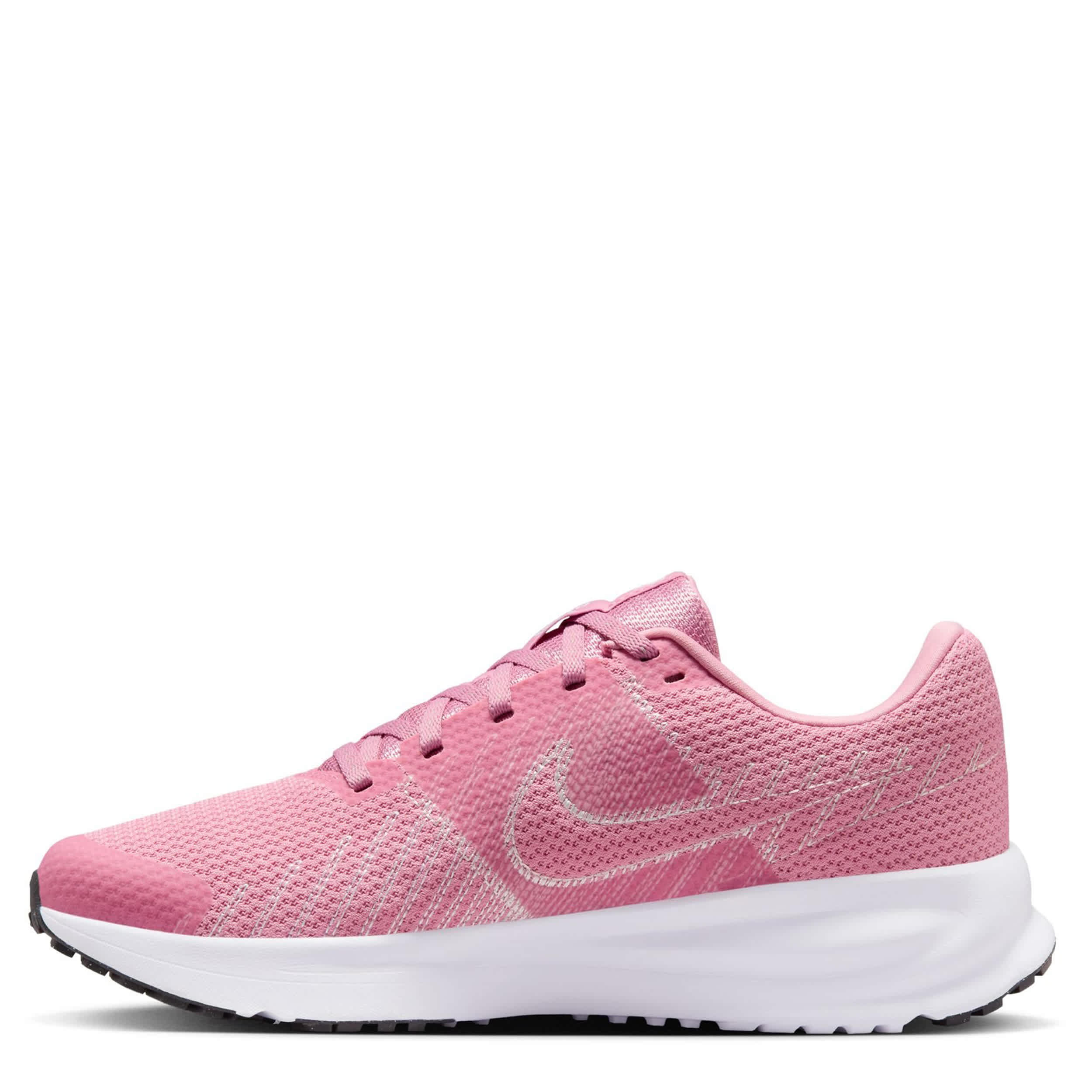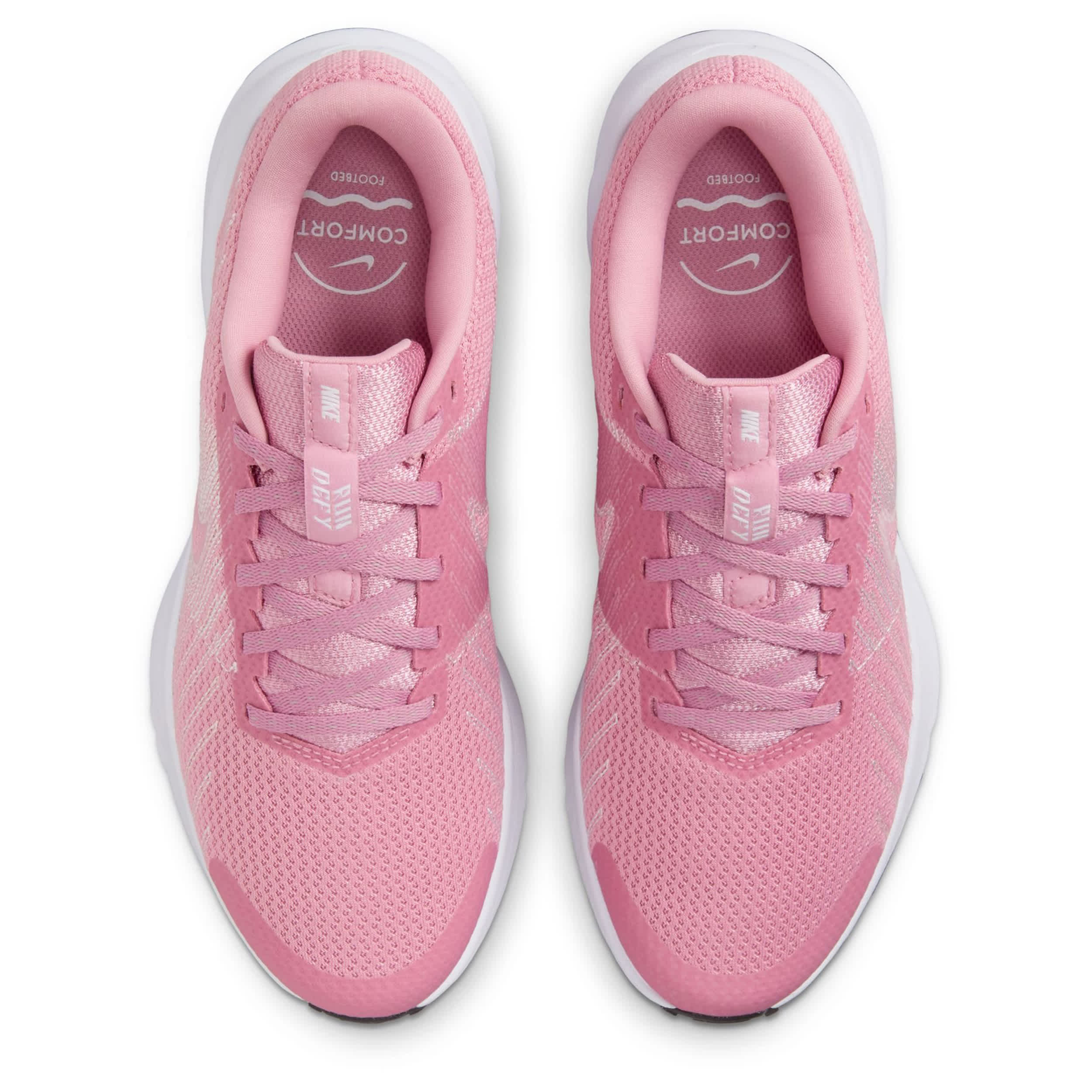 Length and pace can vary in the Nike Run Defy women's running shoe. With a breathable mesh upper featuring flex grooves that cushion, this sneaker also has a padded collar & tongue for extra comfort. The midsole softens the impact, while the Waffle outsole adds durability and flexibility.