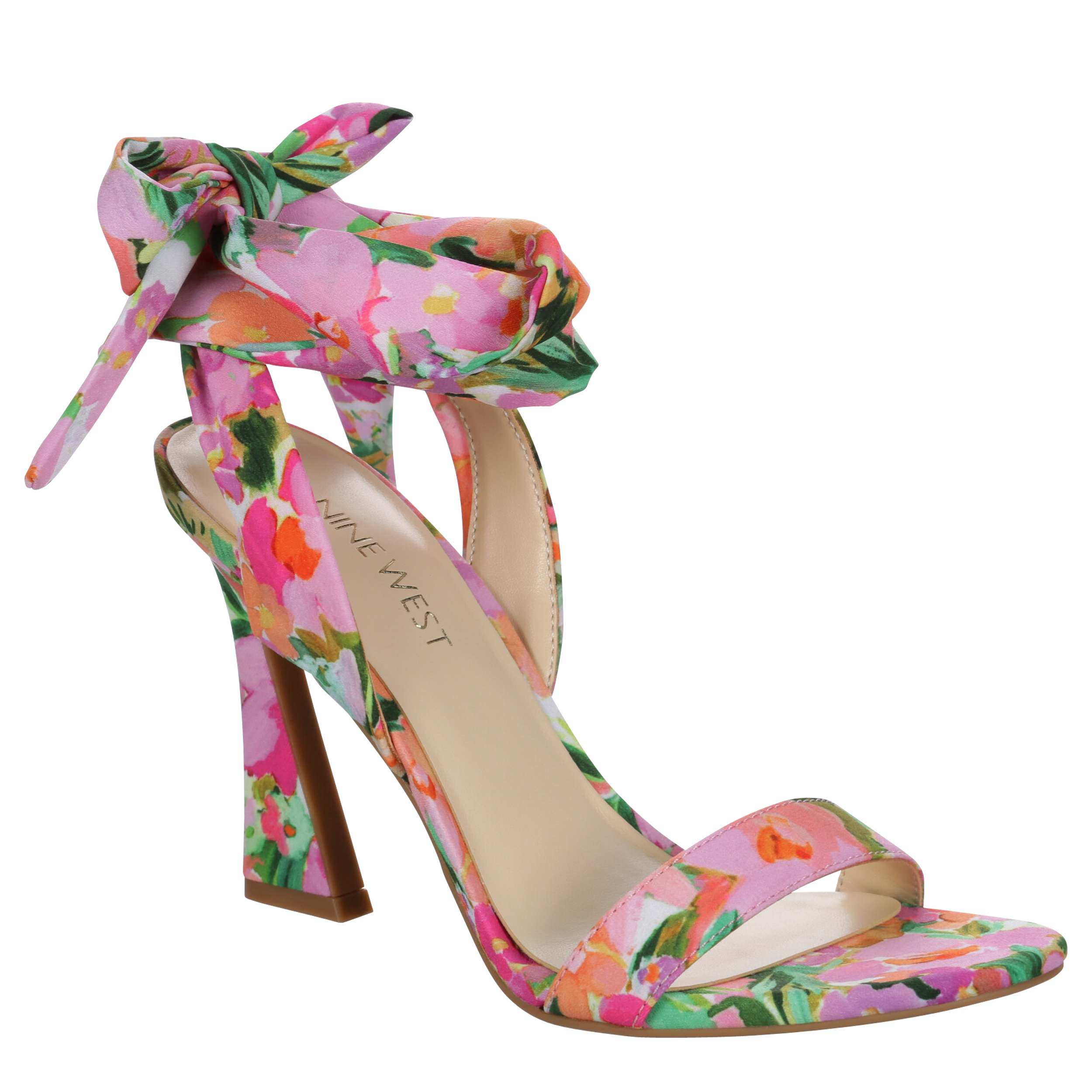 Accent your summer outfit with the Nine West Kobs pump. Featuring a fabric upper with a fun floral print, this shoe has ankle wrap laces for a chic, unique look. The padded insole soothes your foot, and the flared heel gives a significant lift.