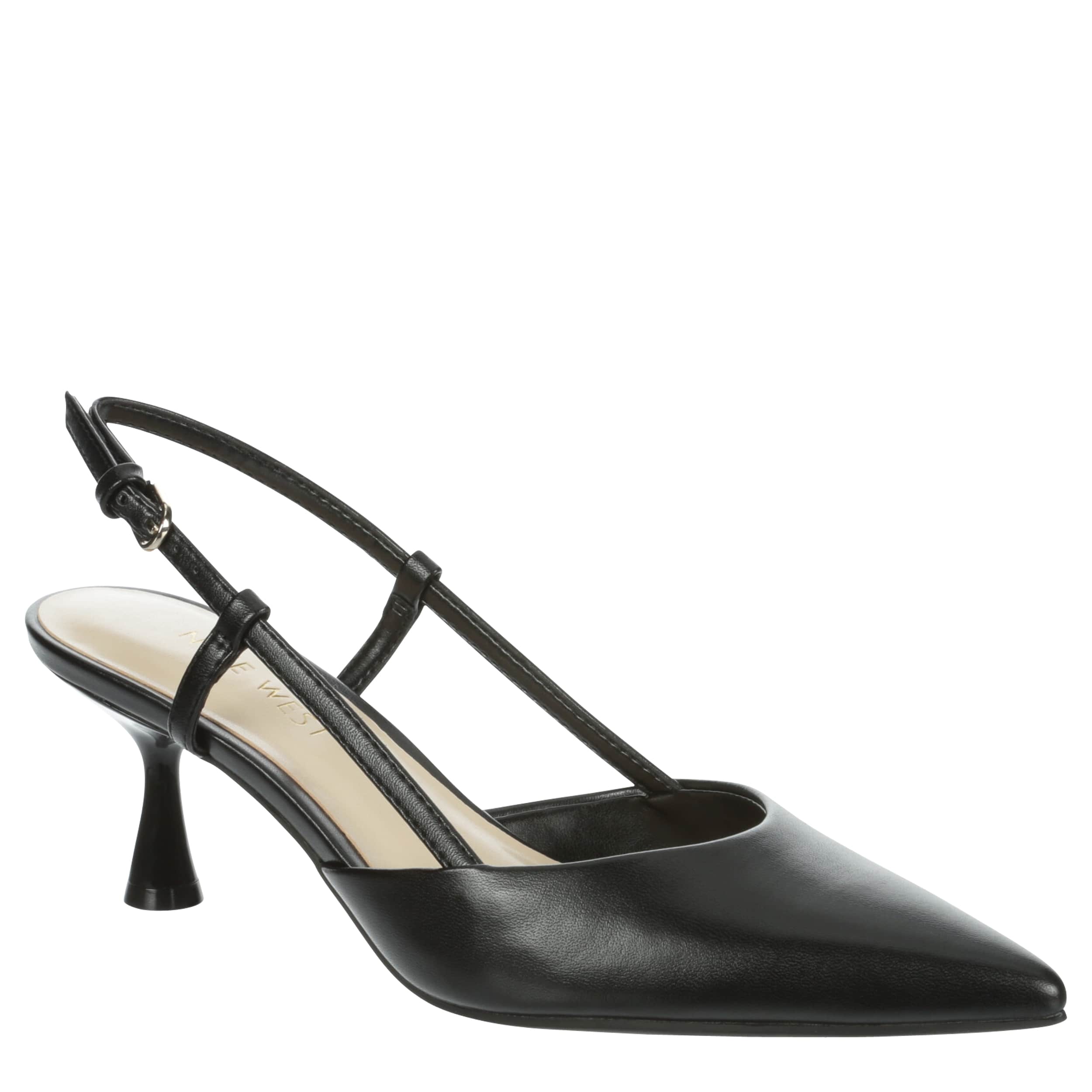 Show your sophistication in the chic Rowen Slingback heel from Nine West. Featuring a faux leather upper with a sleek pointed toe for extra style, this slingback is a wardrobe staple. The footbed soothes your foot, while the flared heel adds stable lift.
