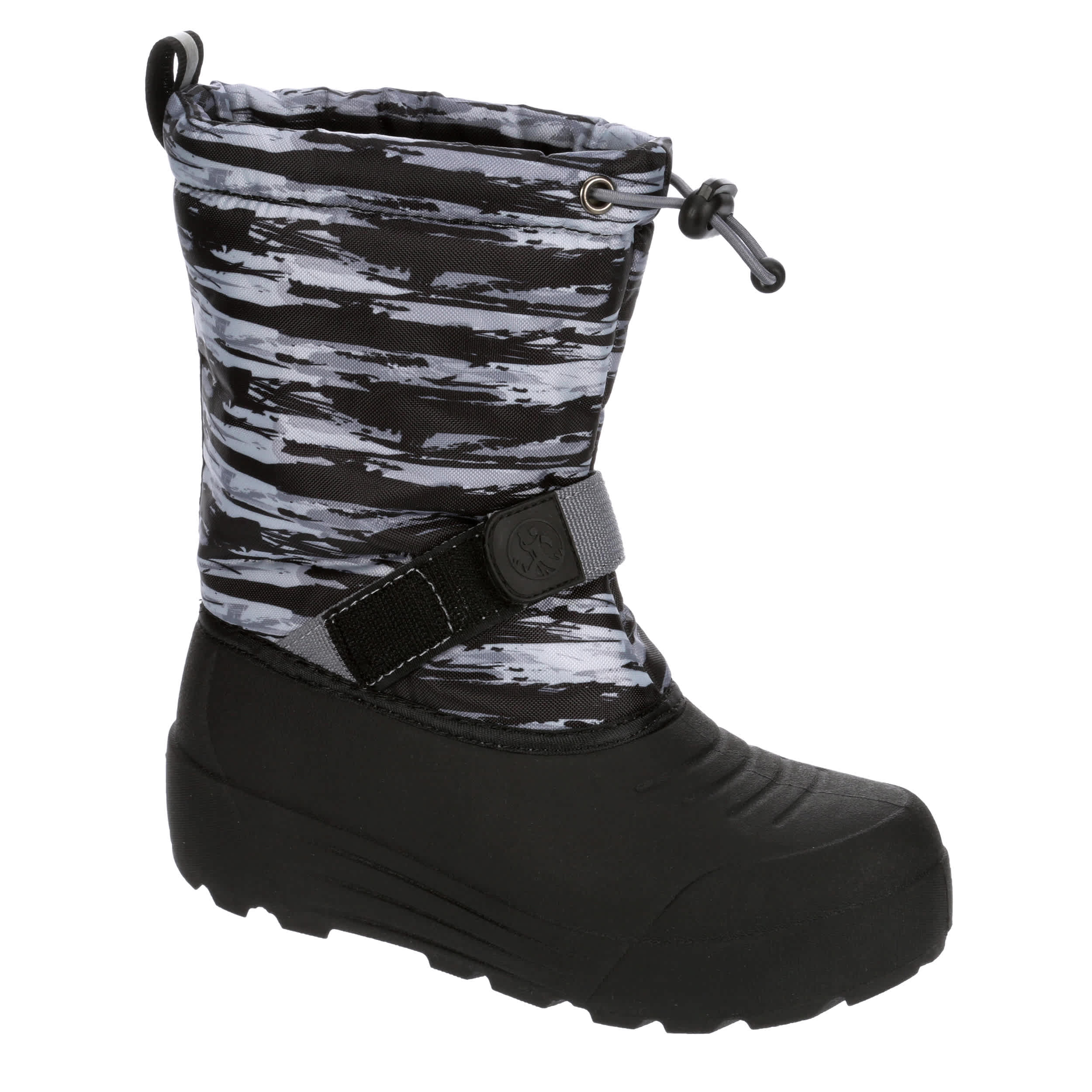He can beat boring style while beating the chill, in the Northside Frosty boys' snow boot. With a waterproof nylon upper and design overlays on the shaft, this pull-on snow boot offers warmth in the coldest temperatures. The rubber outsole is slip resistant on treacherous surfaces.