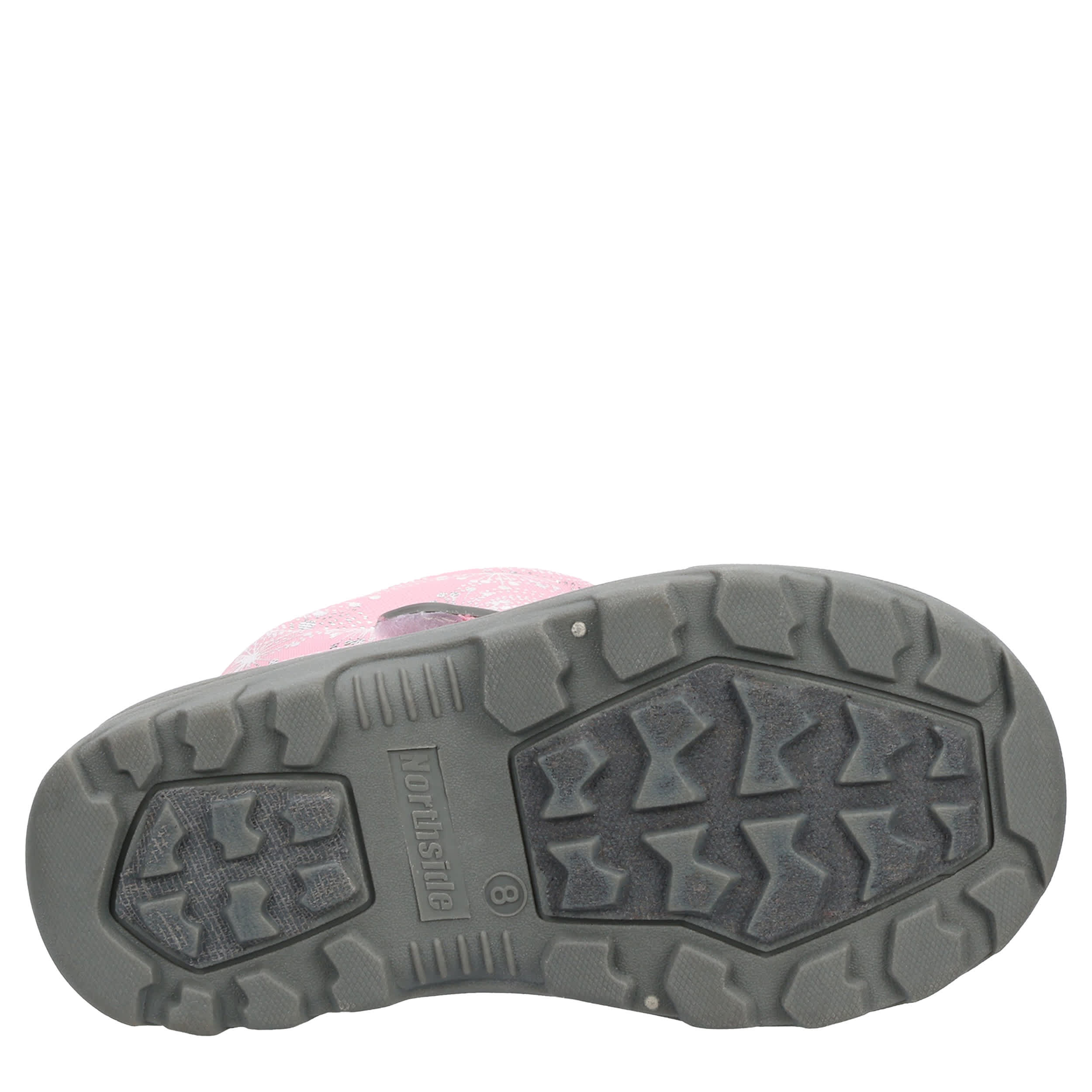 Let her play in the Northside Frosty infant girls' snow boot. Featuring a waterproof nylon & synthetic upper with 200g Thinsulate & padded berber lining, she'll stay warm and dry with an adjustable collar to keep out debris. The cushioned insole is washable while the lightweight outsole offers multi-directional traction and abrasion resistance.