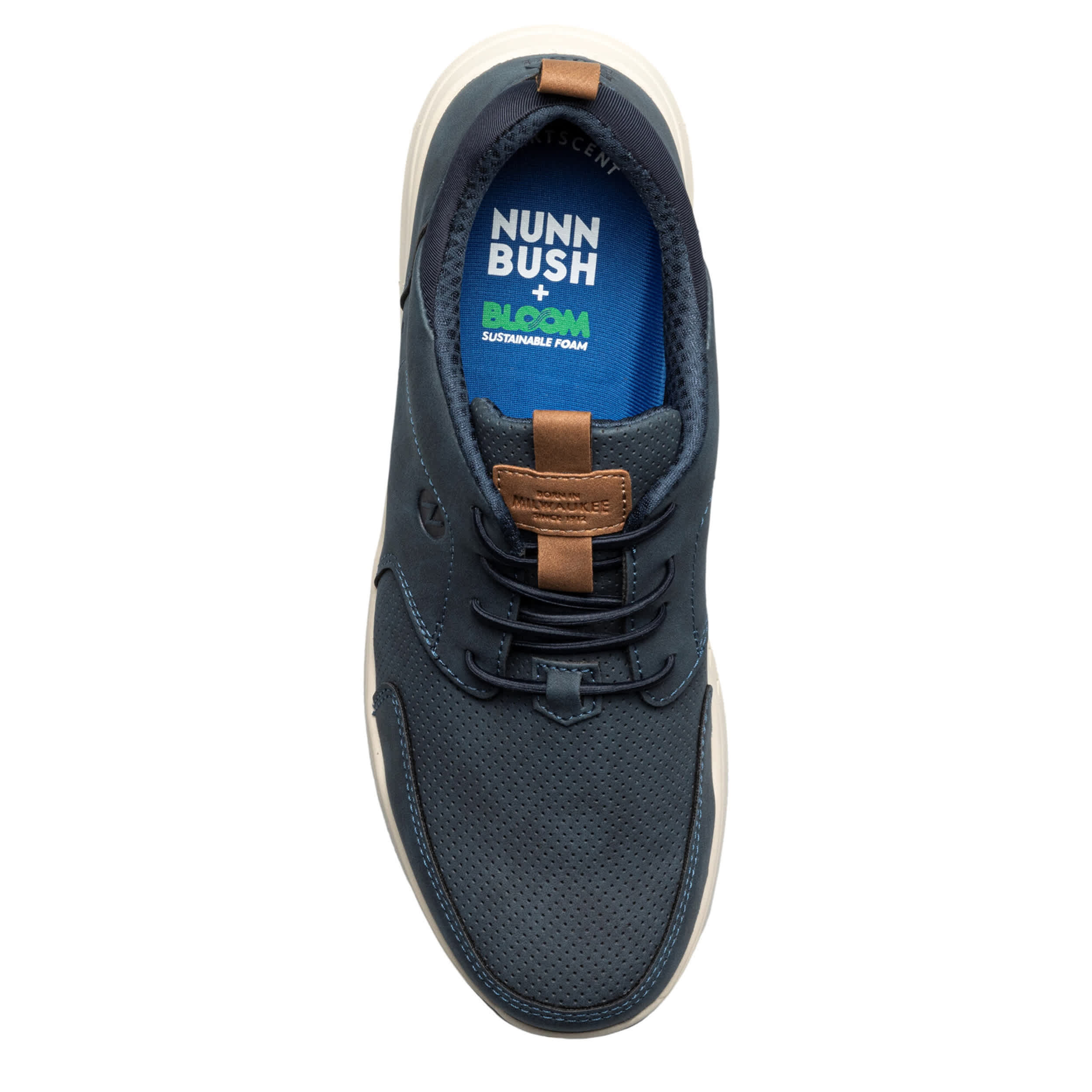 Dress up or down with the Nunn Bush Conway sneaker. Featuring a faux leather upper with padded mesh linings, this slip-on shoe also has dual pull tabs for easy entry. The footbed contains BLOOM algae-based foam and Smartscent technology for a comfy, odor-free experience, and the lightweight sole is non-marking.