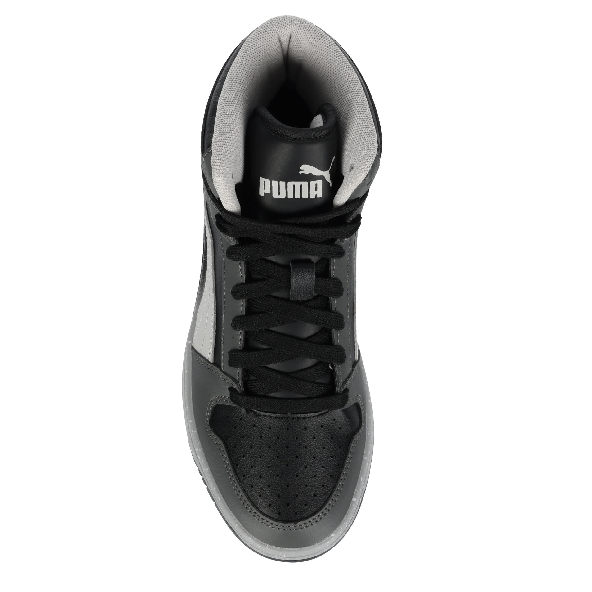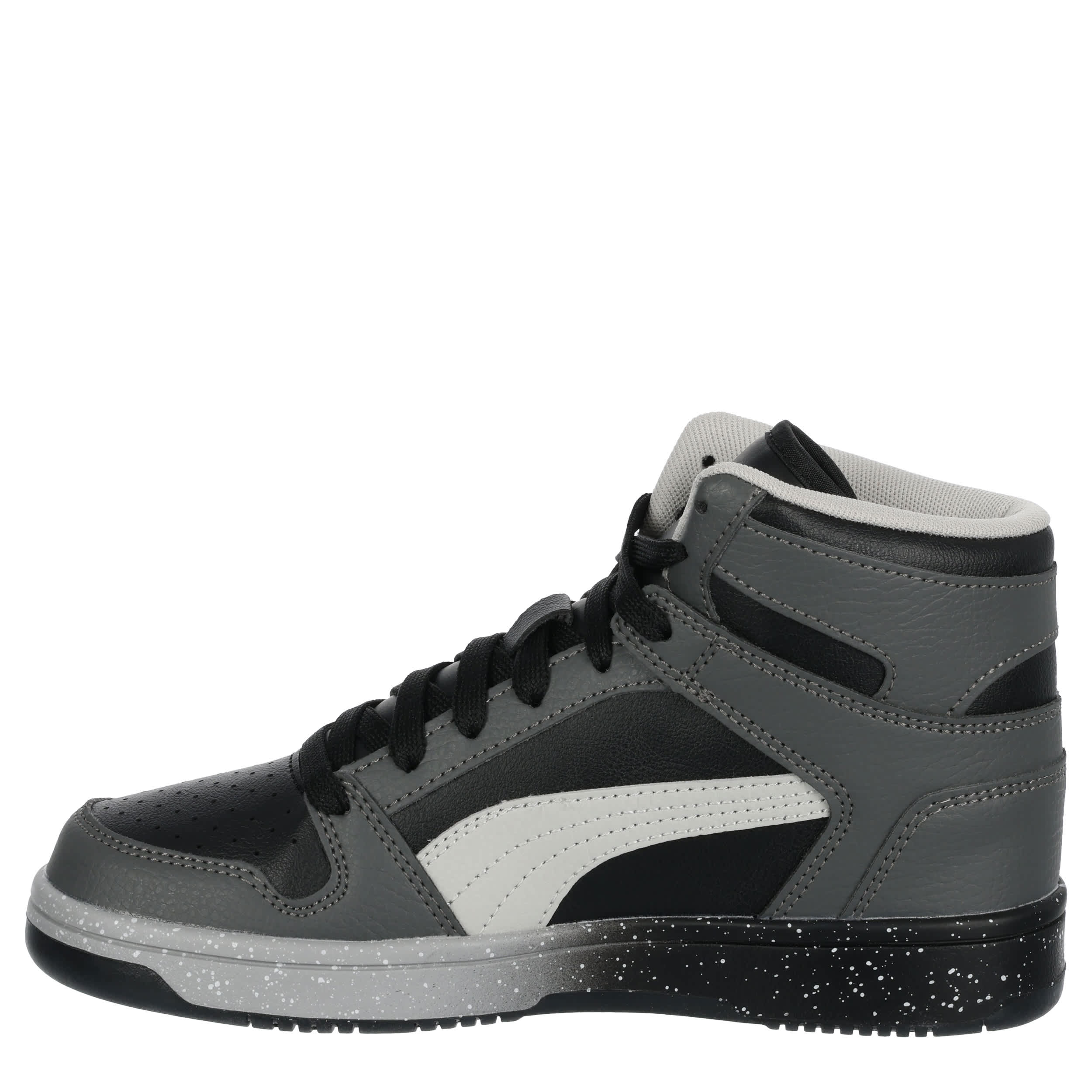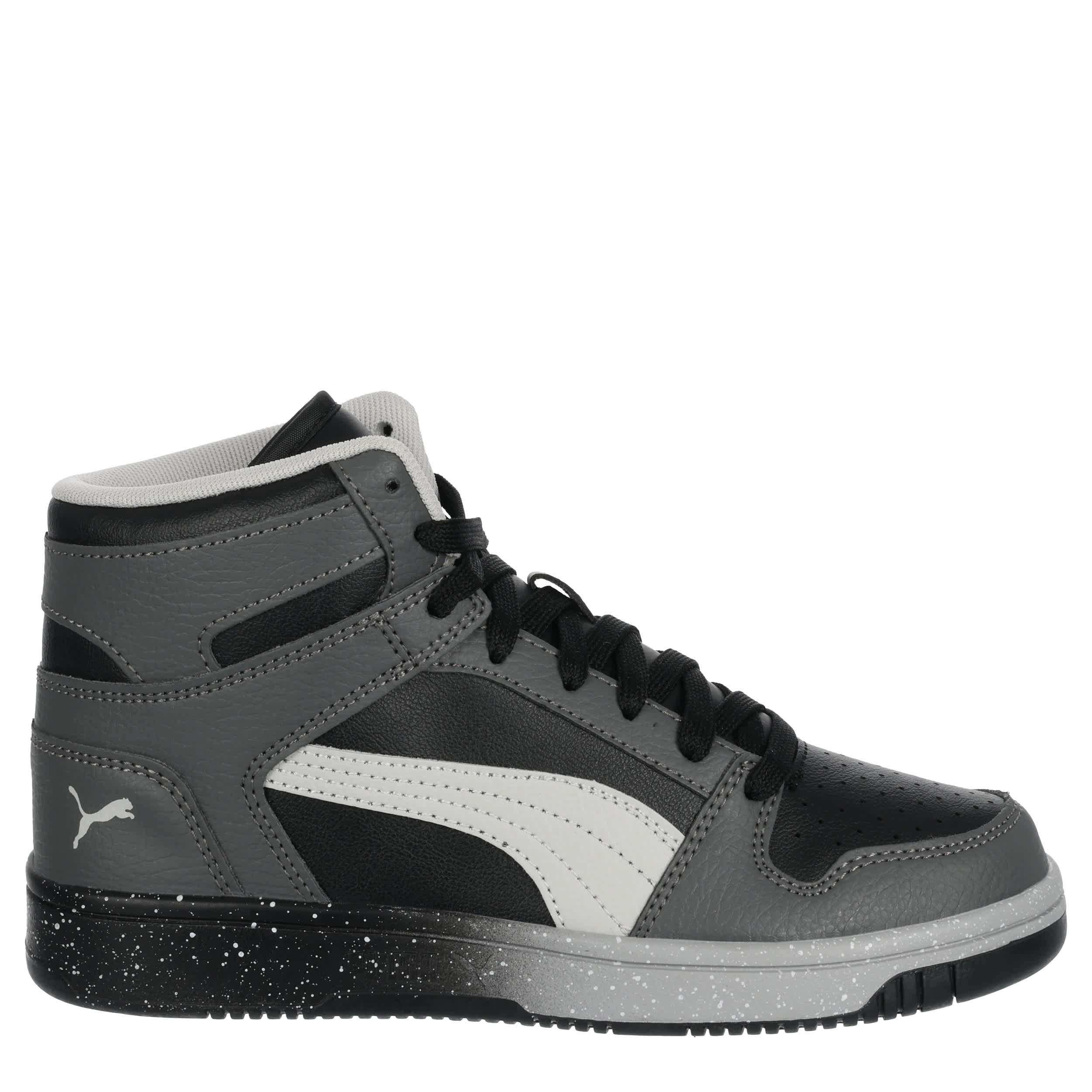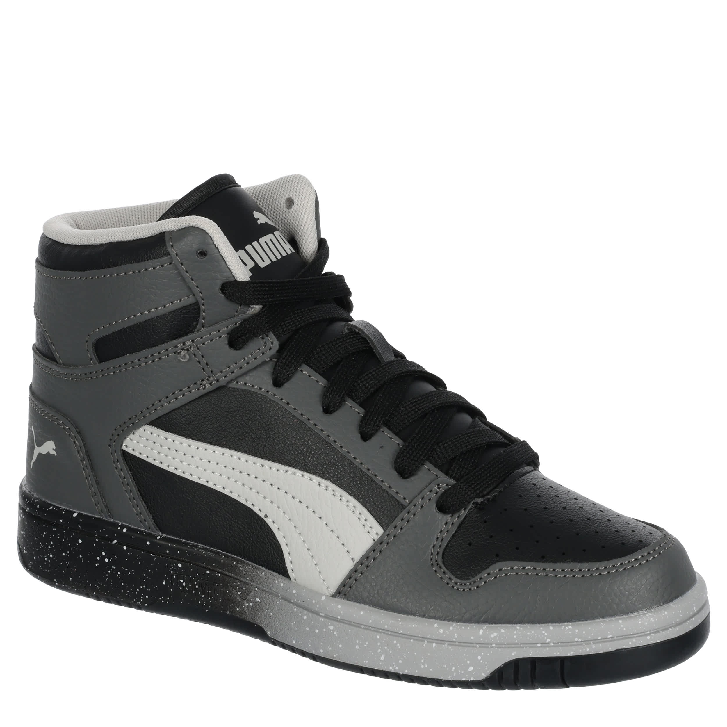 He can meet the challenges of school in the PUMA Rebound LayUp Speckle Fade boys' sneaker. With a faux leather upper featuring a padded collar for comfort, this lace-up shoe looks great with a school uniform or casual. The SoftFoam+ footbed cushions his feet, while the speckled, ombre midsole adds a cool effect.