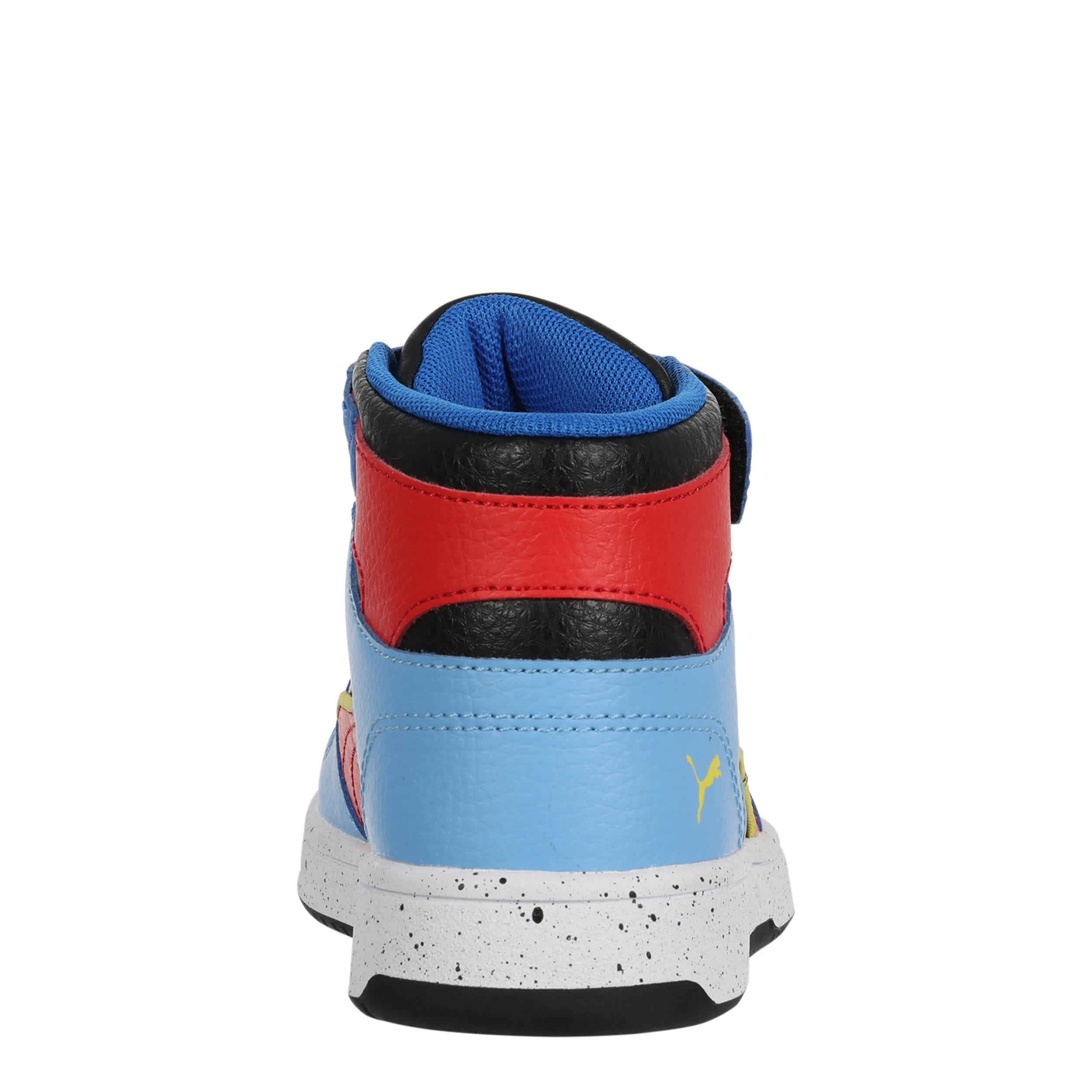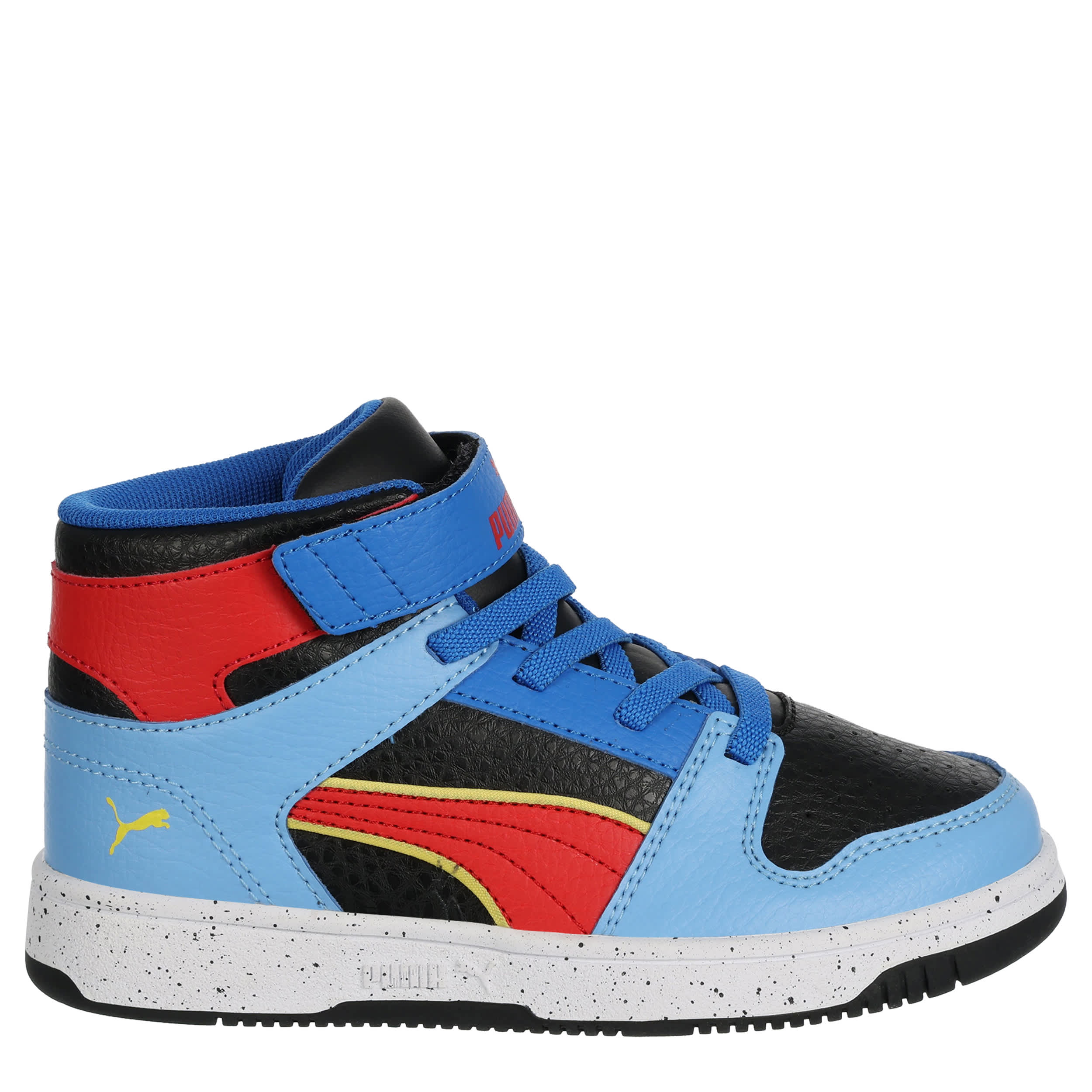 Teach him the game in the PUMA Rebound Layup Elevated sneaker. With a colorblock faux leather upper featuring textured pattern for extra style, this shoe also has a comfy padded collar & tongue. The SoftFoam+ sockliner cushions every step, while the non-marking rubber outsole provides outstanding traction on and off the court.