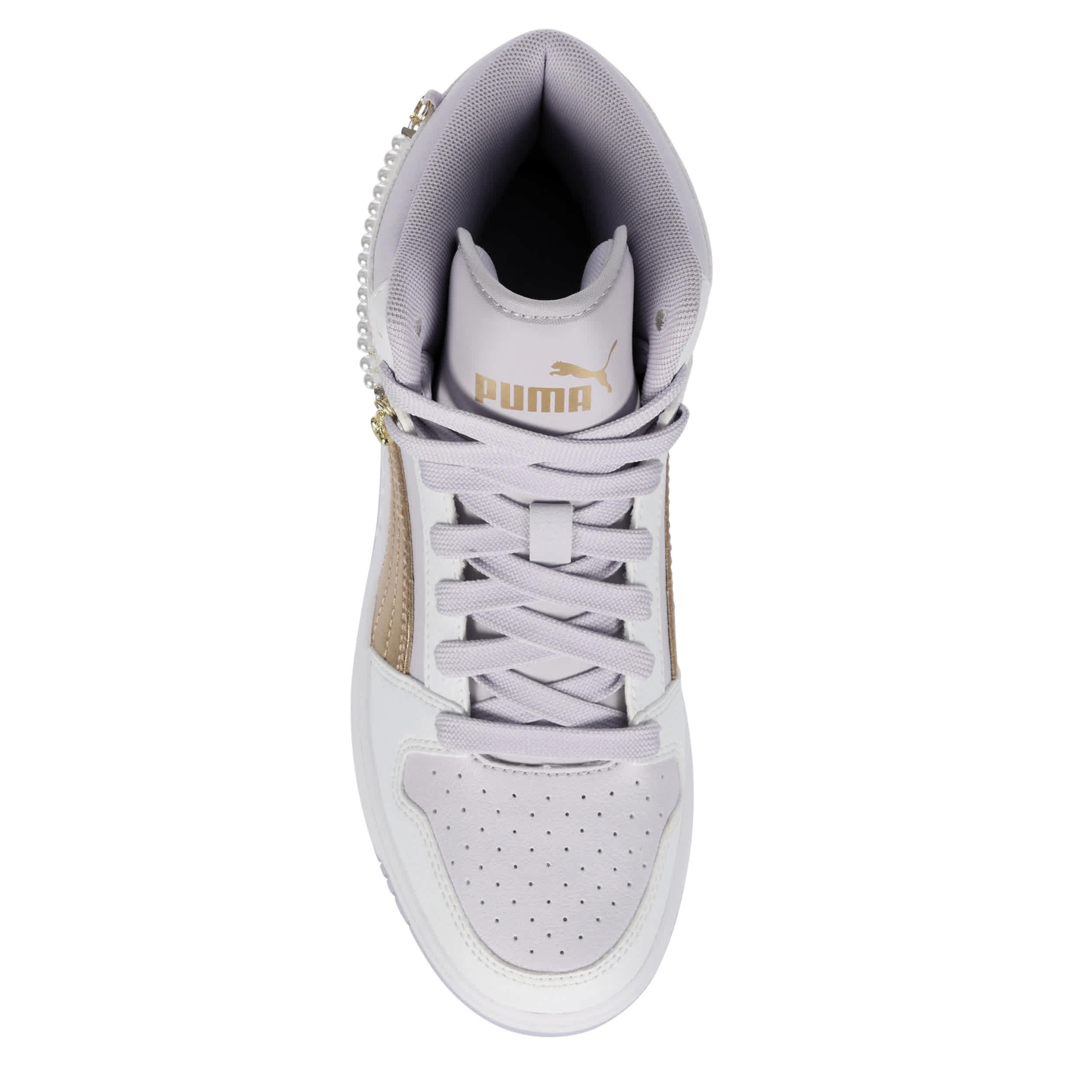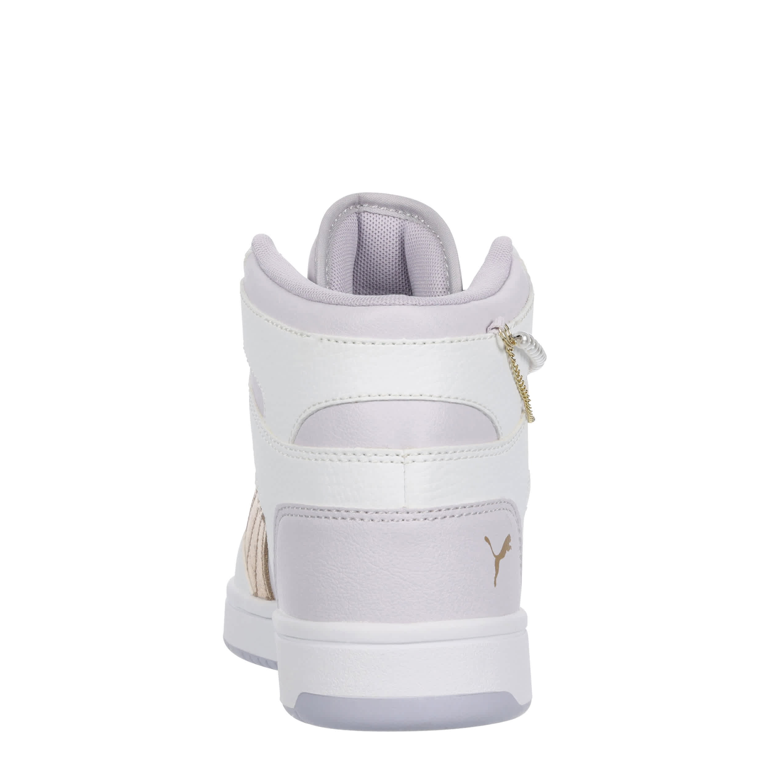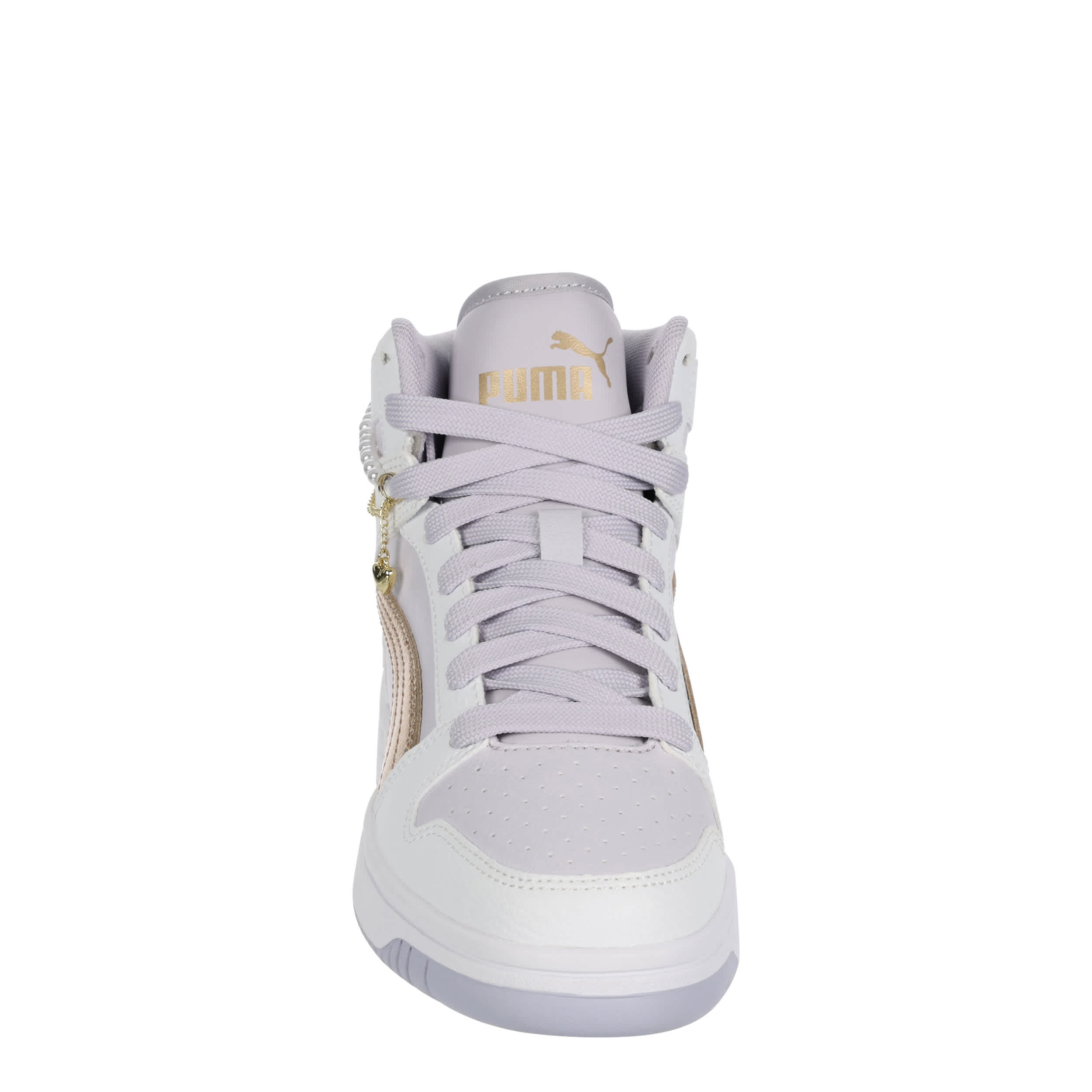 Get a look worth bragging about with the Rebound LayUp Bling Heart girls' sneaker by PUMA. With a faux leather upper featuring beaded pearl & dangle heart lace chains as well as a padded collar & tongue for comfort, this shoe also has the classic PUMA Formstrip. The SoftFoam+ sockliner cushions her foot, while the gum outsole provides exceptional grip.