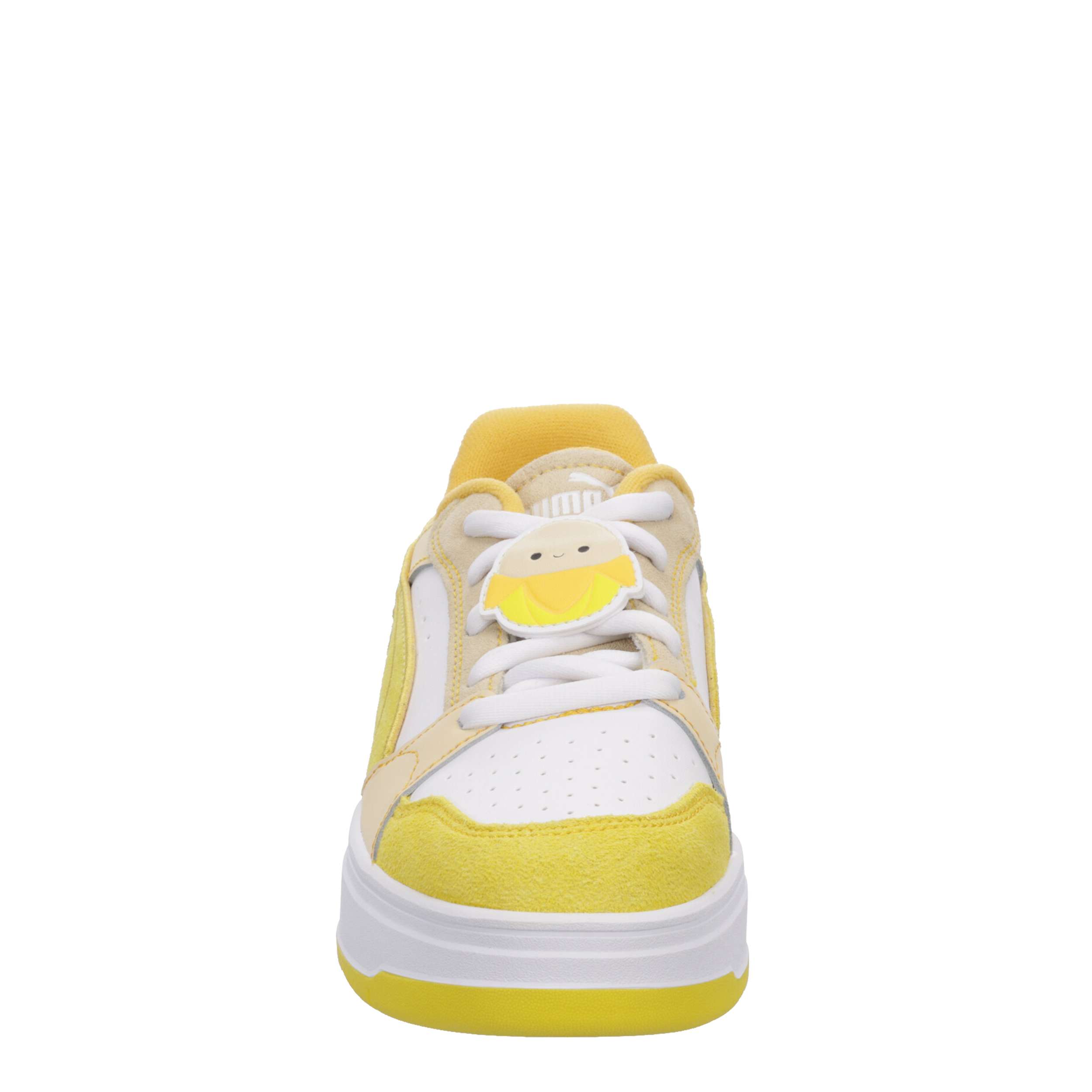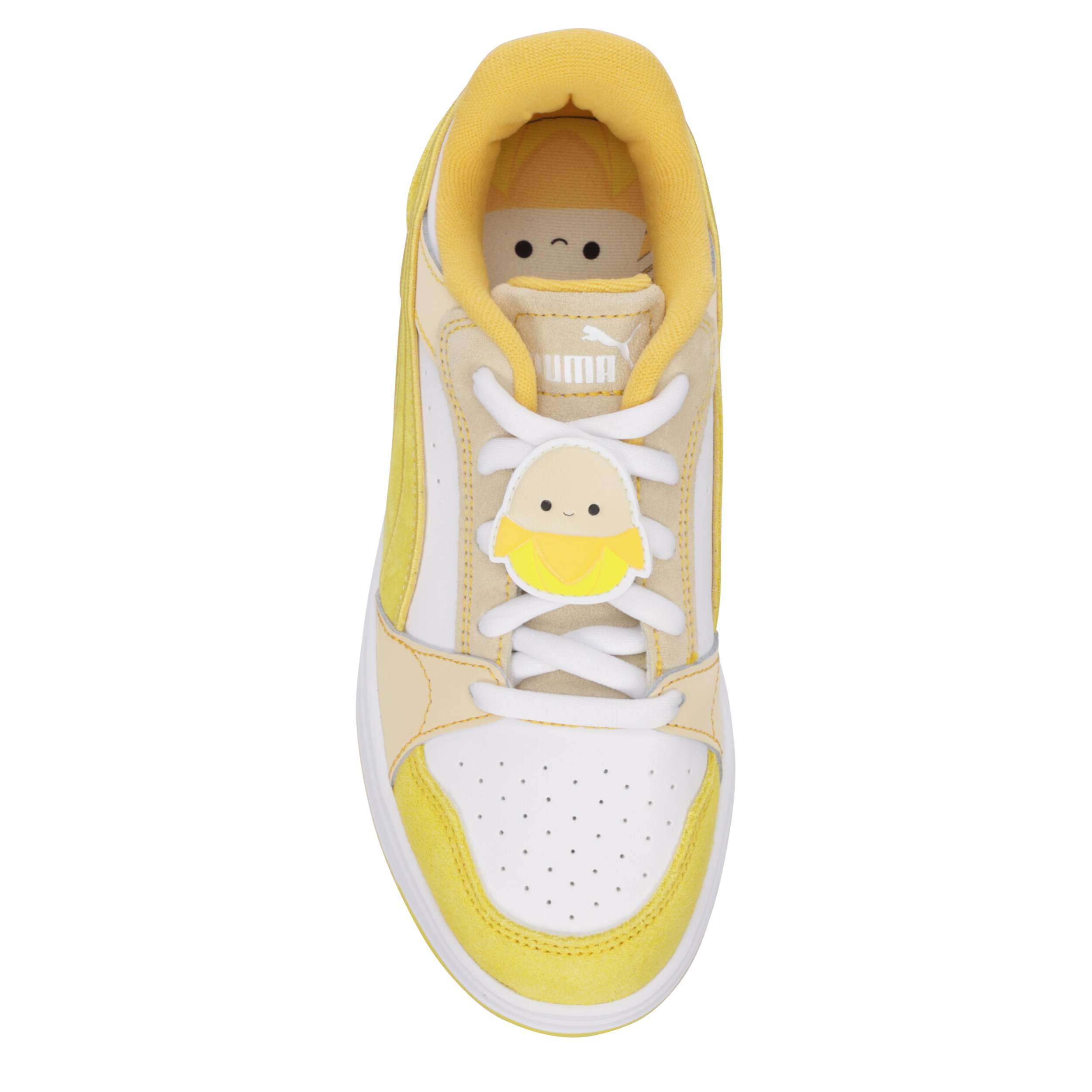 Squishmallows and PUMA are back once again to bring you the world's most ultrasoft-inspired collab. Ever laugh so hard your sides split? Then you know how Junie feels. Here, she gets her own pair of the Rebound Femme in multiple shades of banana yellow, and a custom Junie lace charm right on top.