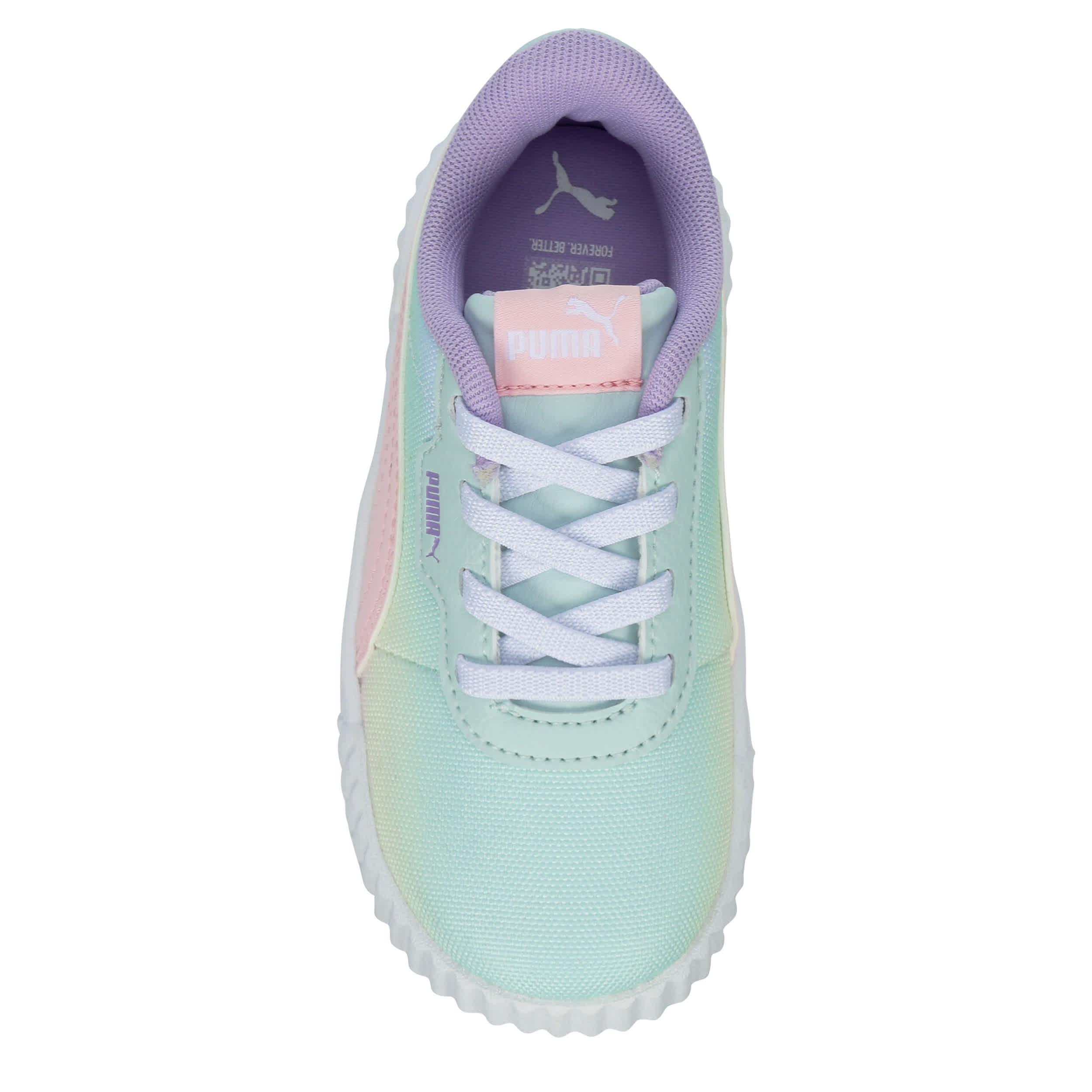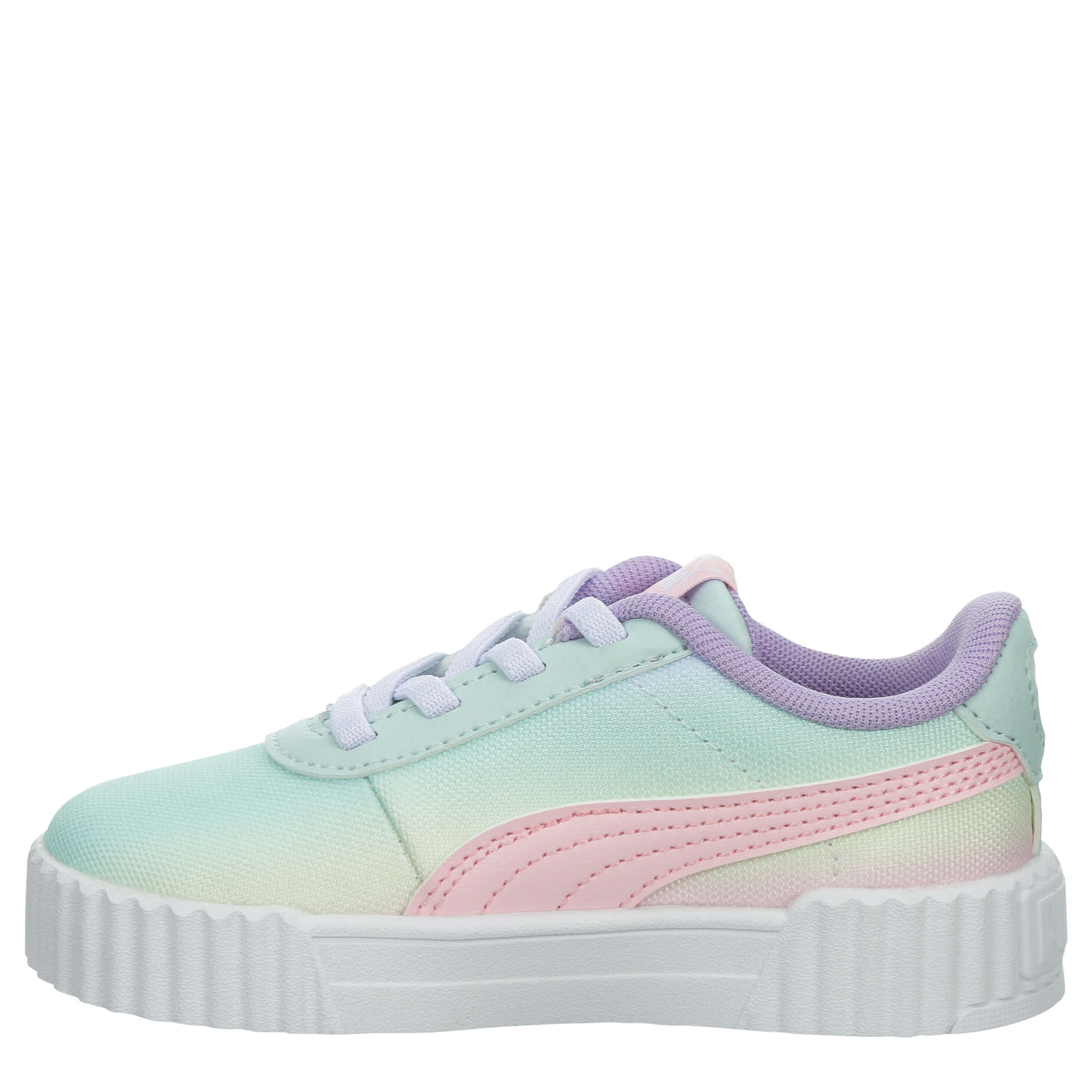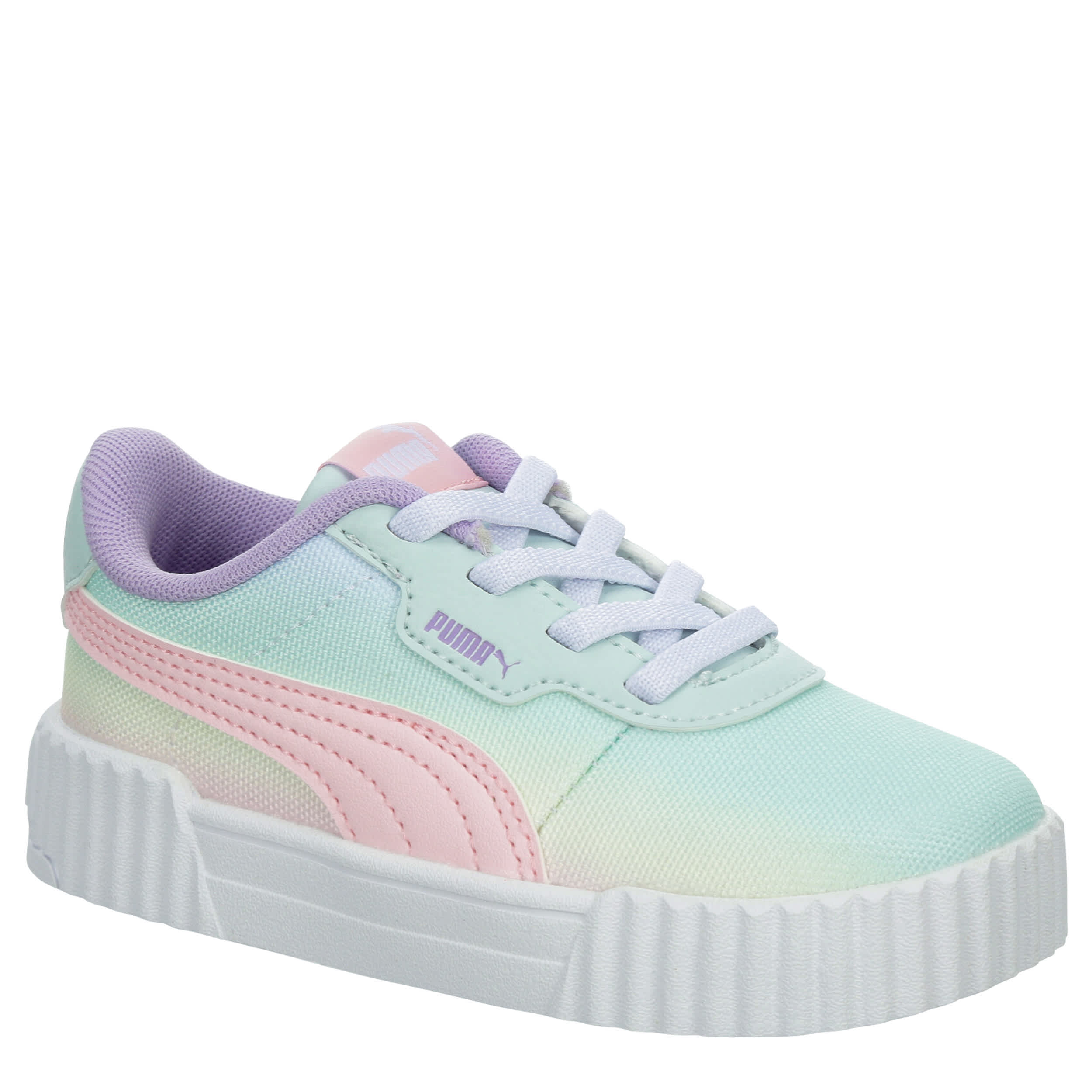 Cute style gets a blast from the past with the '80s-inspired Carina 3.0 Sweet Treat infant girls' sneaker by PUMA. Featuring a sleek upper with a breathable mesh lining and sherbet colors, this laid-back kick carries more attitude with a chunkier sole. The SoftFoam+ sockliner cushions every step, while the matching laces set a cool tone.