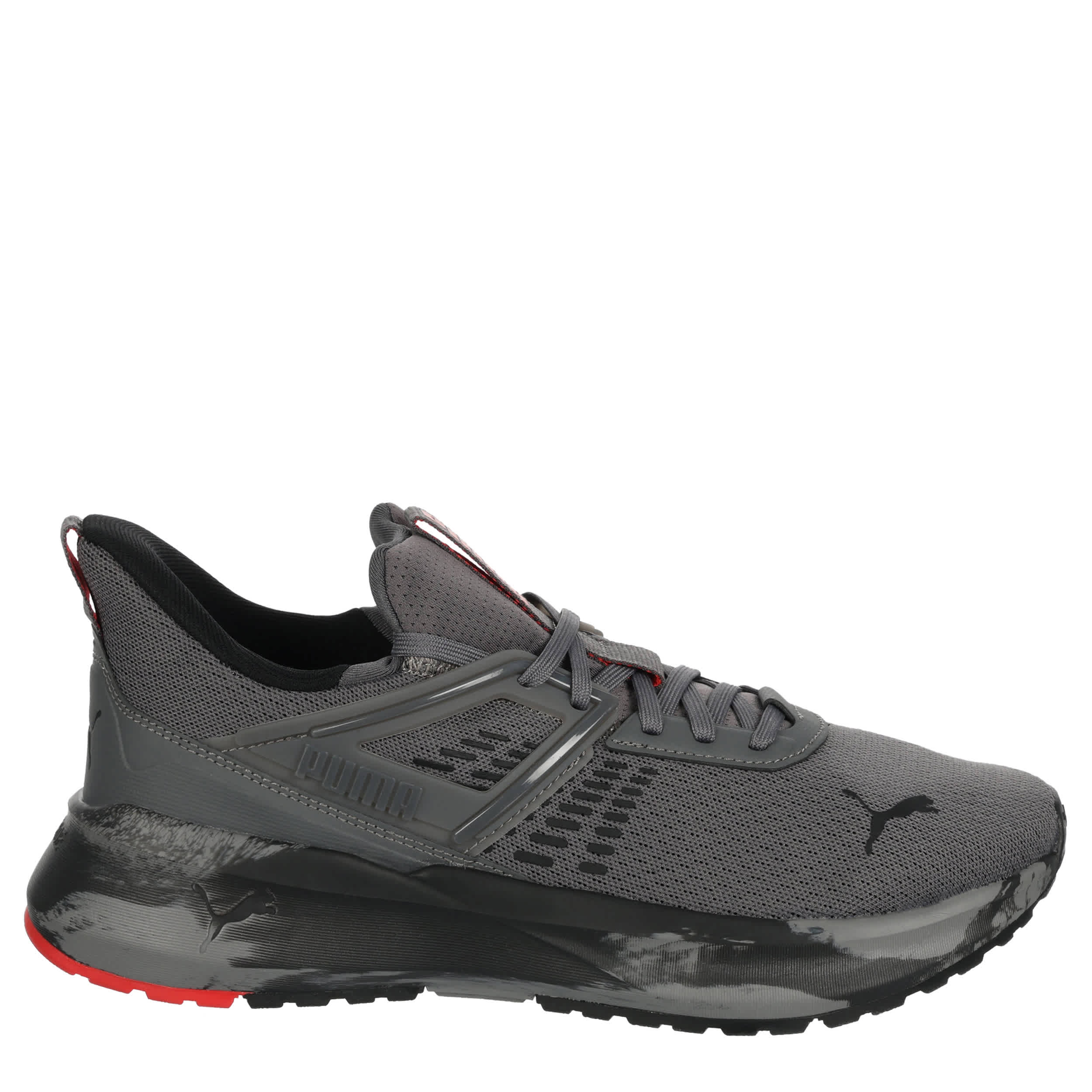 Run circles around the pack in the stylish PUMA Outpace men's running shoe. Featuring a mesh & synthetic upper with dual pull tabs for easy entry, this sneaker has a TPU cage to keep your foot stable. The SOFTRIDE midsole cushions every step, while the two-piece outsole offers traction.