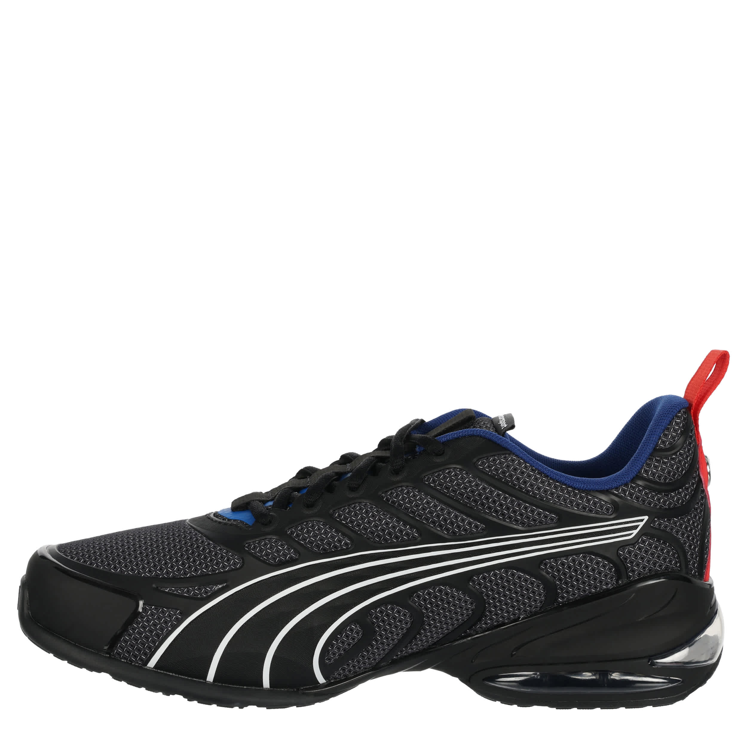 Style and move in the Voltra men's sneaker from PUMA. Featuring a mesh & synthetic upper with a cage overlay & toe cap for extra support, this 20% recycled shoe is effortlessly cool. The SOFTFOAM+ sockliner offers step-in comfort, while the extra thick heel adds durability that softens every stride.