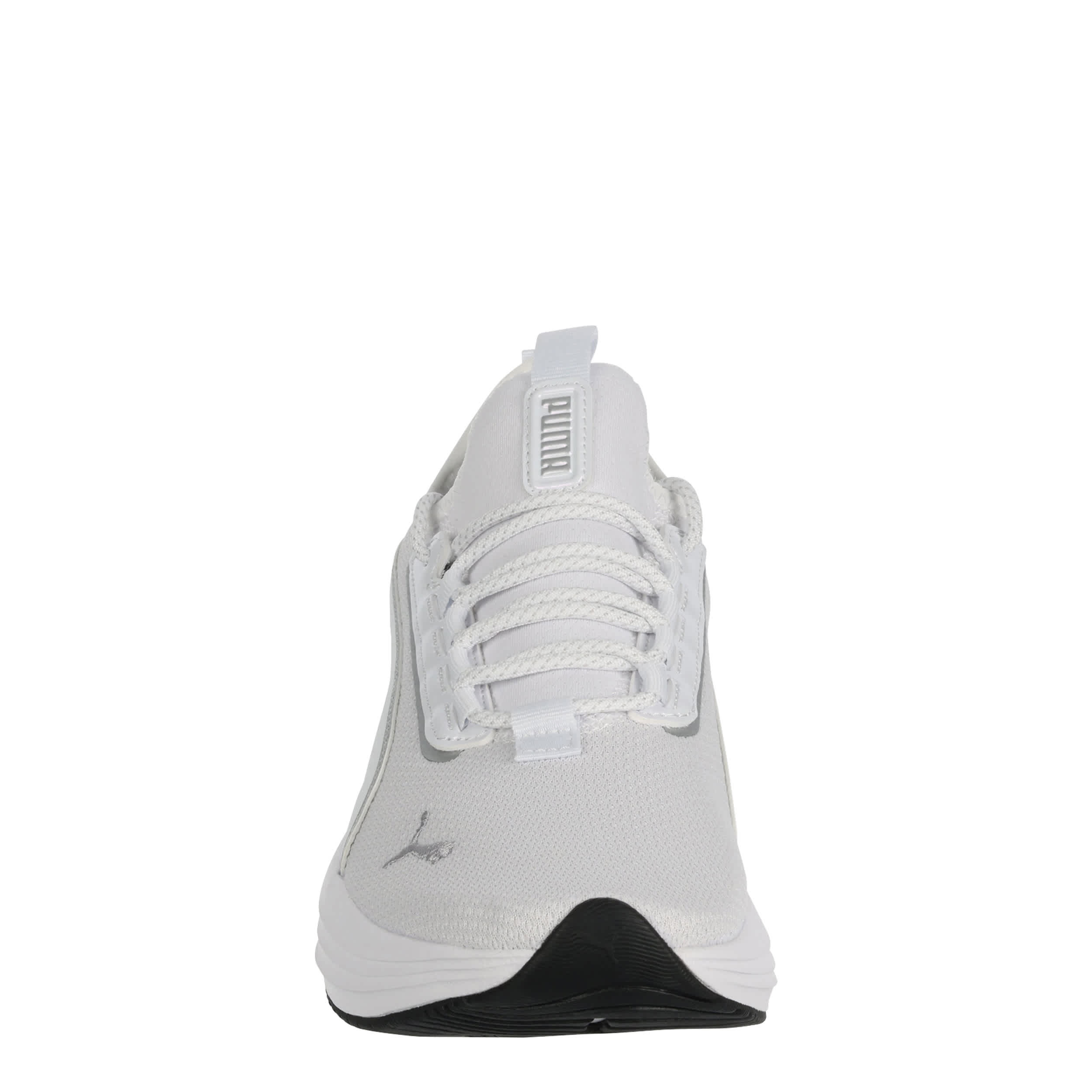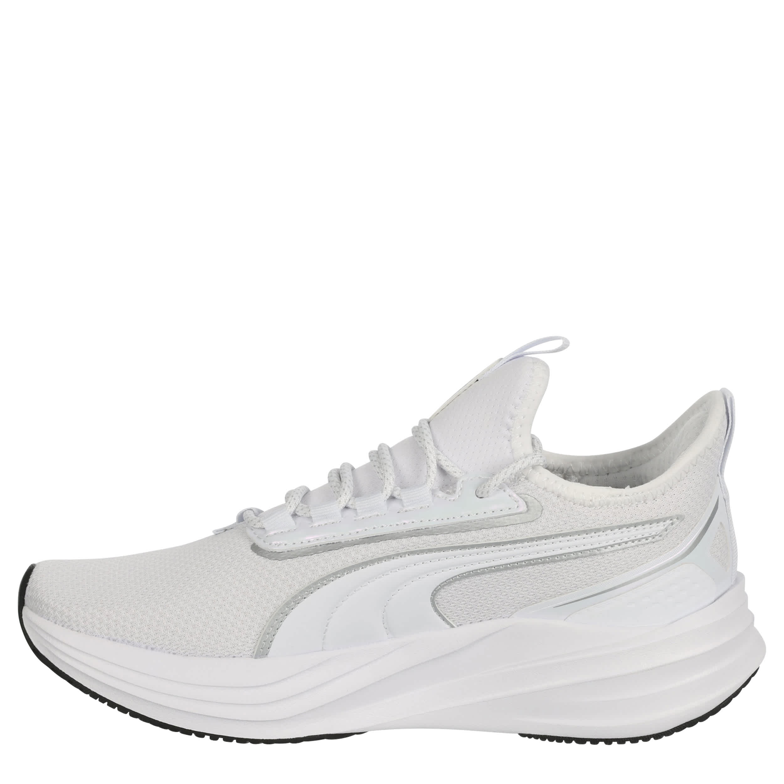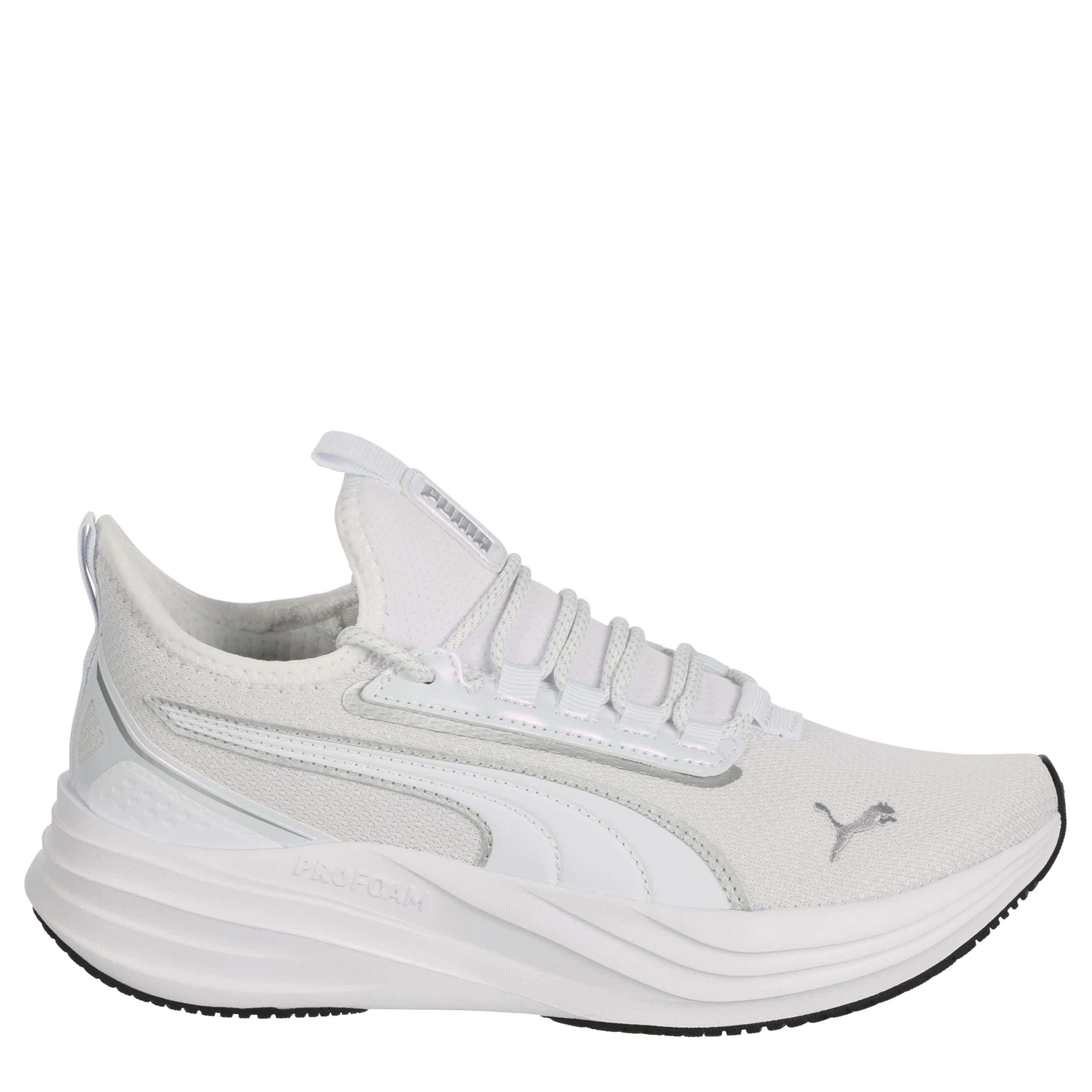 Swift of foot in the PUMA Darter Pro 2 LS women's running shoe. Featuring a breathable mesh & synthetic upper with dual pull tabs for easy entry, this sneaker is made with at least 20% recycled materials. The removable insole cushions every step, while the two-piece outsole offers traction.