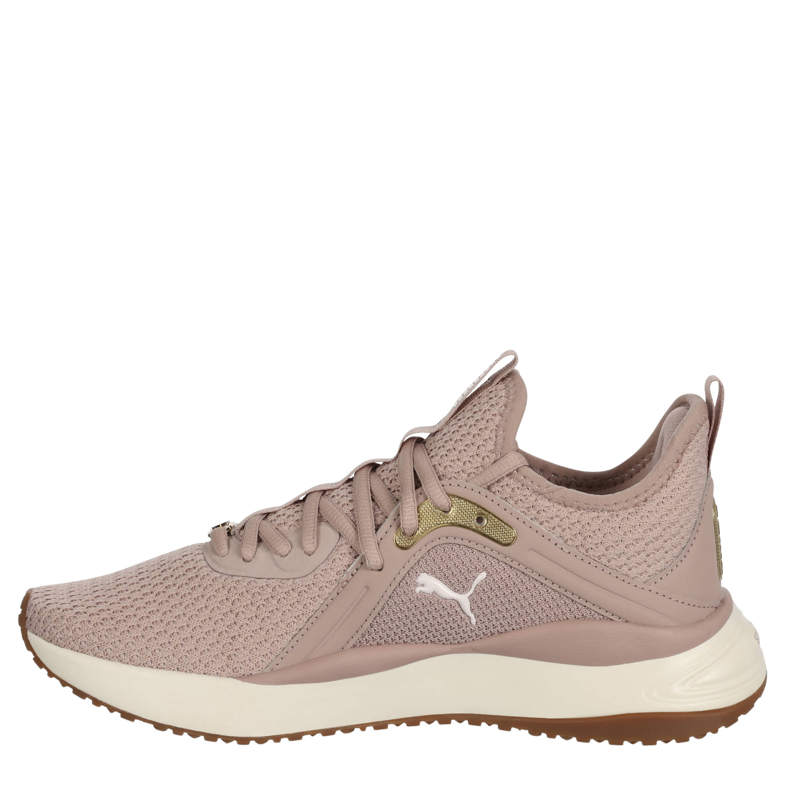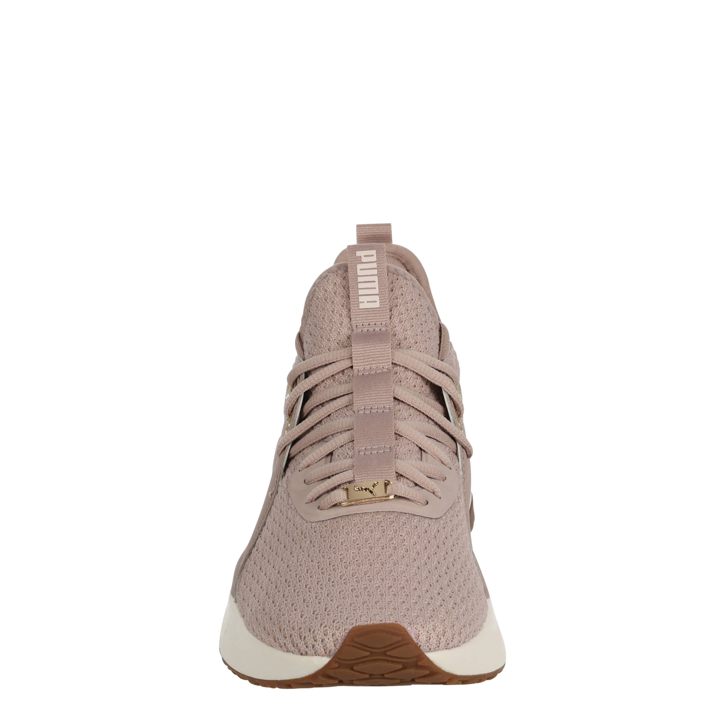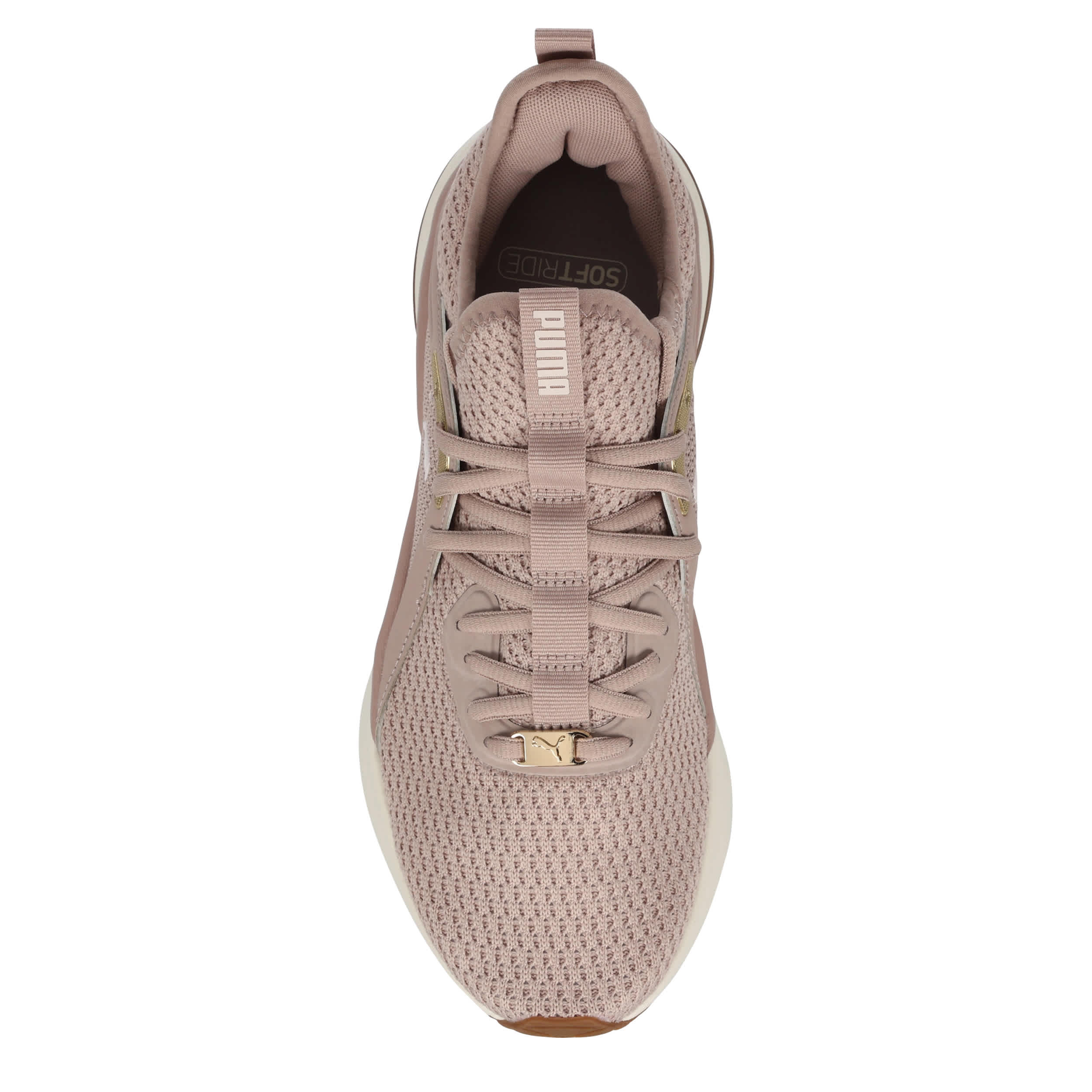 Add a hint of shine in the Softride Karma running shoe from PUMA. Featuring a breathable mesh & synthetic upper with dual pull tabs for easy entry, this shoe has eye-catching metallic accents along the laces and heel. The SOFTRIDE foam offers all-day cushioning, while the durable outsole takes you from a quick run around the block to errands.