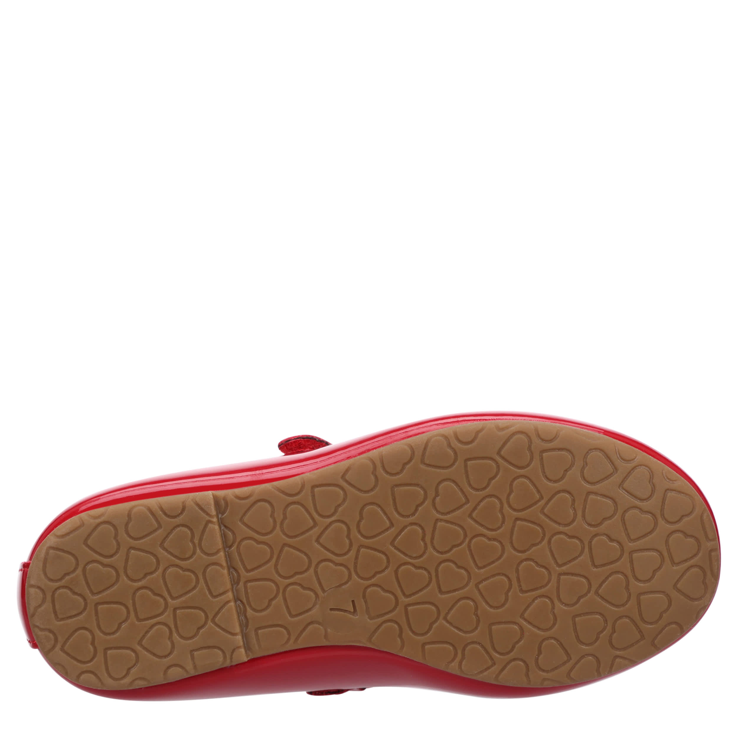 Make sure she's as special as the occasion in the Lil Annalise infant girls' dress shoe from Rachel Shoes. Featuring a glossy patent leather upper with a glittery bow and rhinestone heart detail on the vamp, this Mary Jane really is charming. The insole soothes her little foot, while the heel maintains her comfort.