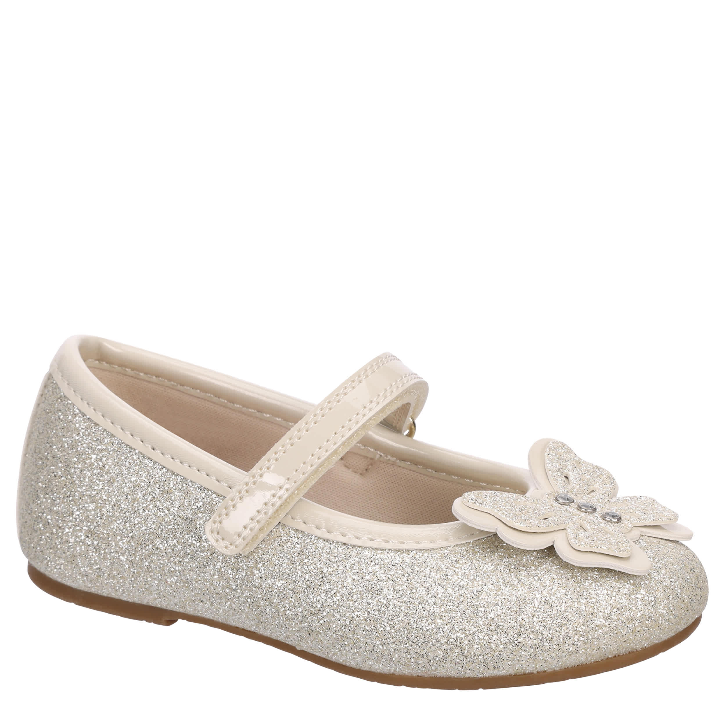 She'll shimmer and fly in the Lil Kaelynn infant girls' dress shoe from Rachel Shoes. Featuring a glittery upper with a butterfly detail on the vamp, this Mary Jane really is charming. The insole soothes her little foot, while the durable sole maintains her comfort.