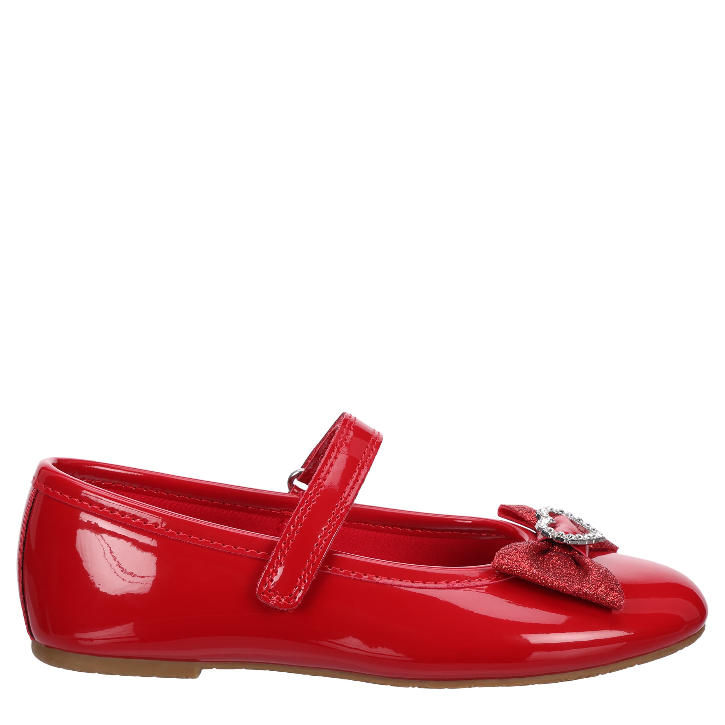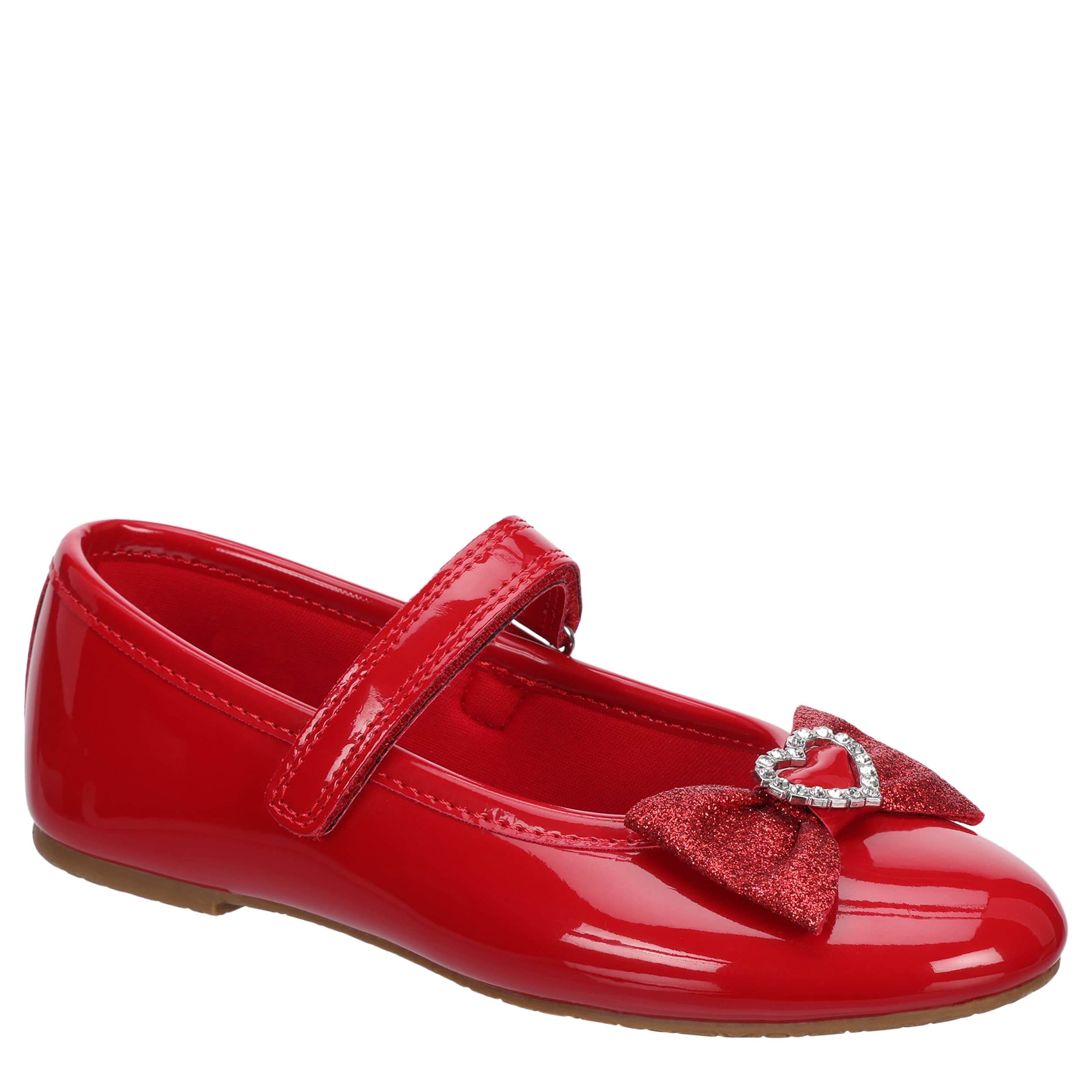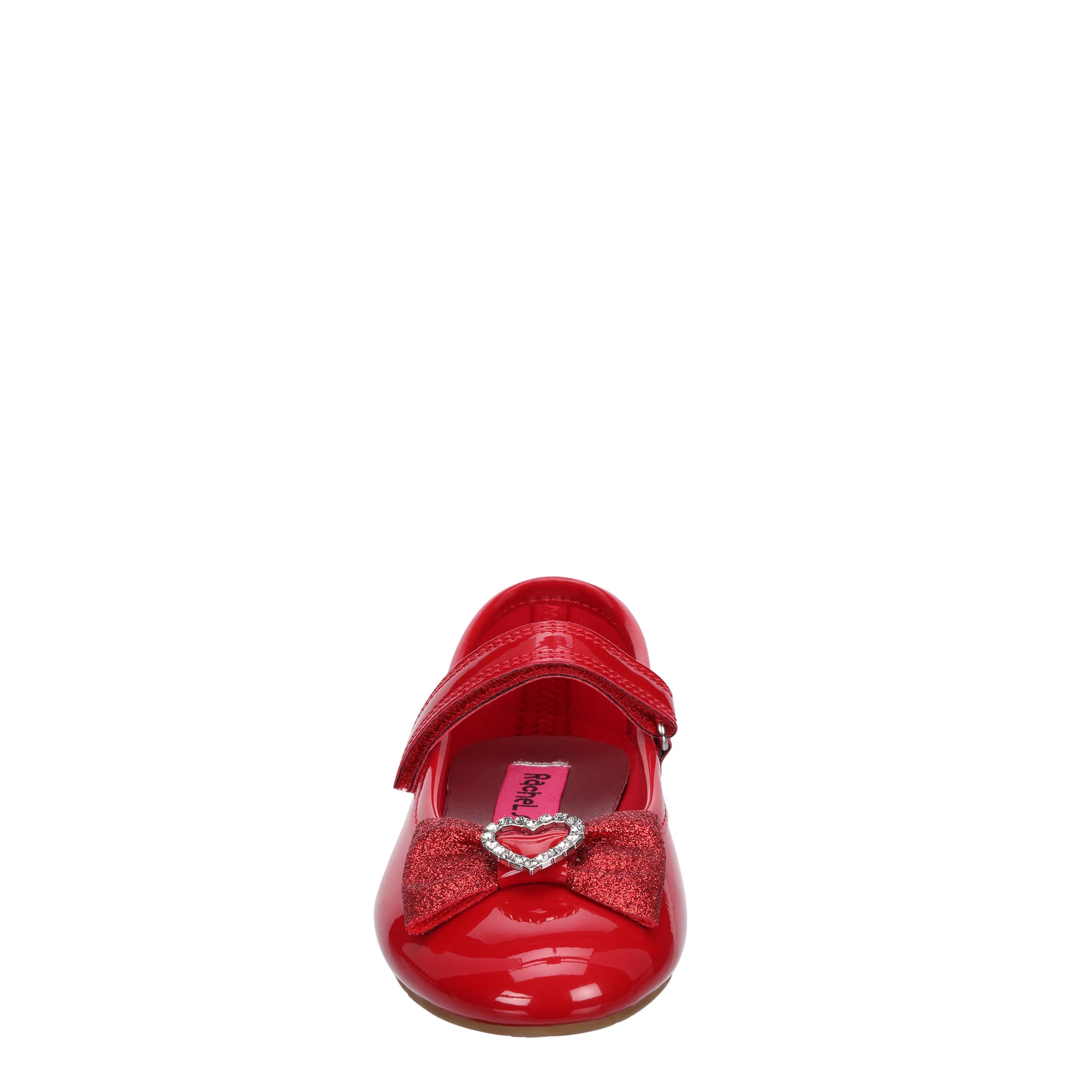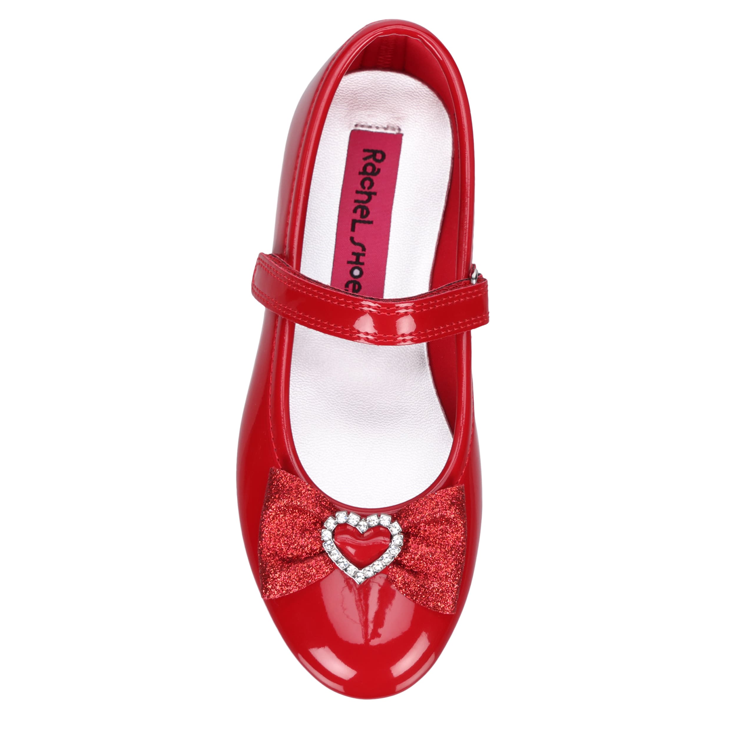 Make sure she's as special as the occasion in the Annalise girls' dress shoe from Rachel Shoes. Featuring a glossy patent leather upper with a glittery bow and rhinestone heart detail on the vamp, this Mary Jane really is charming. The insole soothes her foot, while the heel maintains her comfort.