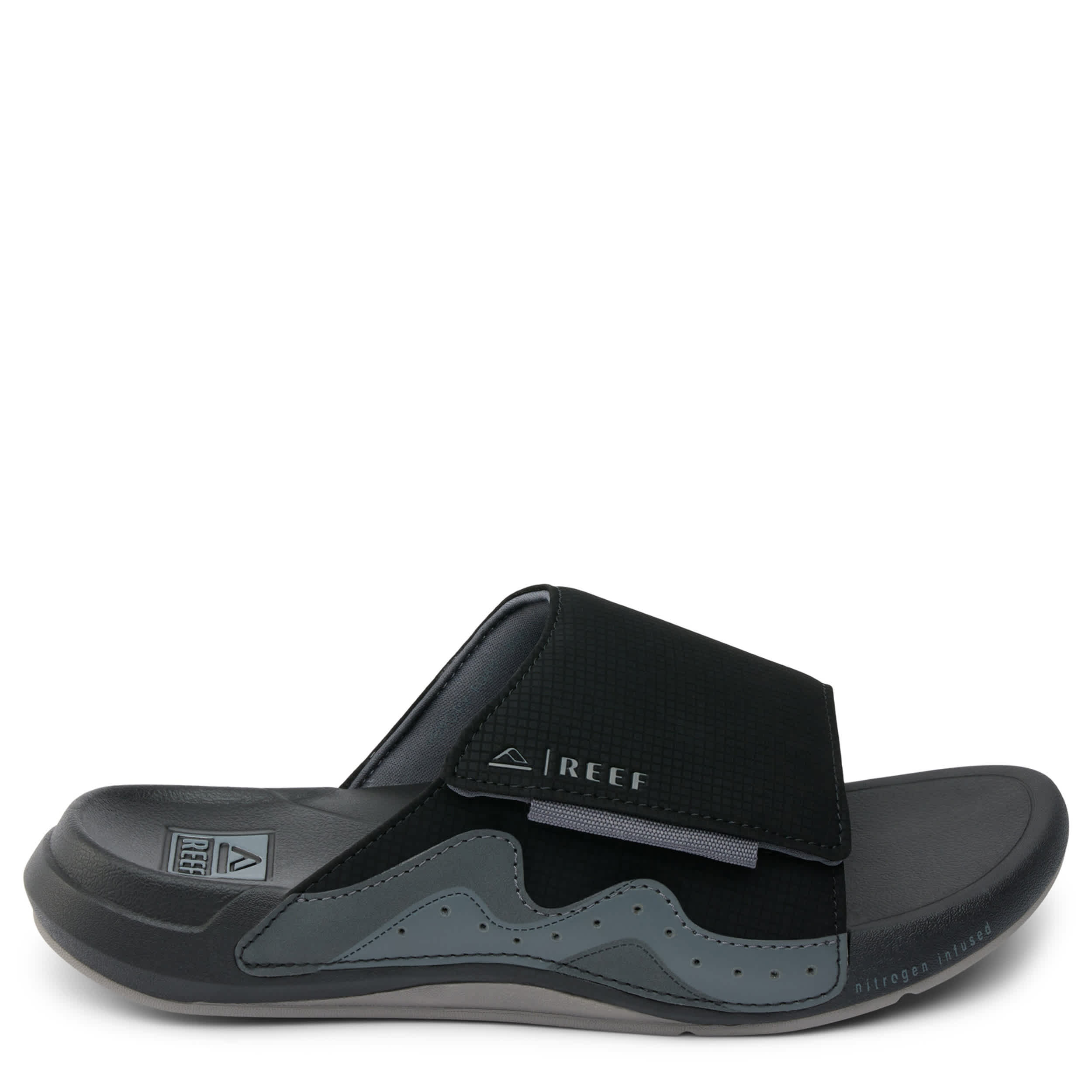 Comfort is close at hand with the Swell Cruiser flip flop sandal from REEF. Featuring a synthetic upper with a wide, padded hook-and-loop strap, this slide reduces pressure points for recovery. The signature footbed is nitrogen-infused with enhanced arch support while the outsole grips without leaving a mark.
