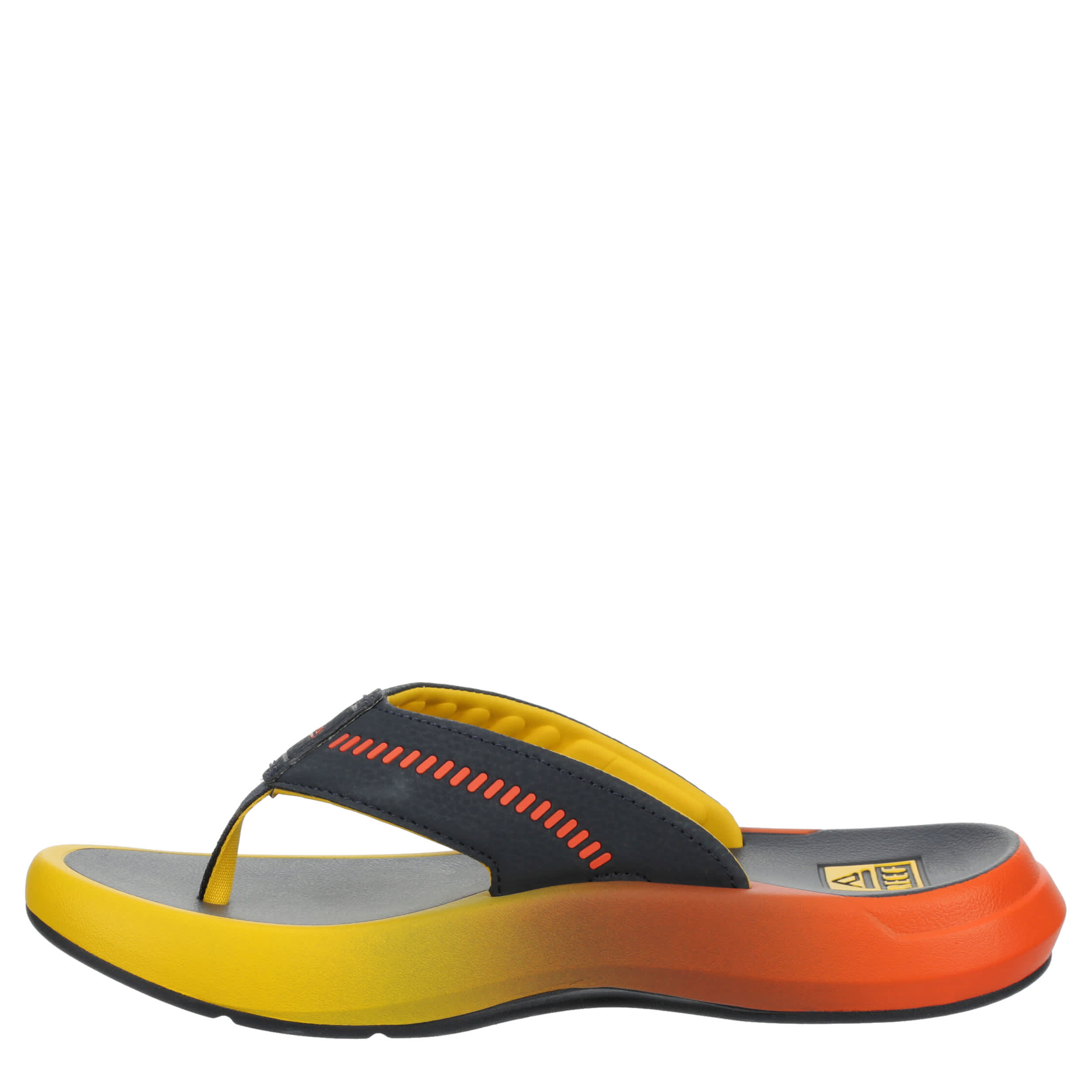 Put your feet on cruise control in the SWELLsole Cruiser flip flop sandal from REEF. With a synthetic upper featuring padded straps with shock pads, this thong sandal promotes foot health and wellness. The signature footbed is nitrogen cooled EVA with enhanced arch support while the outsole grips without leaving a mark.