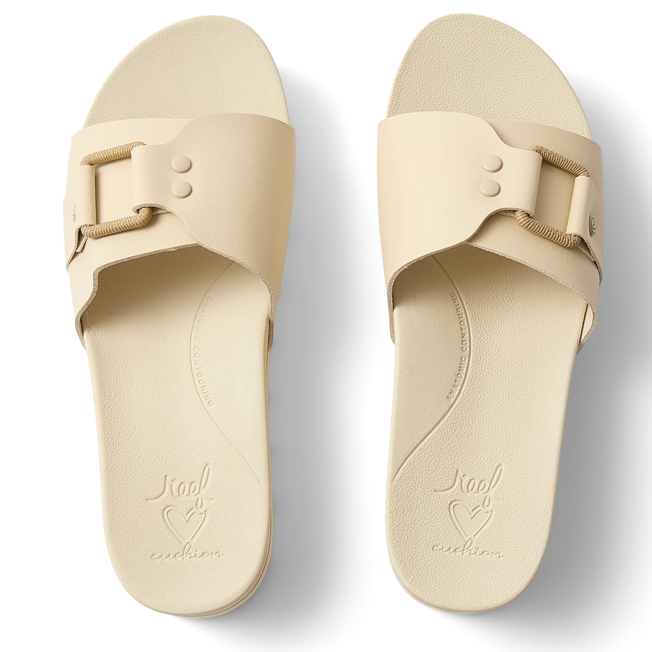 Rise with sunny joy in the REEF Horizon Hi women's slide sandal. Featuring a vegan leather upper and fabric lining to soothe your foot, these slides are stylish enough for summer travel or a short staycation. The contoured footbed and EVA traction outsole support your instep while providing comfort with each step.